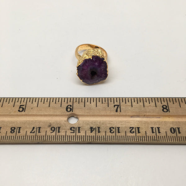39 cts Agate Druzy Geode Electroplate Gold Plated Ring size:8 @India,D490