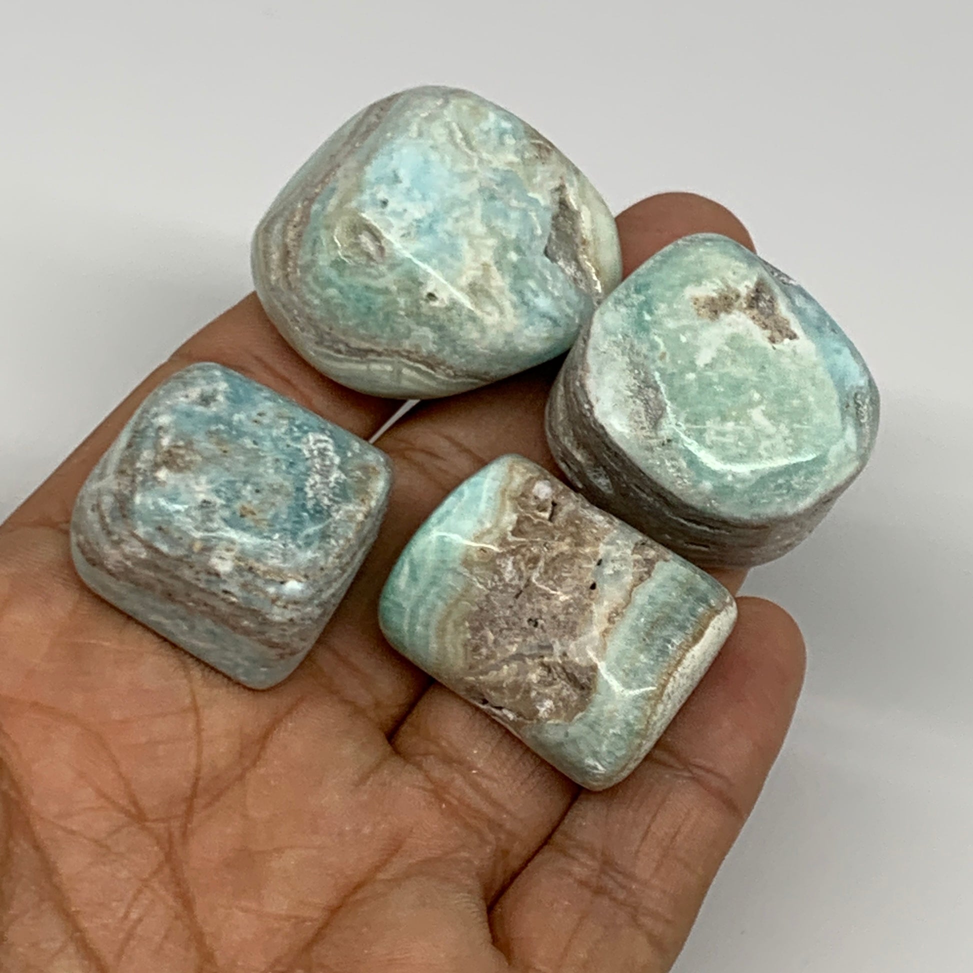 103.6g, 1"-1.3", 4pcs, Blue Aragonite Tumbled Stones @Afghanistan, B26969