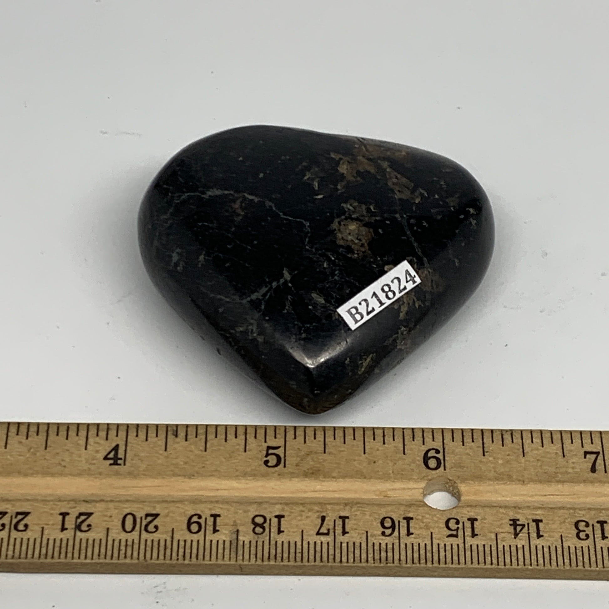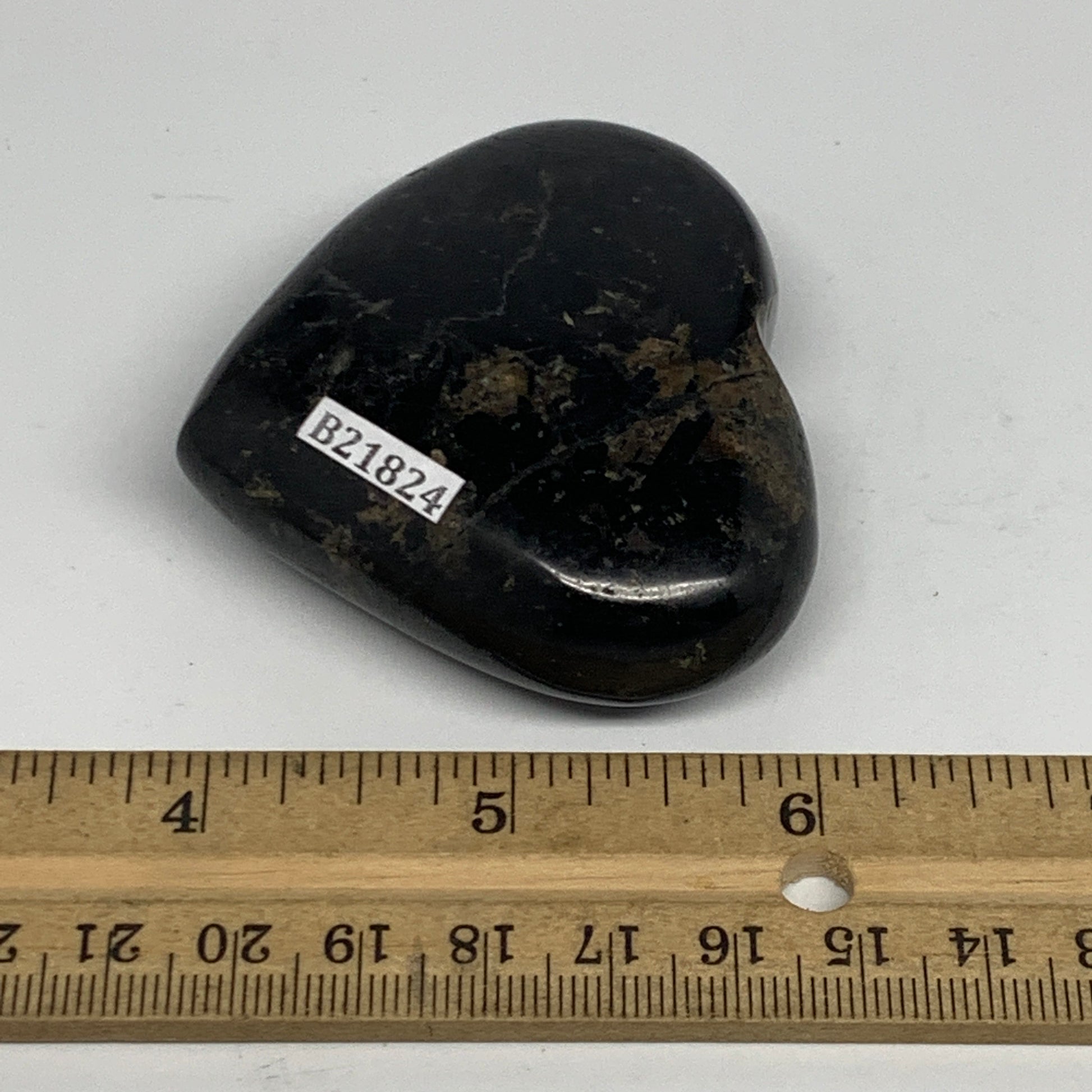 123g, 2.1"x2.4"x0.9", Black Tourmaline Heart Polished Crystal Home Decor, B21824
