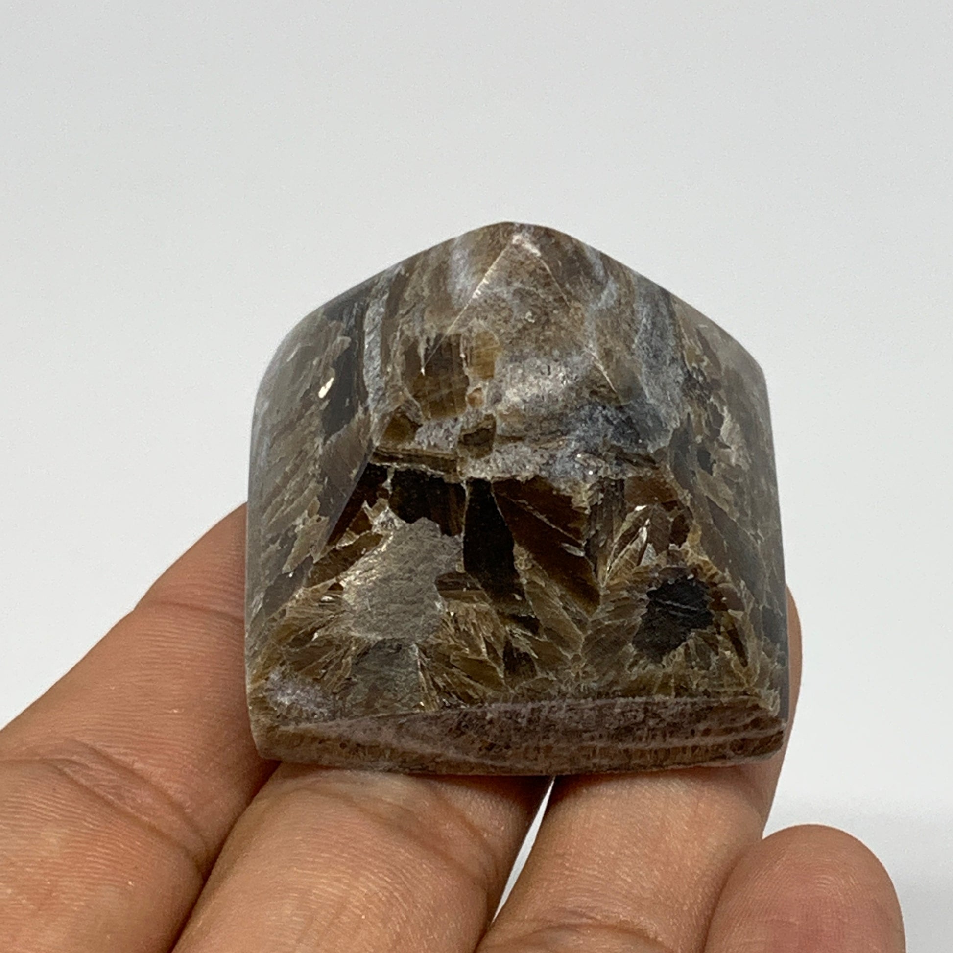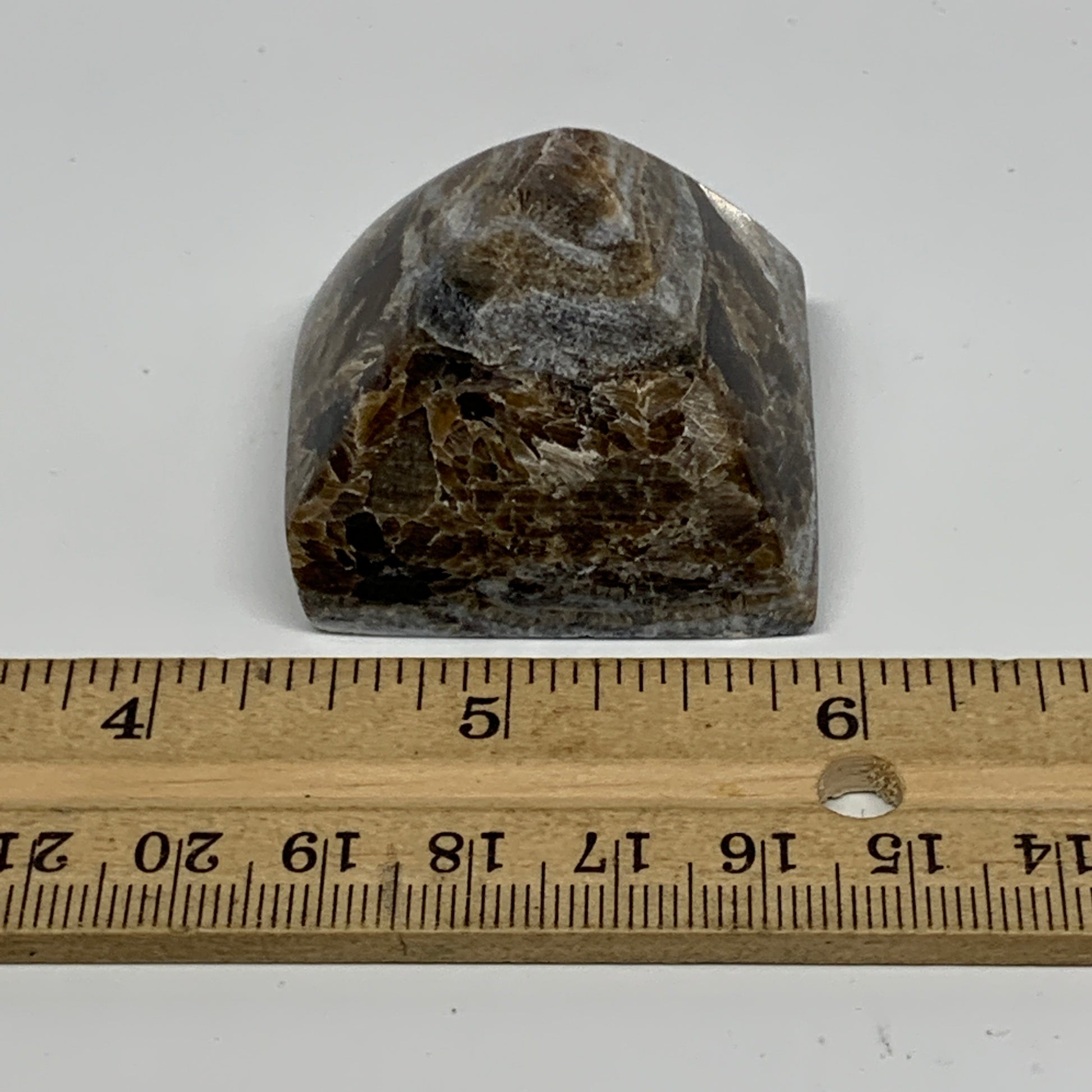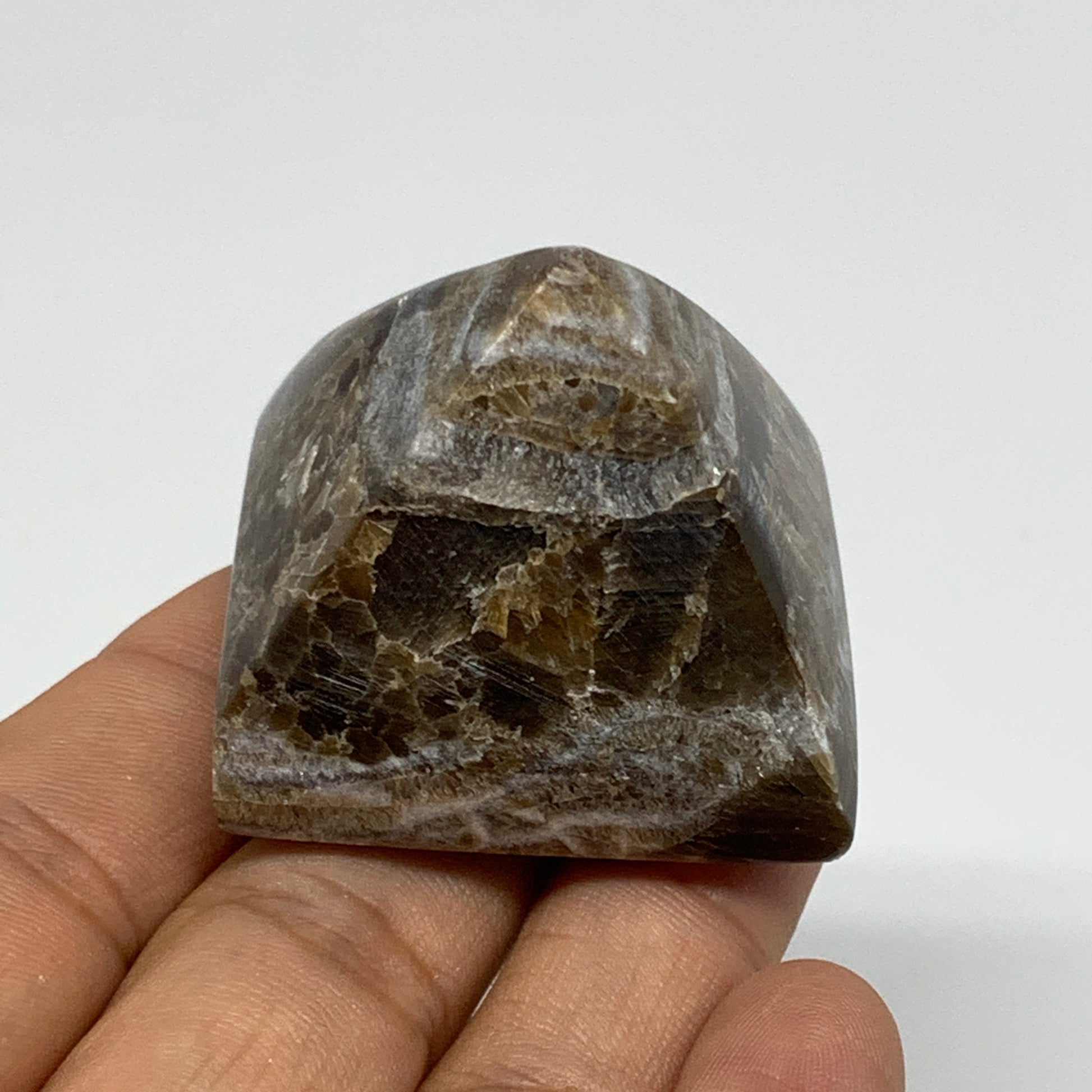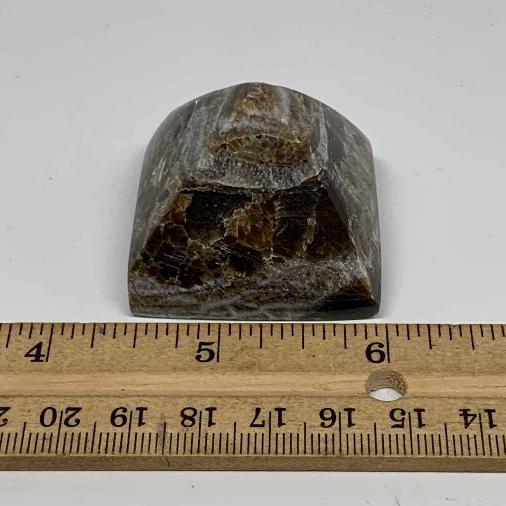 60.9g, 1.3"x1.6"x1.6" Chocolate/Gray Onyx Pyramid Gemstone @Morocco, B18959