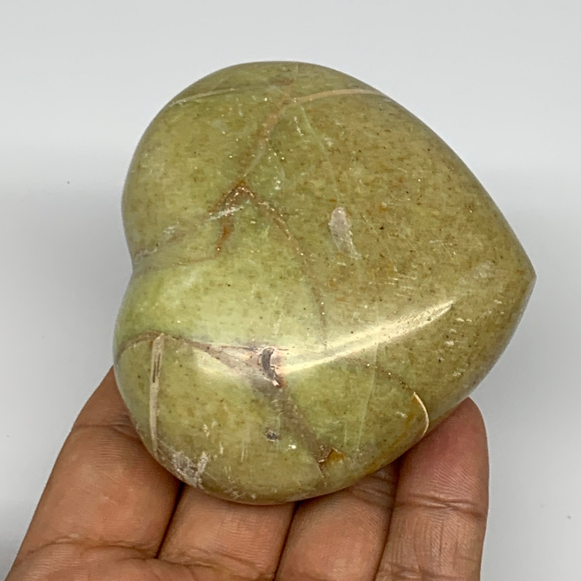 193.1g,2.6"x2.9"x1.4", Green Opal Heart Polished Gemstone @Madagascar, B17588