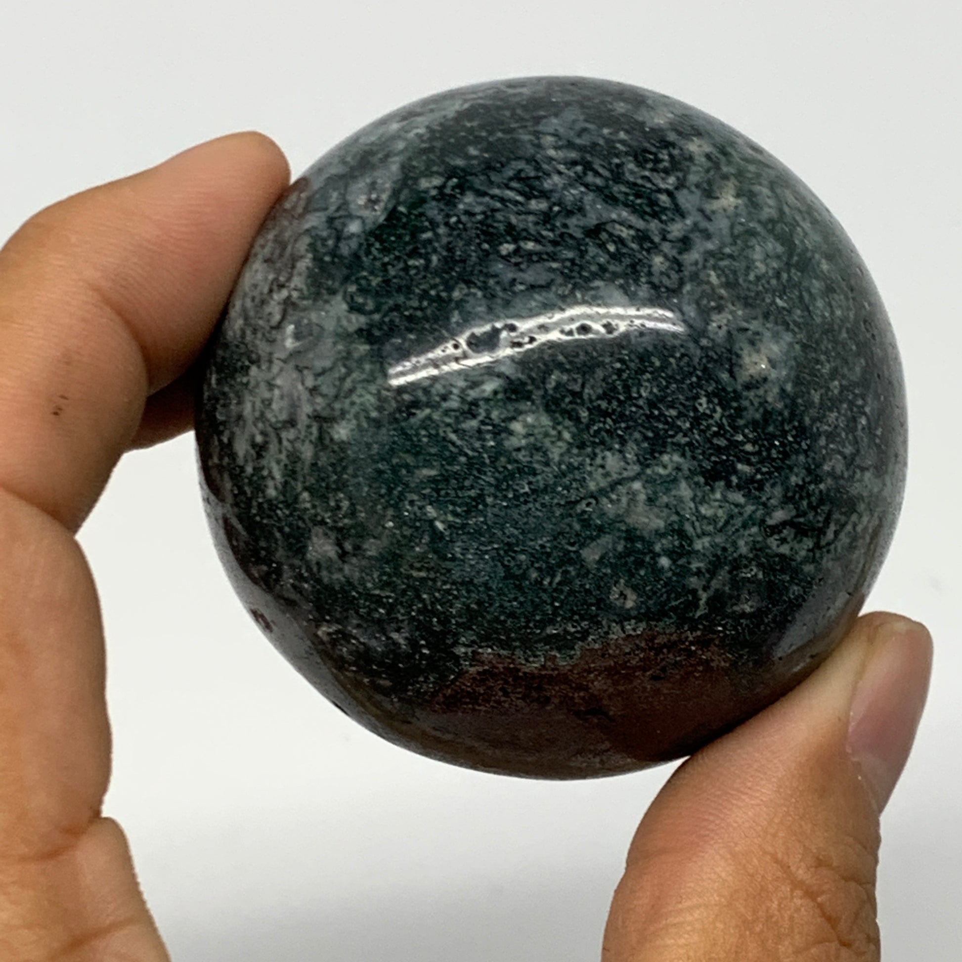 187.3g,2.1"(52mm), Natural Moss Agate Sphere Ball Gemstone @India,B22460