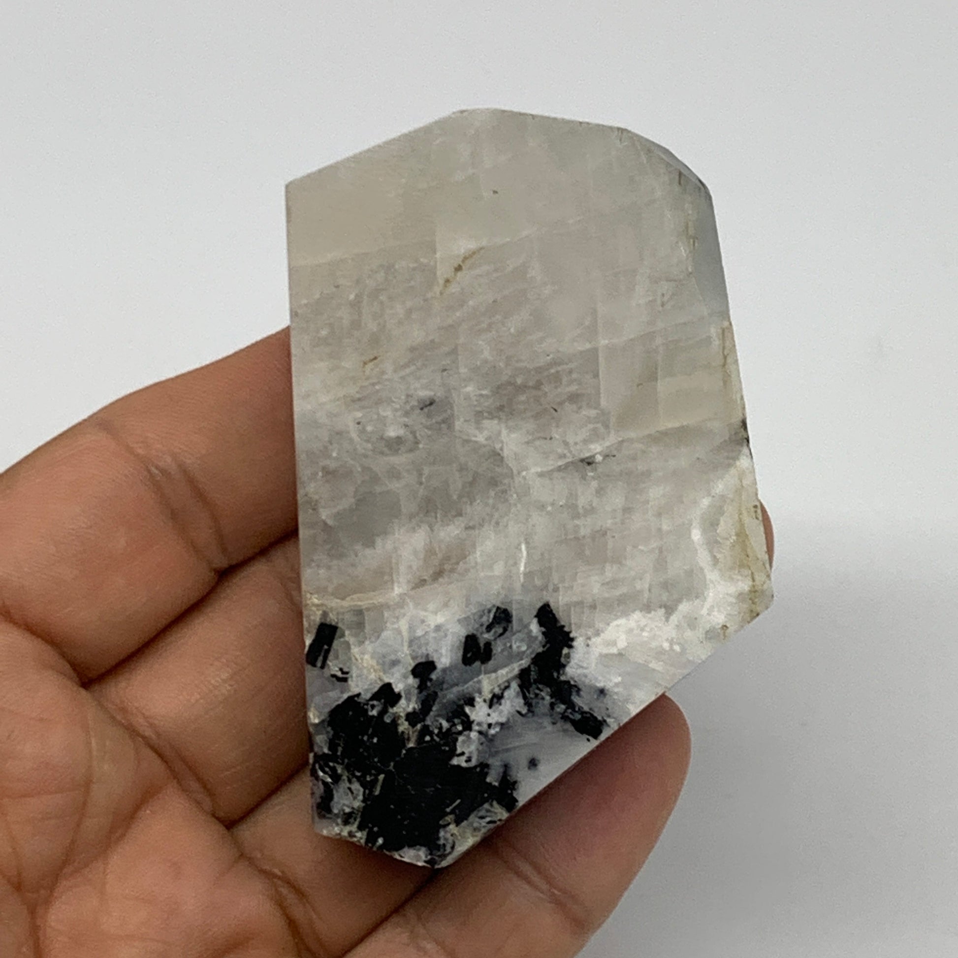 110.3g, 2.7"x1.7"x0.8", Rainbow Moonstone Freeform Crystal Polished @India, B21659