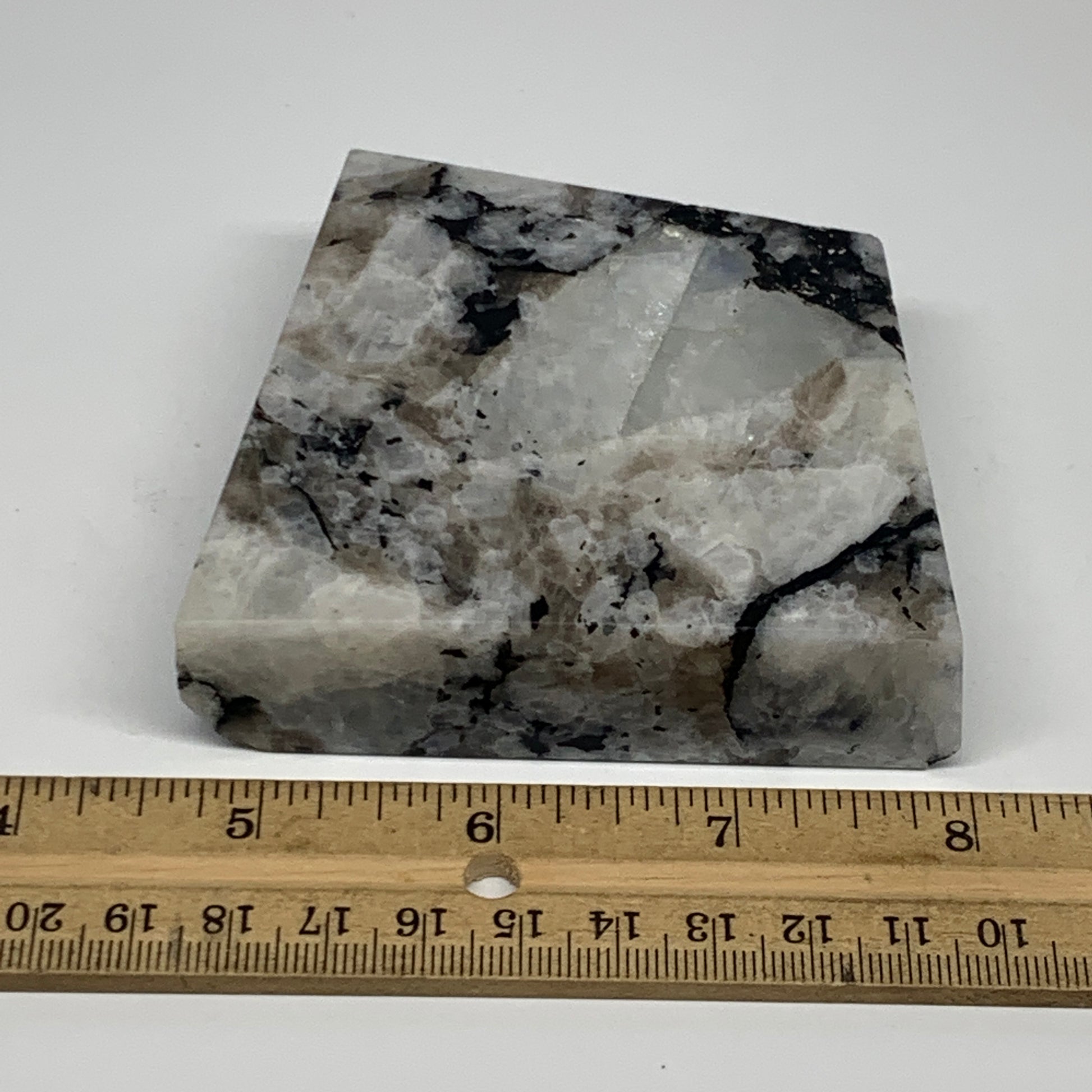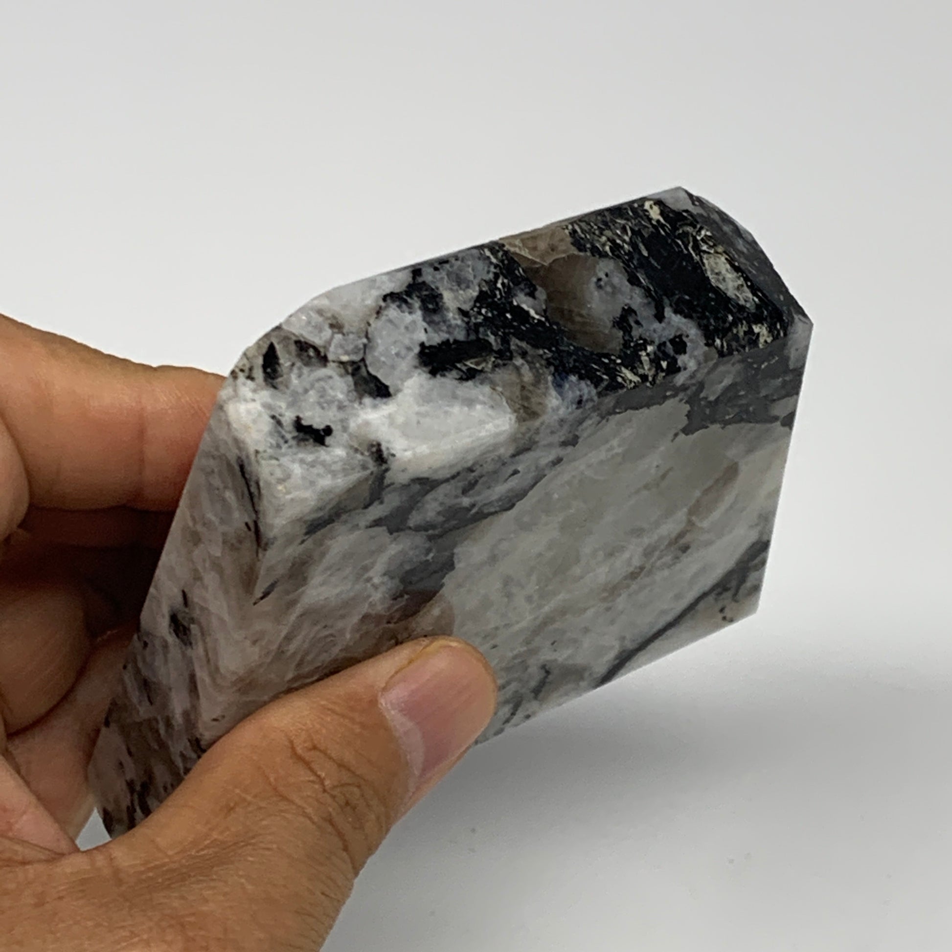 300.8g, 3.3"x3.2"x0.9", Rainbow Moonstone Freeform Crystal Polished @India, B21666