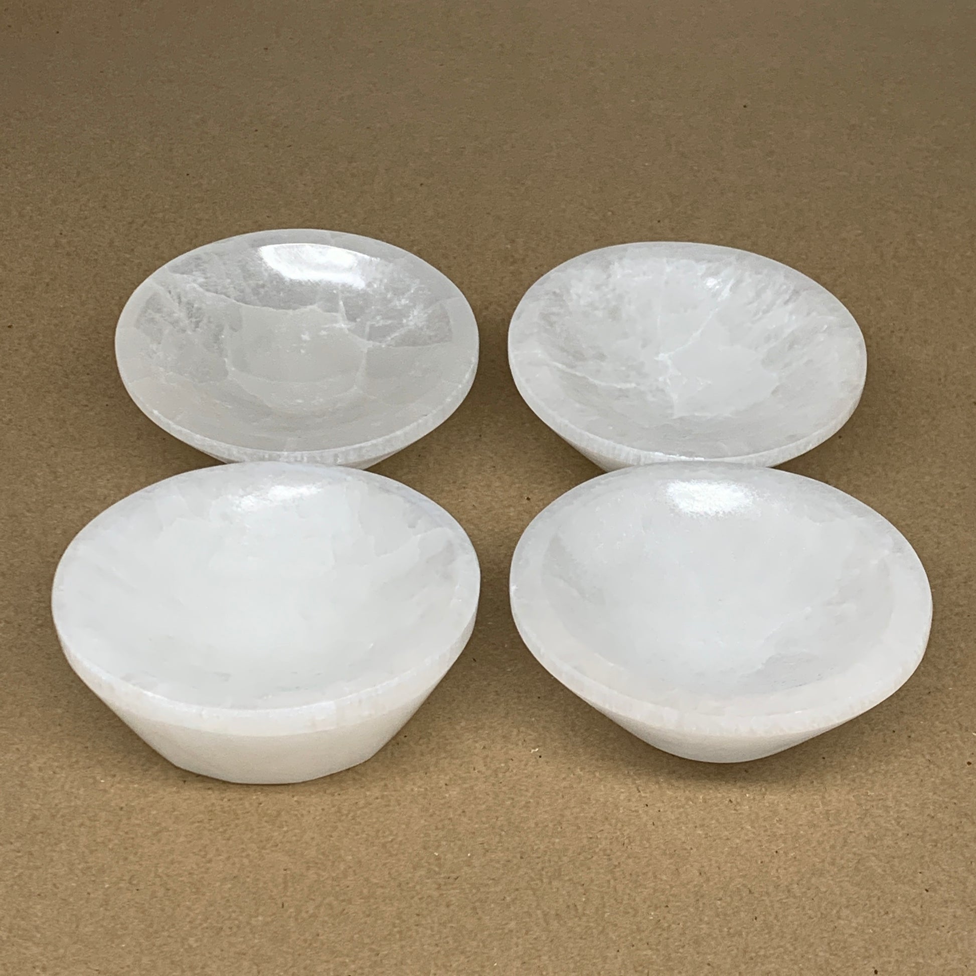 4pcs, 1252g, 3.9"-4" Natural Round Selenite Bowls Crystals from Morocco, B9206