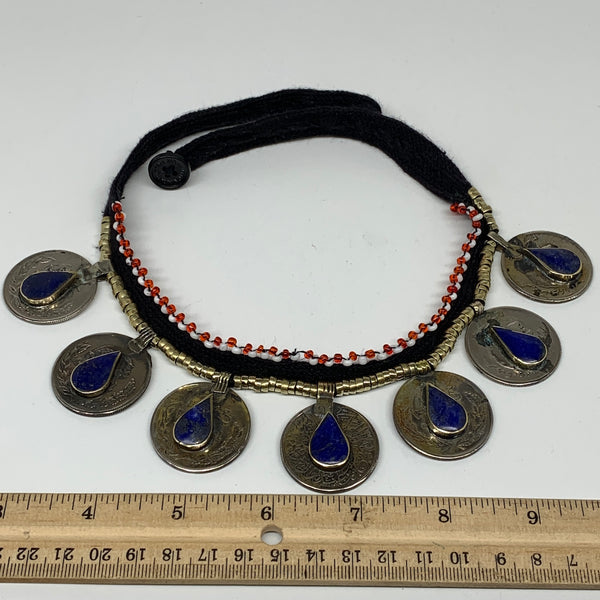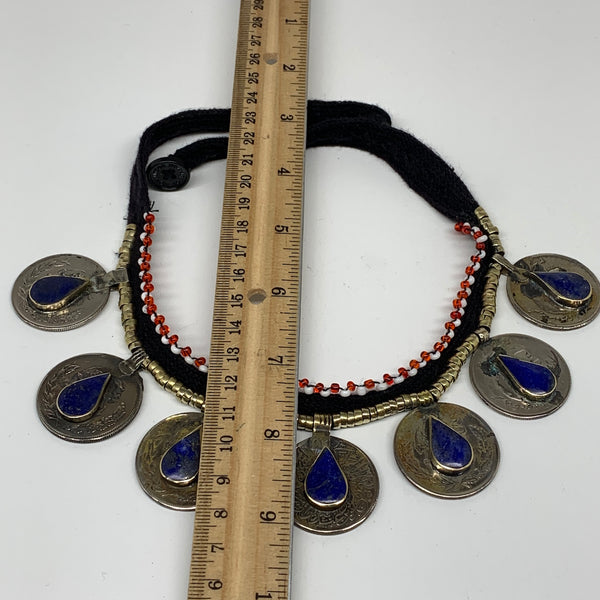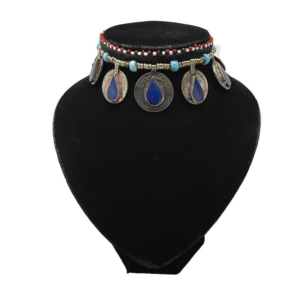 Afghan Turkmen Tribal Coin Choker Teardrop Blue Lapis Lazuli Inlay Necklace Handmade CK01