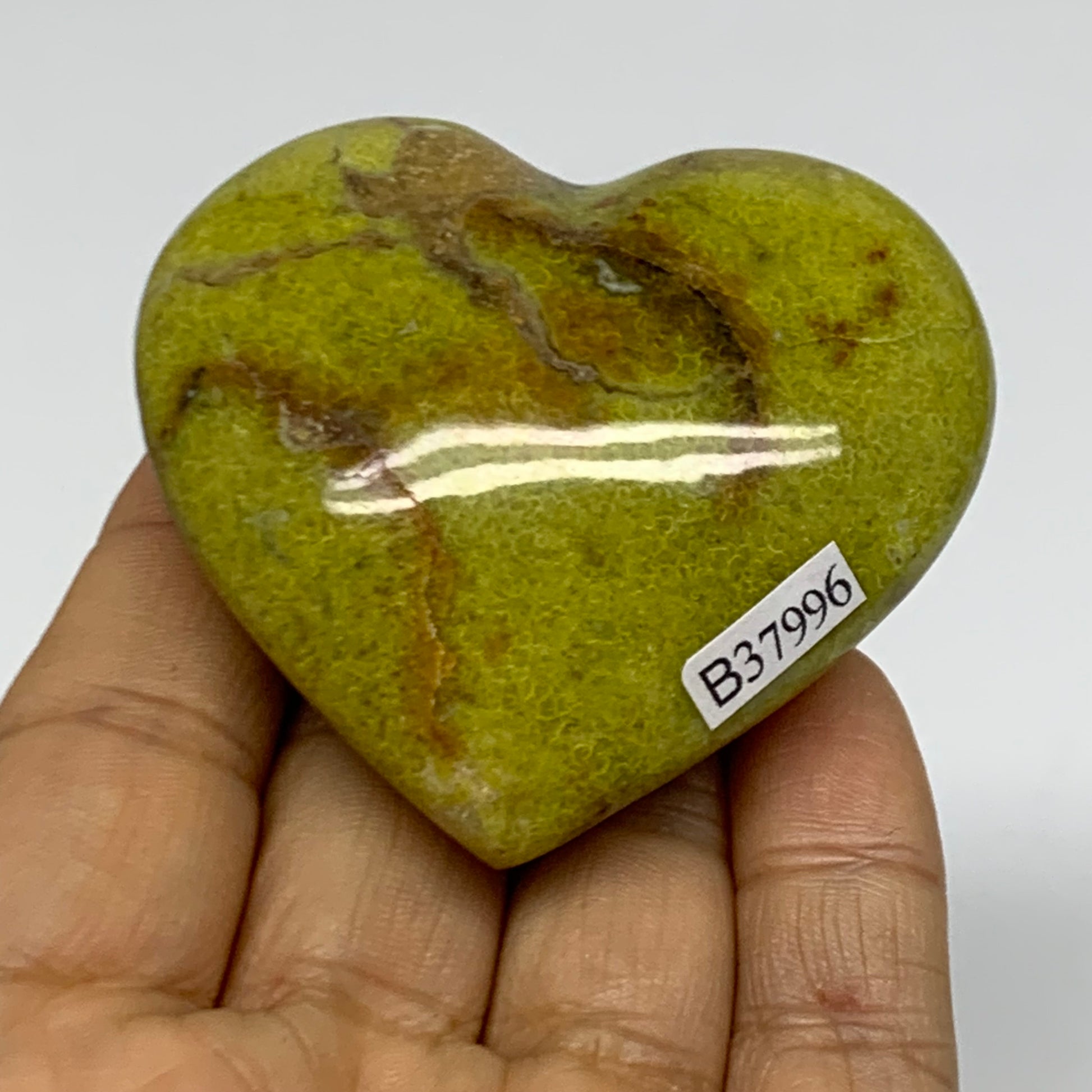 0.19 lbs, 2.2"x2.4"x1", Green Opal Heart Polished Gemstone Crystal, B37996