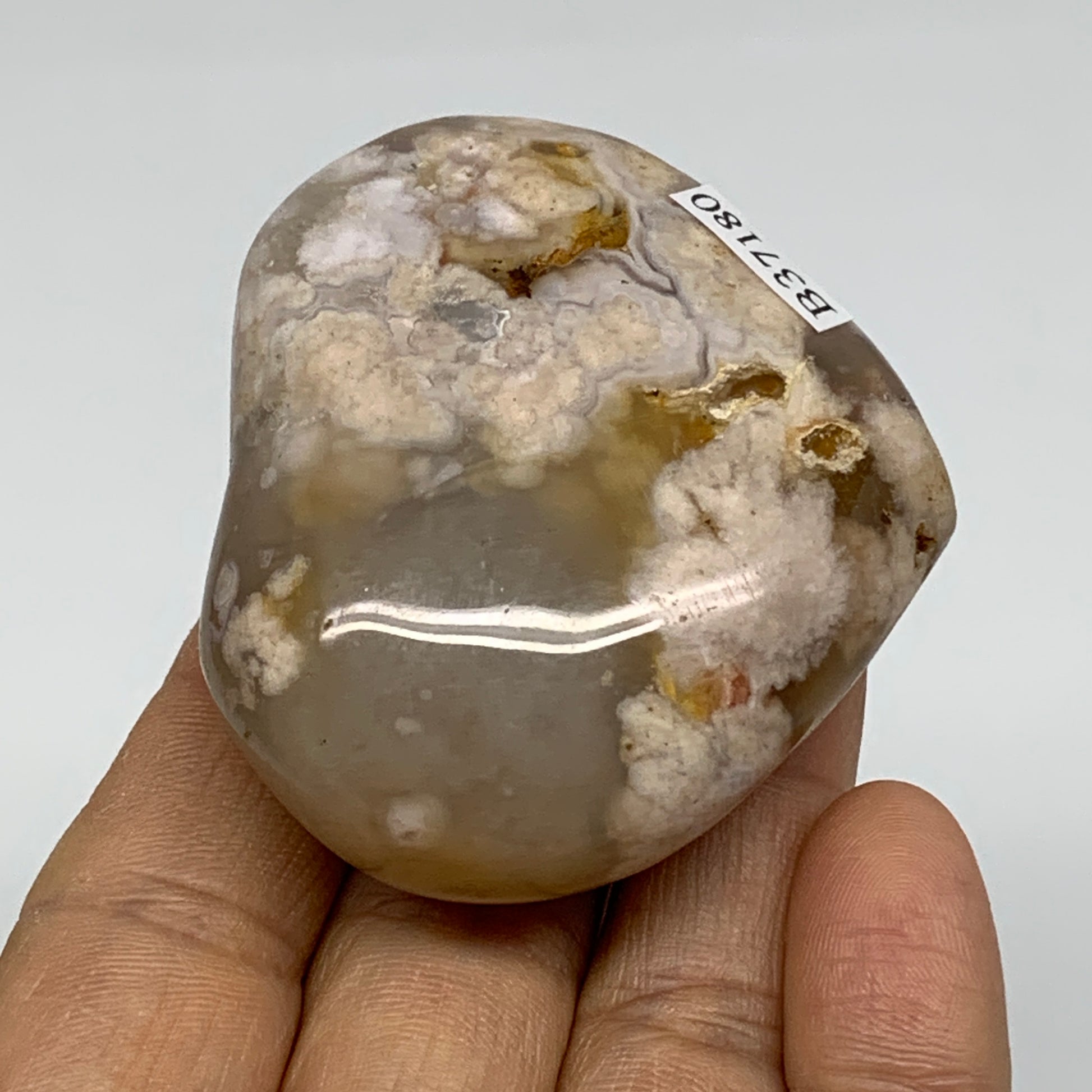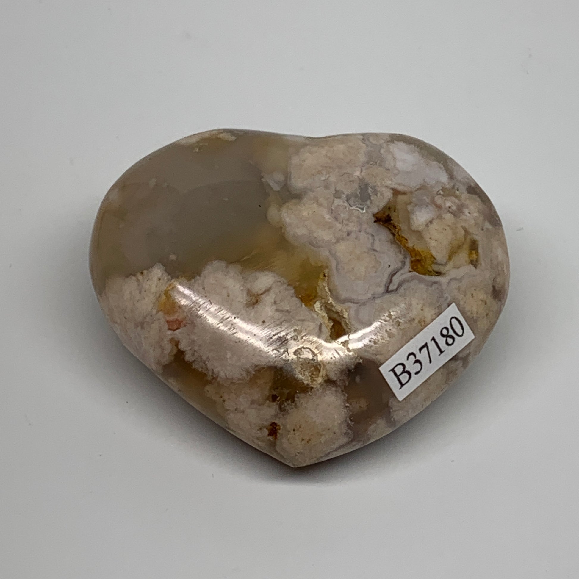 0.20 lbs, 2"x2.3"x1", Cherry Blossom Flower Agate Heart Crystal, B37180