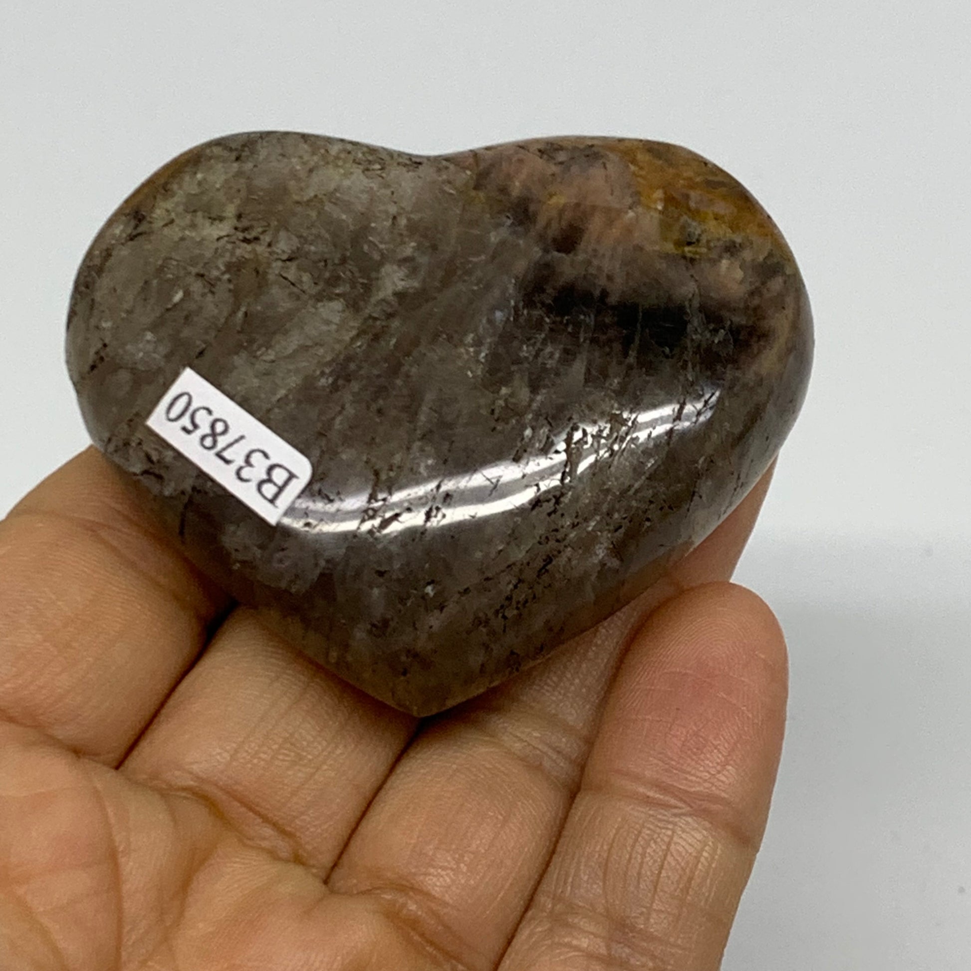 0.20 lbs, 2"x2.4"x0.9", Black Moonstone Heart Polished Crystal Decor, B37850