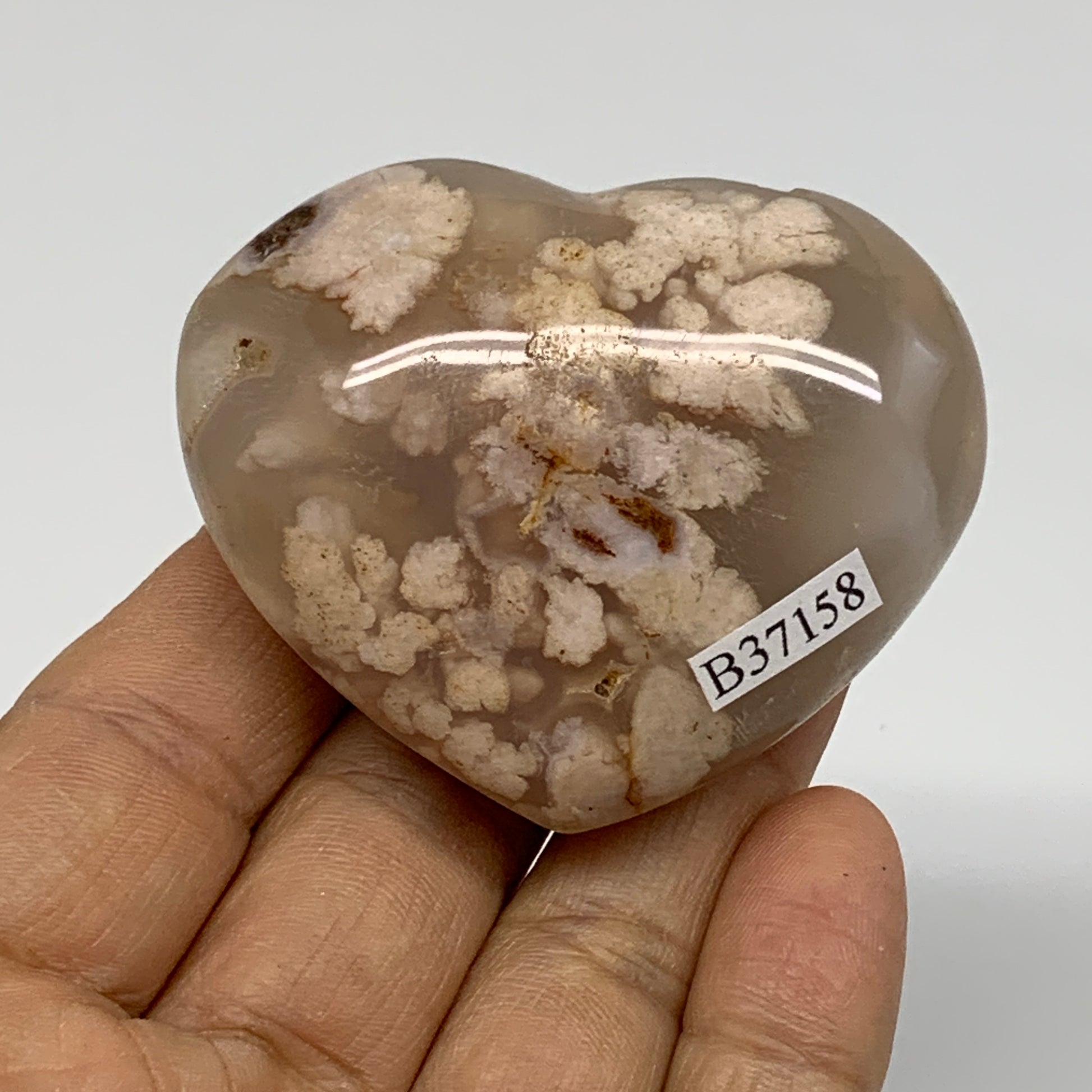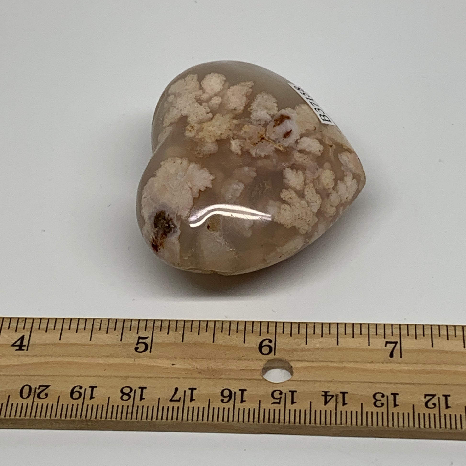 0.22 lbs, 1.9"x2.3"x1", Cherry Blossom Flower Agate Heart Crystal, B37158