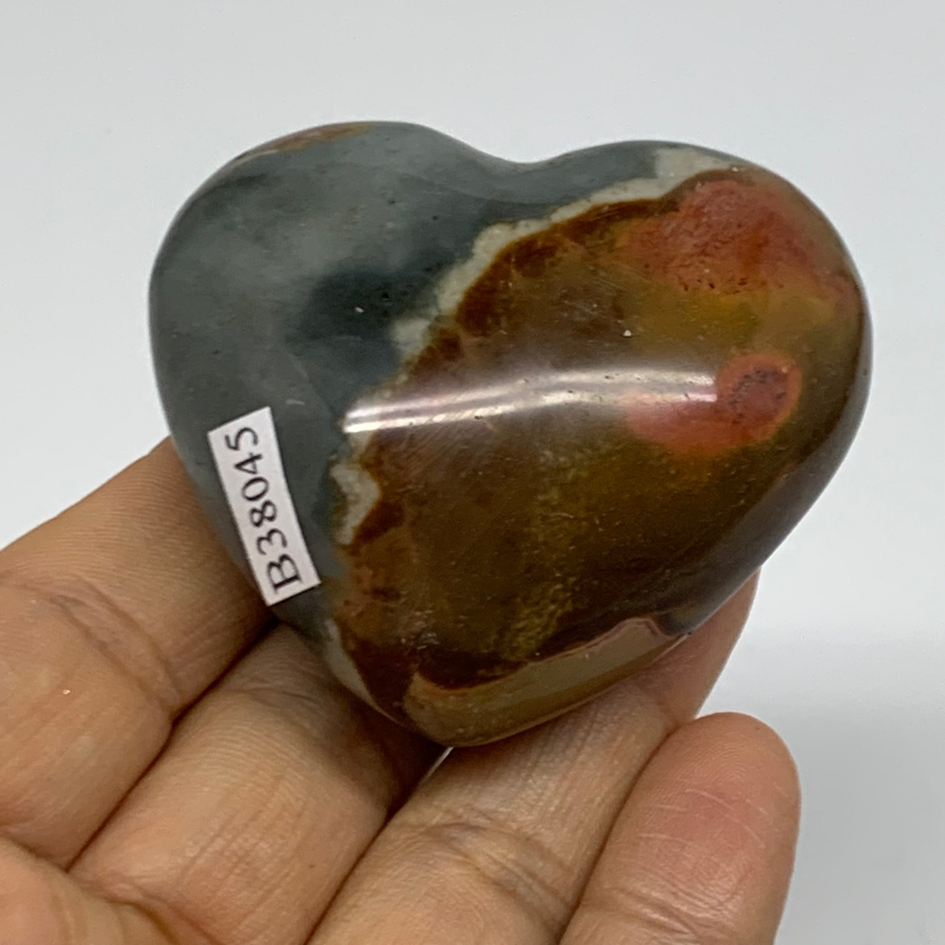 0.22 lbs, 2"x2.2"x1.1", Polychrome Jasper Heart Polished Crystal, B38045