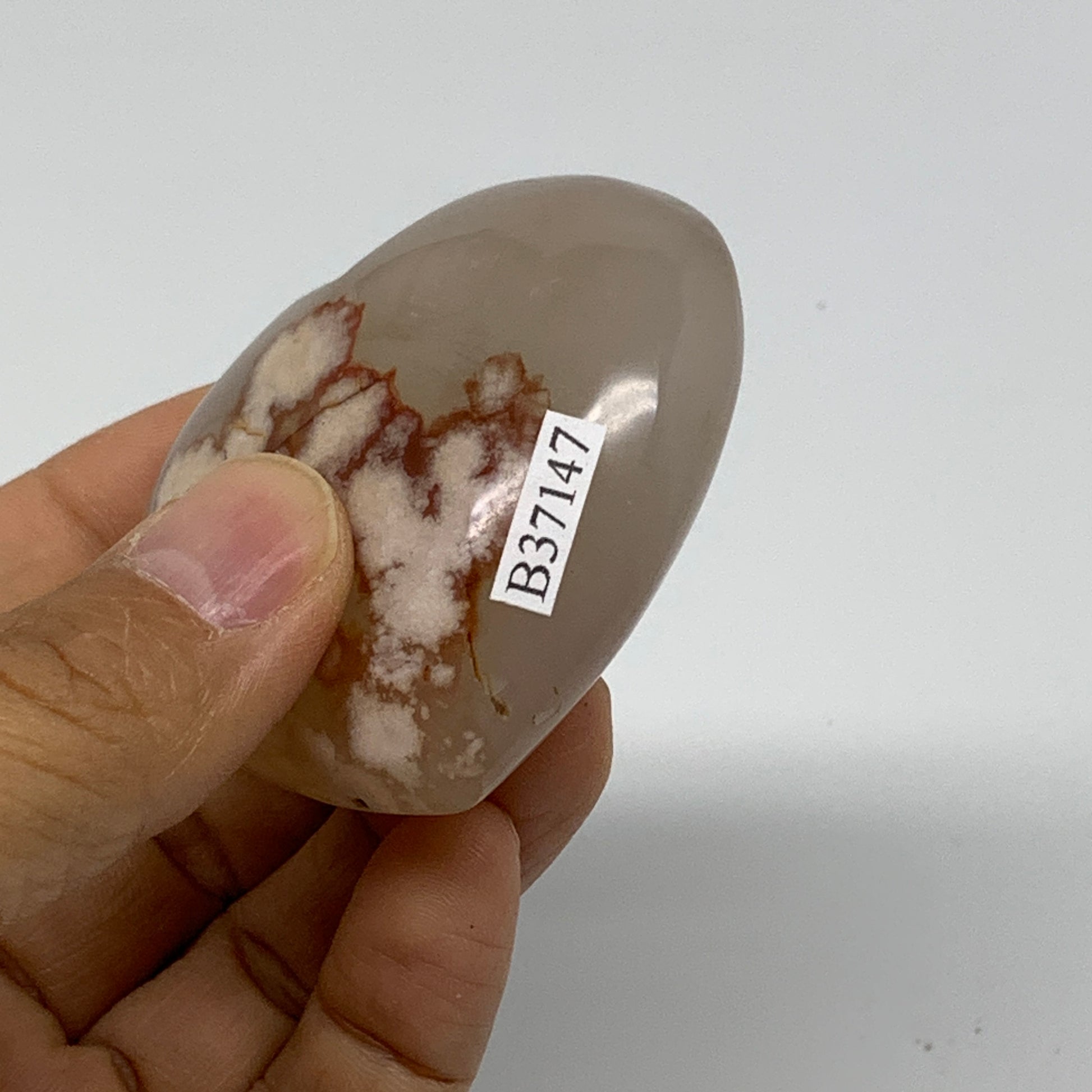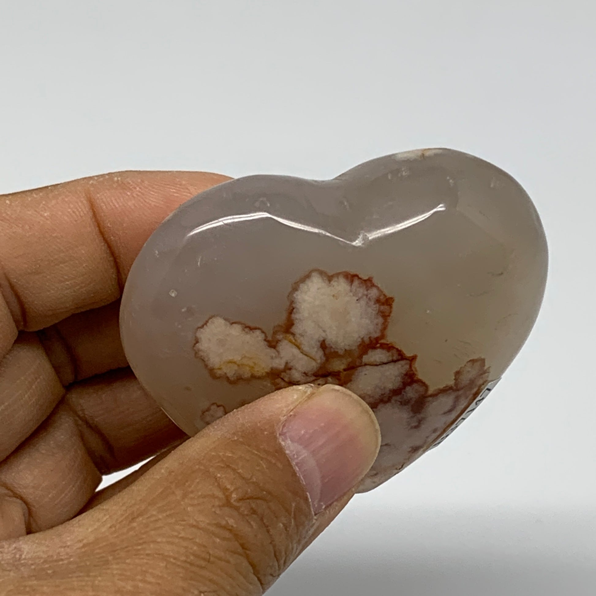 0.23 lbs, 2.1"x2.3"x1", Cherry Blossom Flower Agate Heart Crystal, B37147