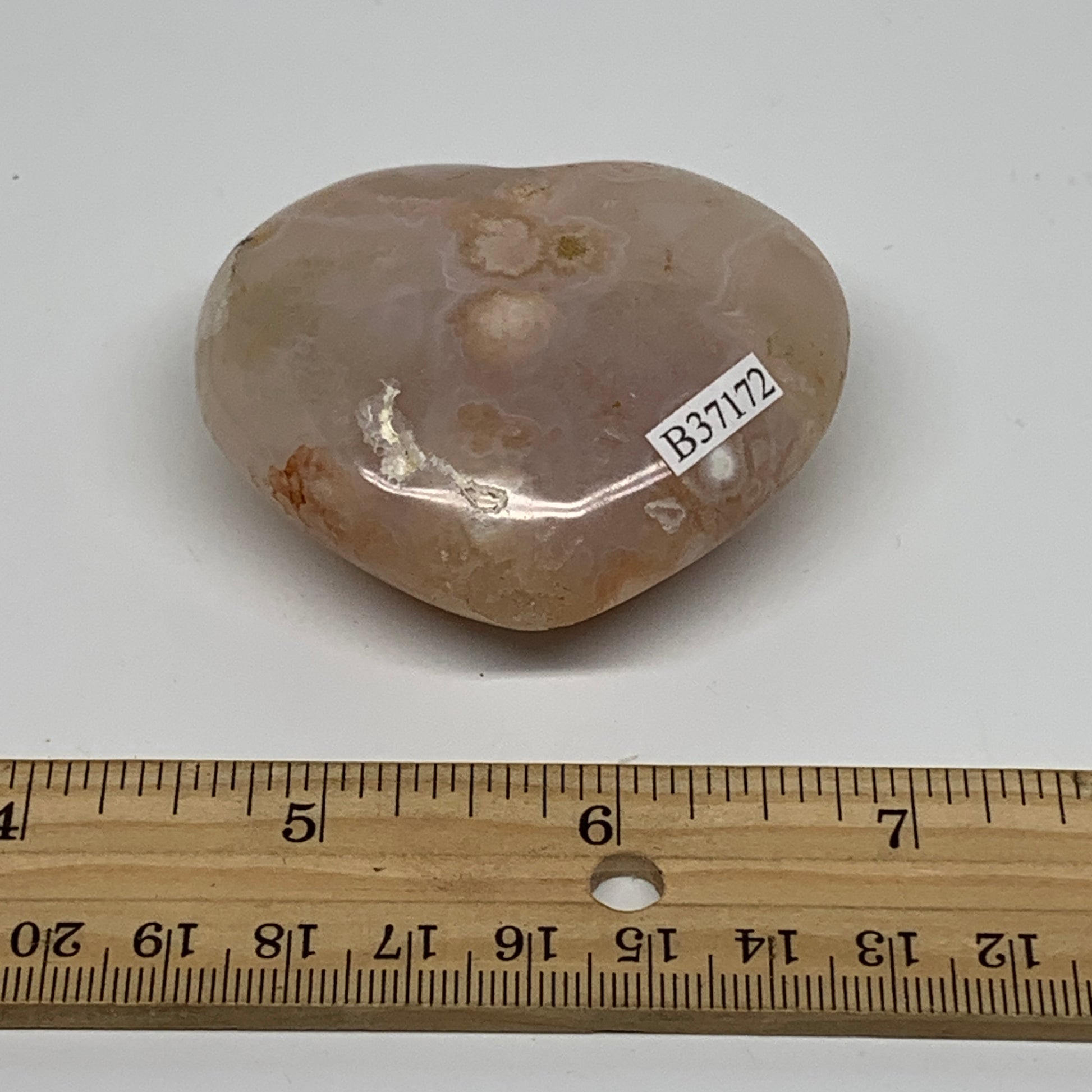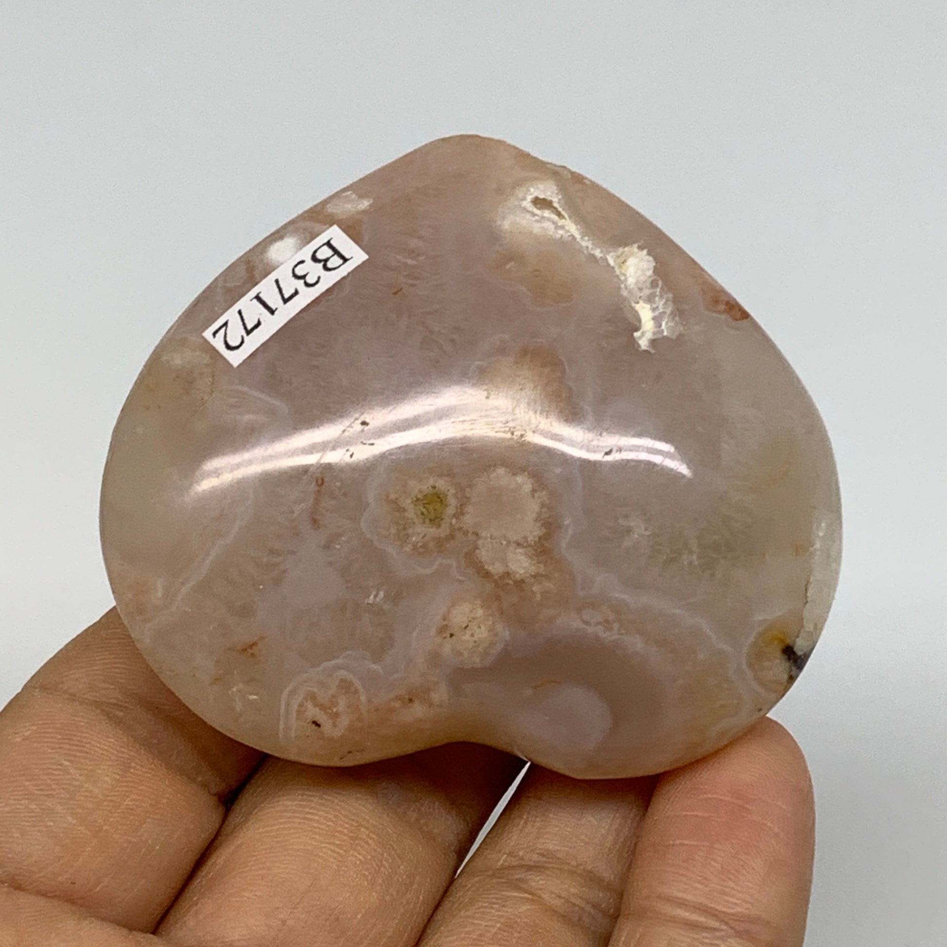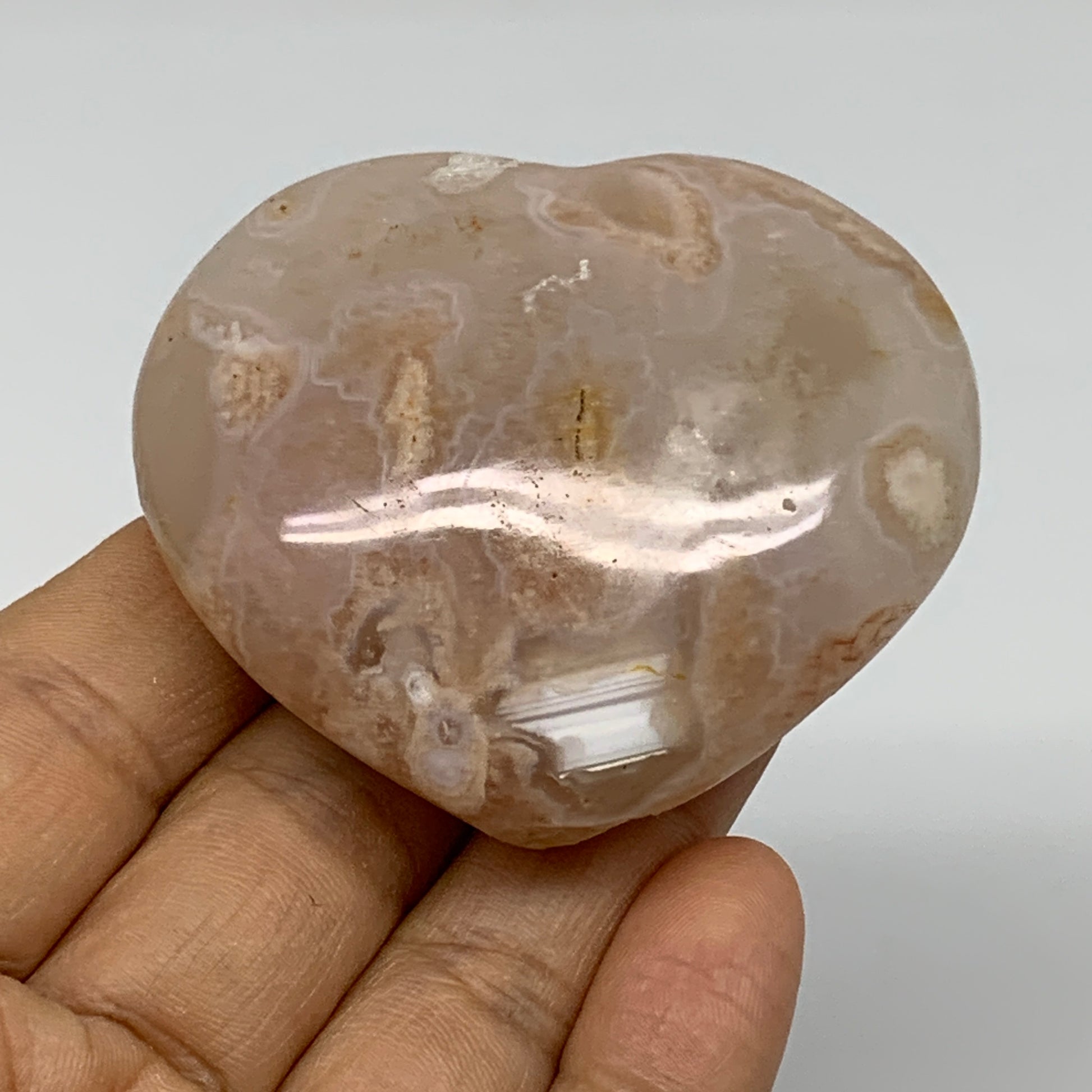 0.23 lbs, 2.1"x2.4"x1", Cherry Blossom Flower Agate Heart Crystal, B37172