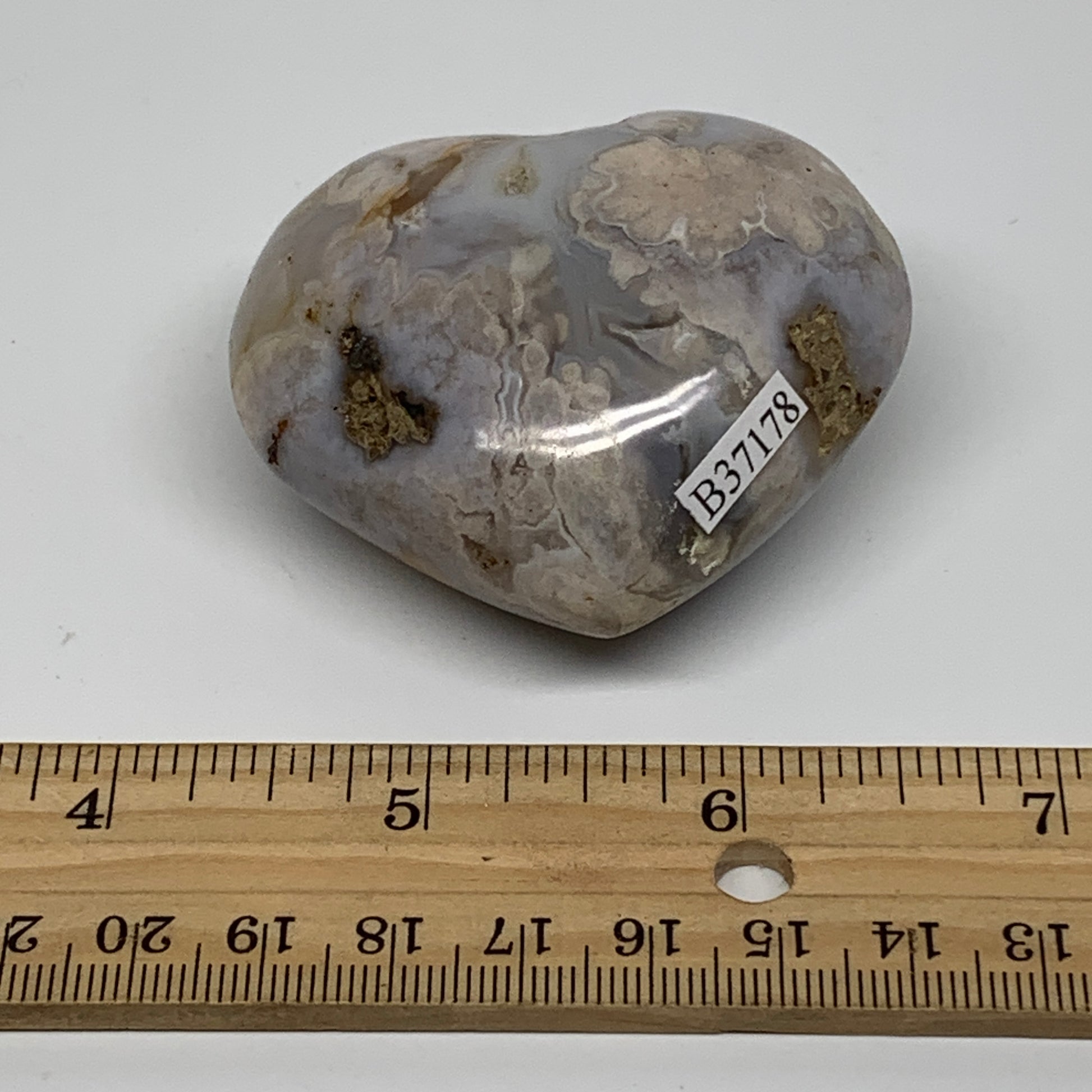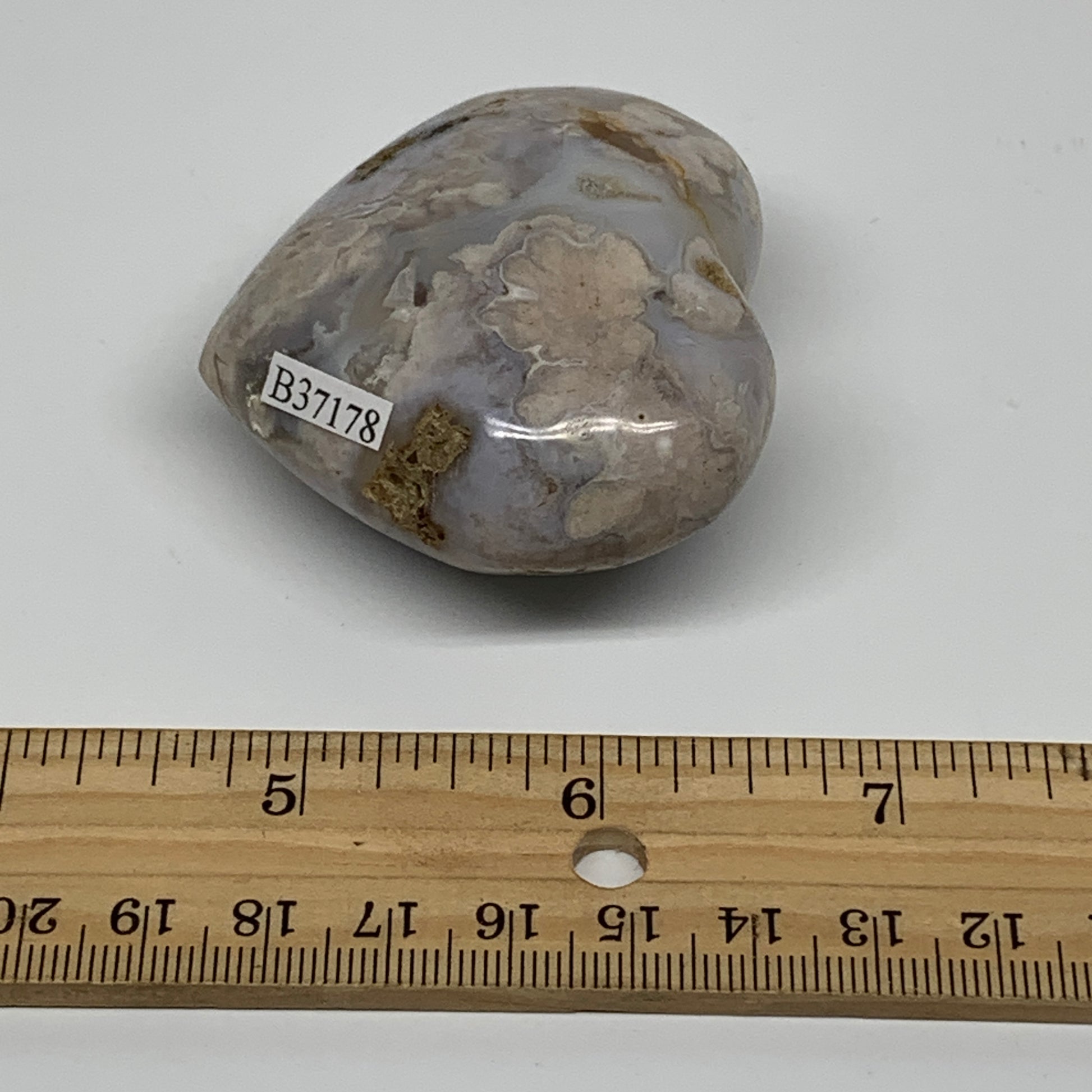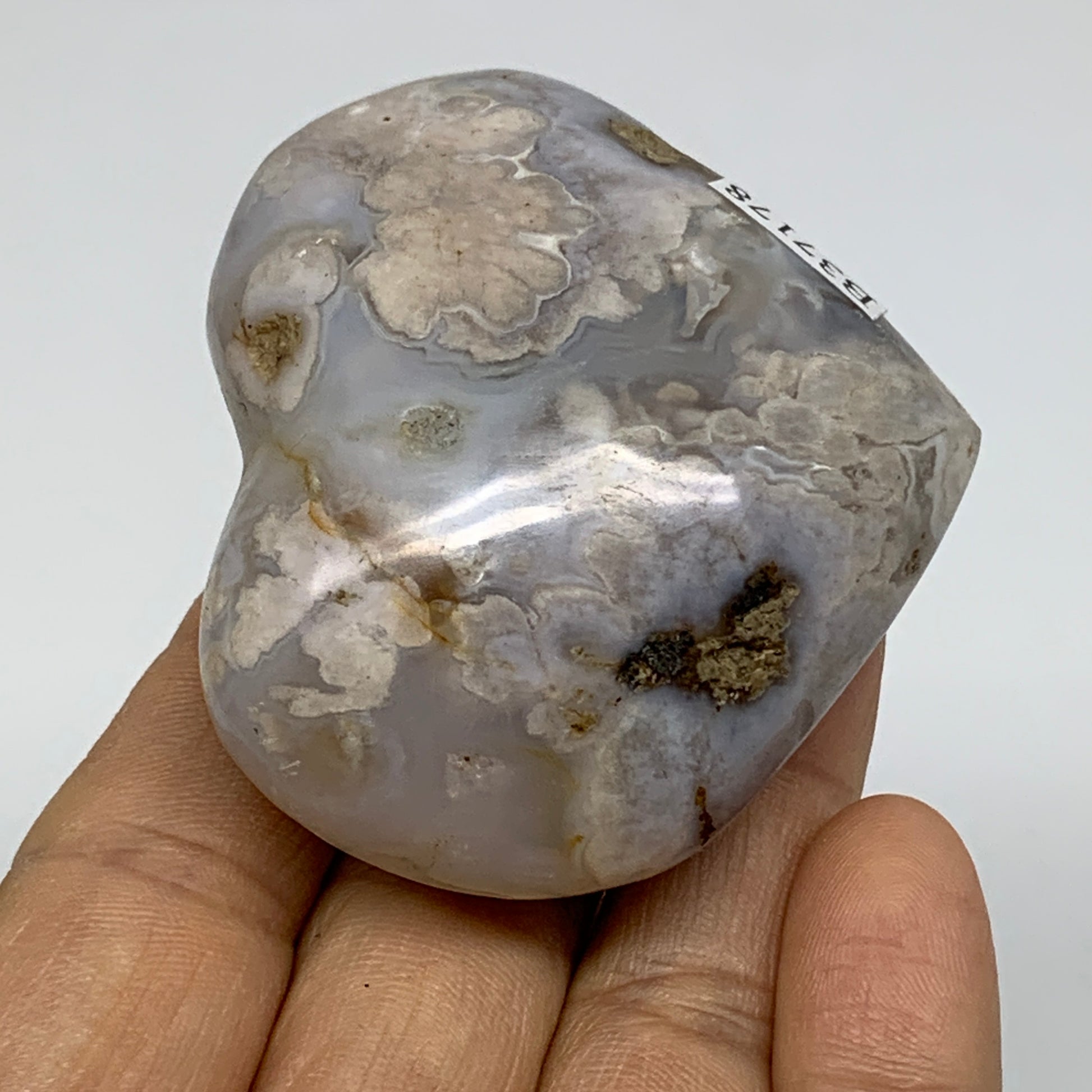 0.24 lbs, 2"x2.3"x1.1", Cherry Blossom Flower Agate Heart Crystal, B37178