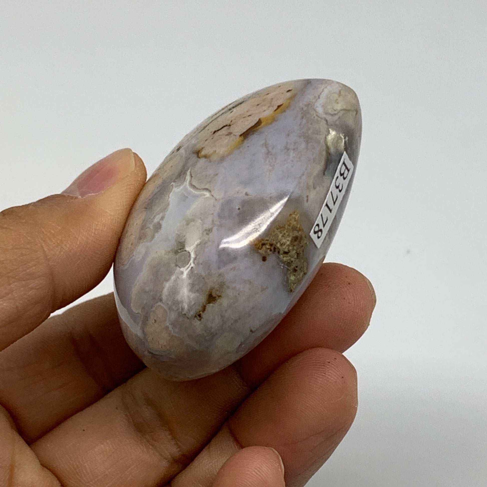Flower agate is part of the chalcedony family. It’s identified by its flower-shaped inclusions.