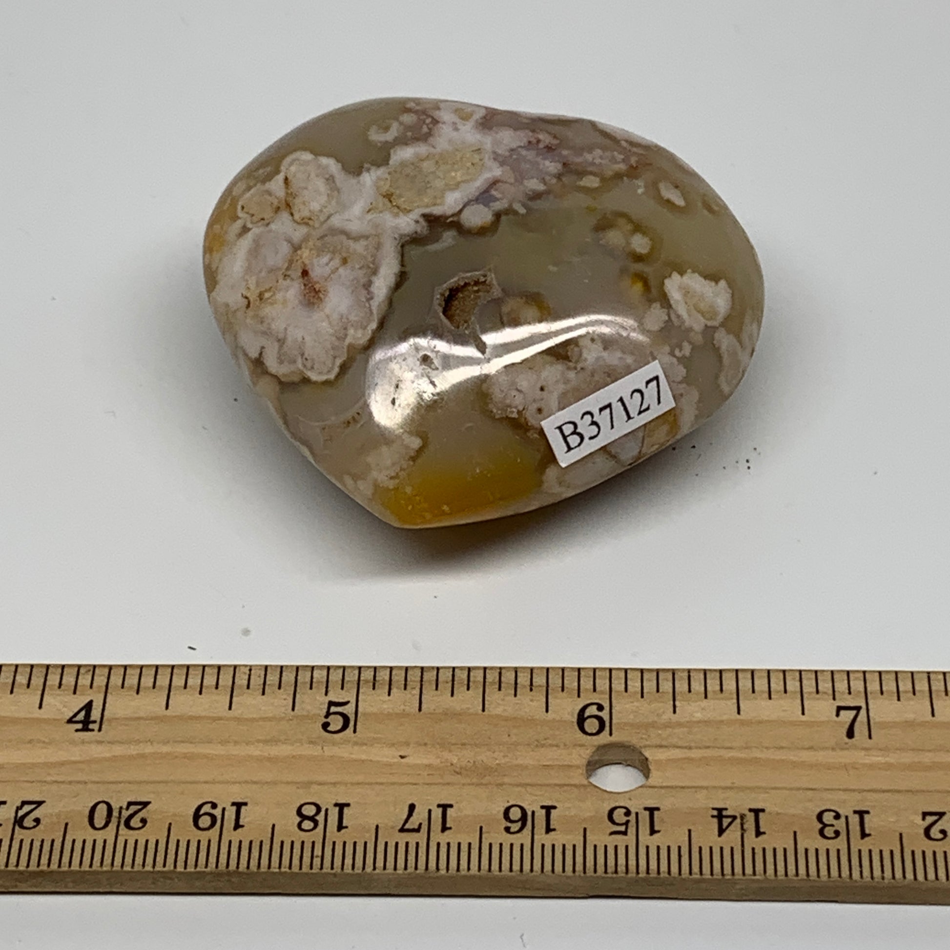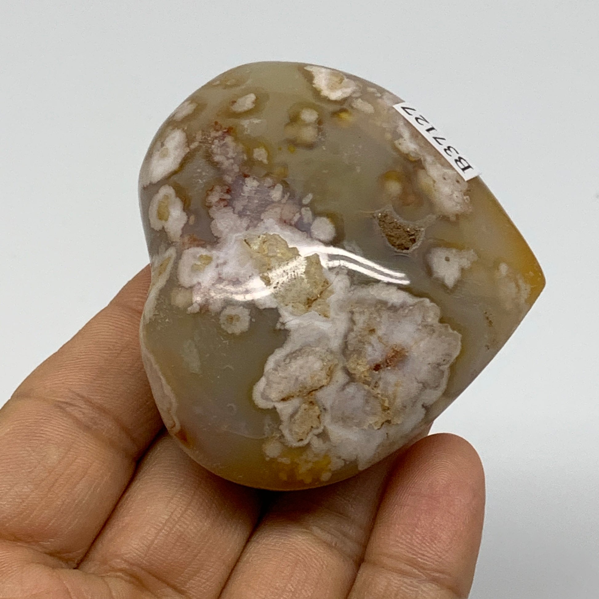 0.25 lbs, 2.2"x2.4"x1.1", Cherry Blossom Flower Agate Heart Crystal, B37127