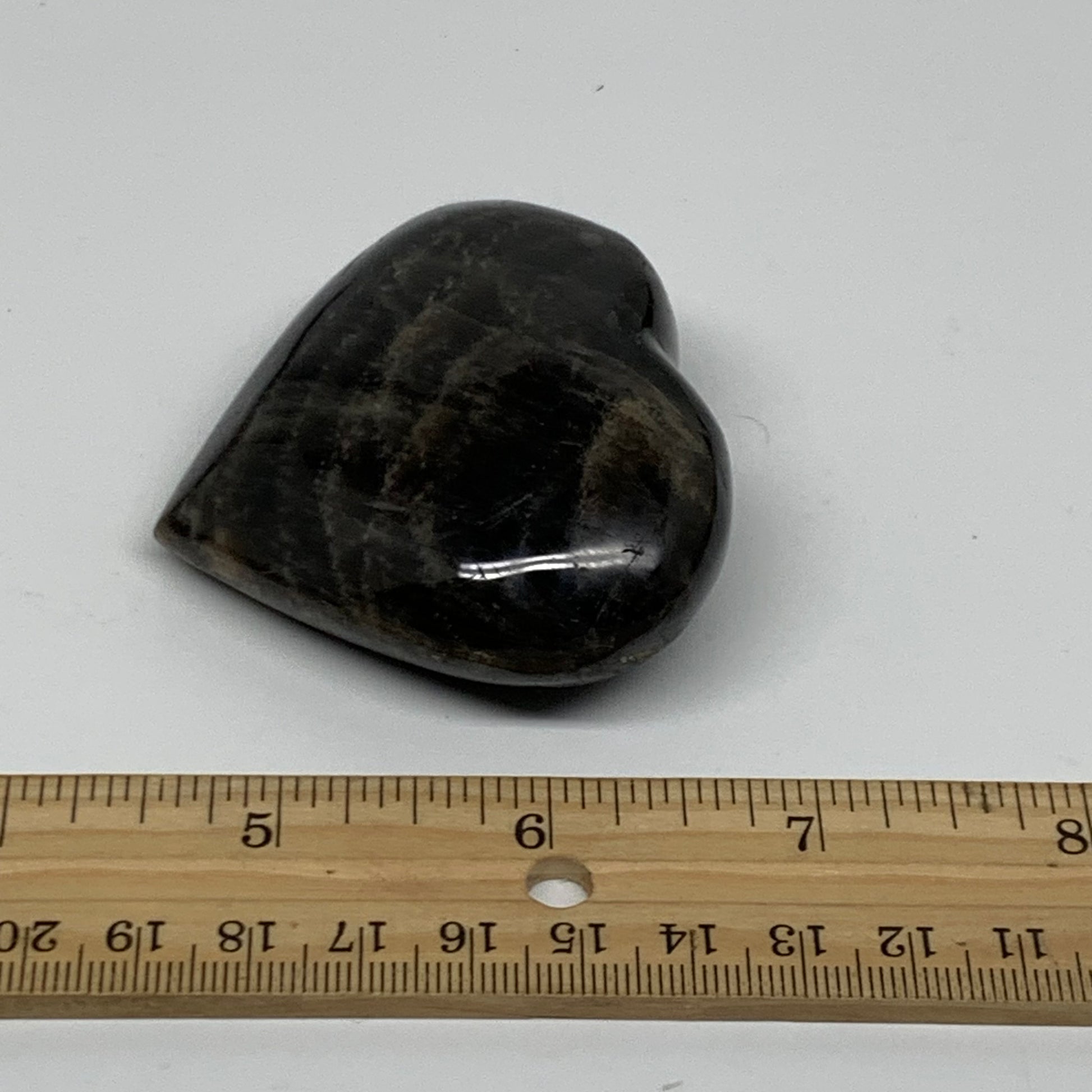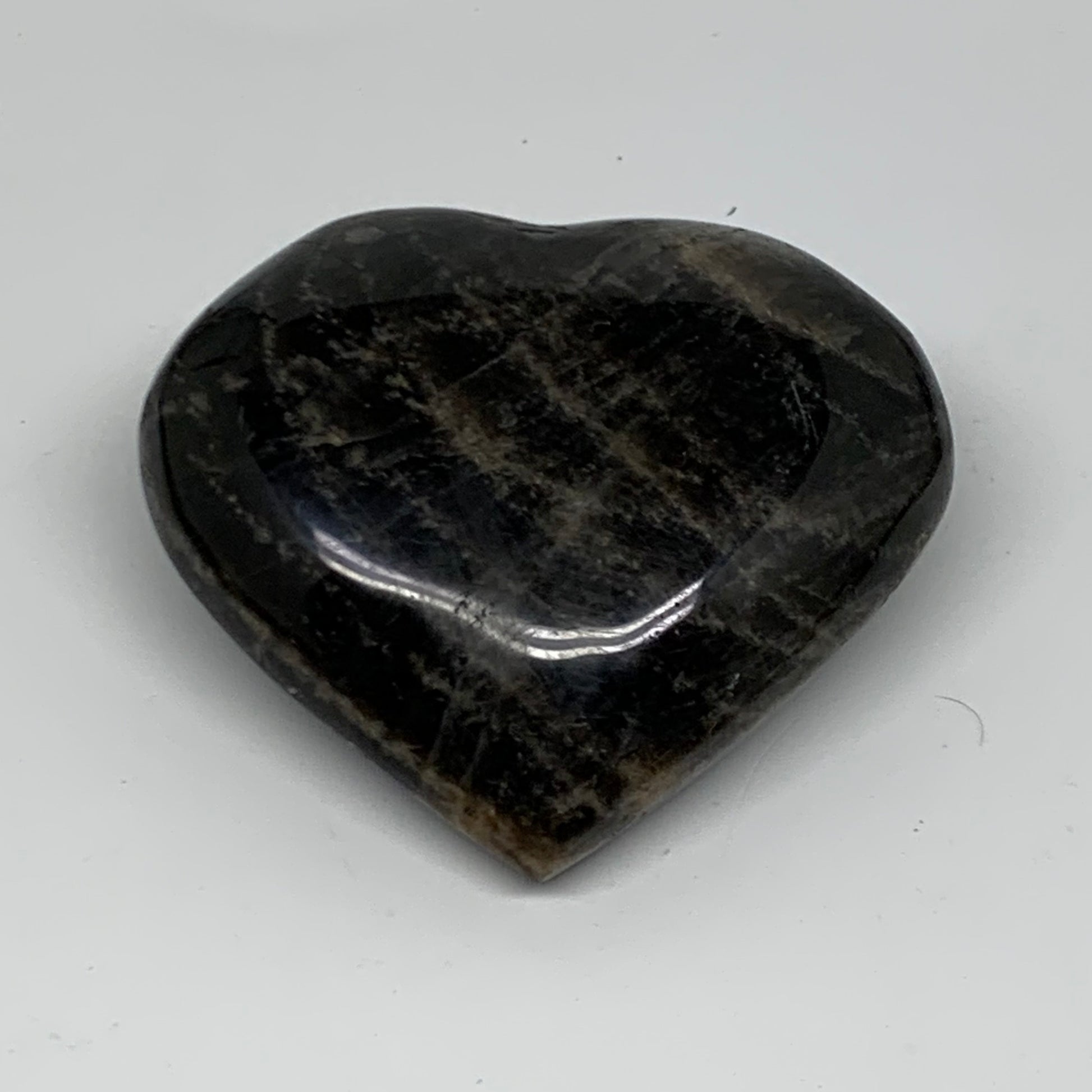 0.25 lbs, 2.2"x2.5"x1", Black Moonstone Heart Polished Crystal Decor, B37832