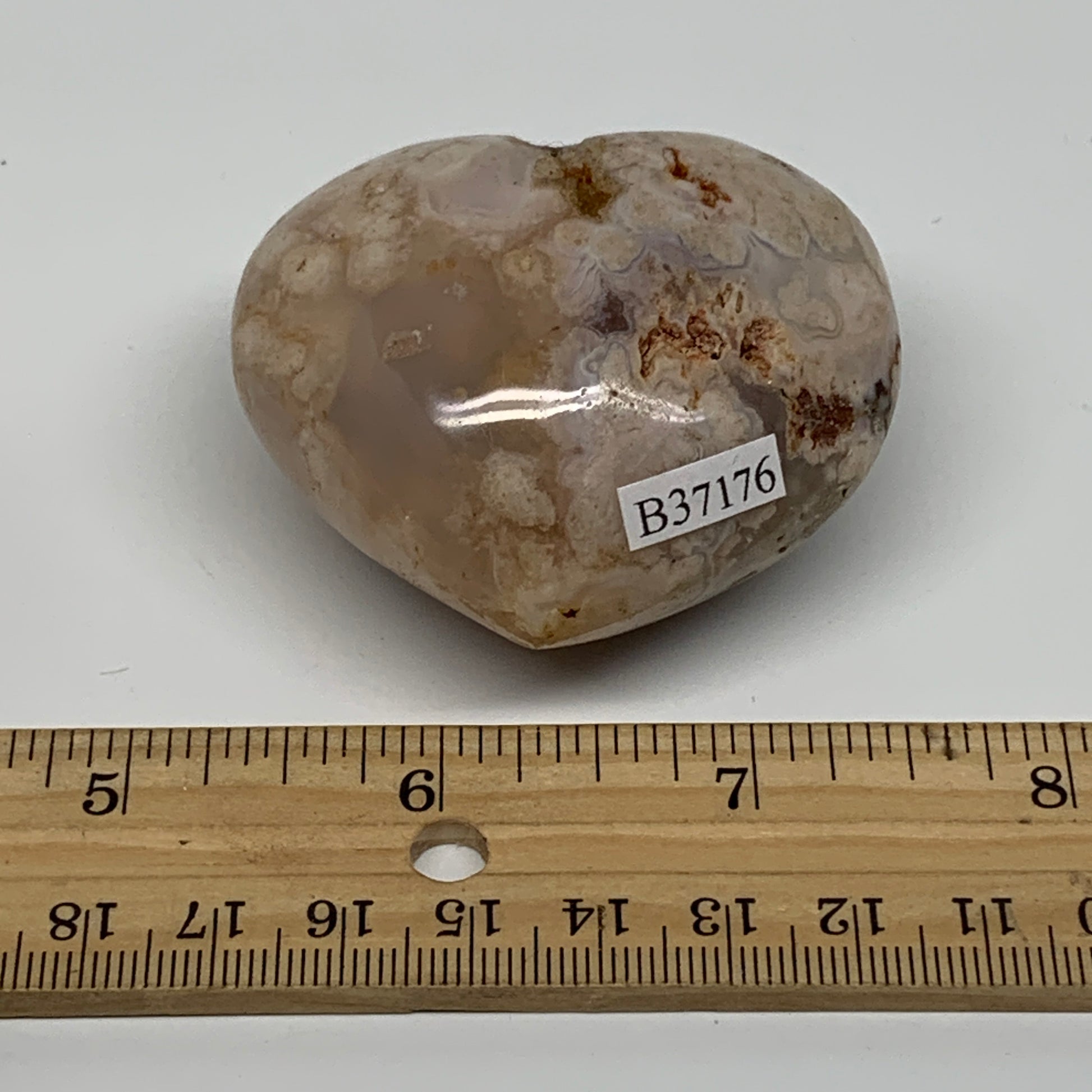 0.25 lbs, 2"x2.2"x1.3", Cherry Blossom Flower Agate Heart Crystal, B37176