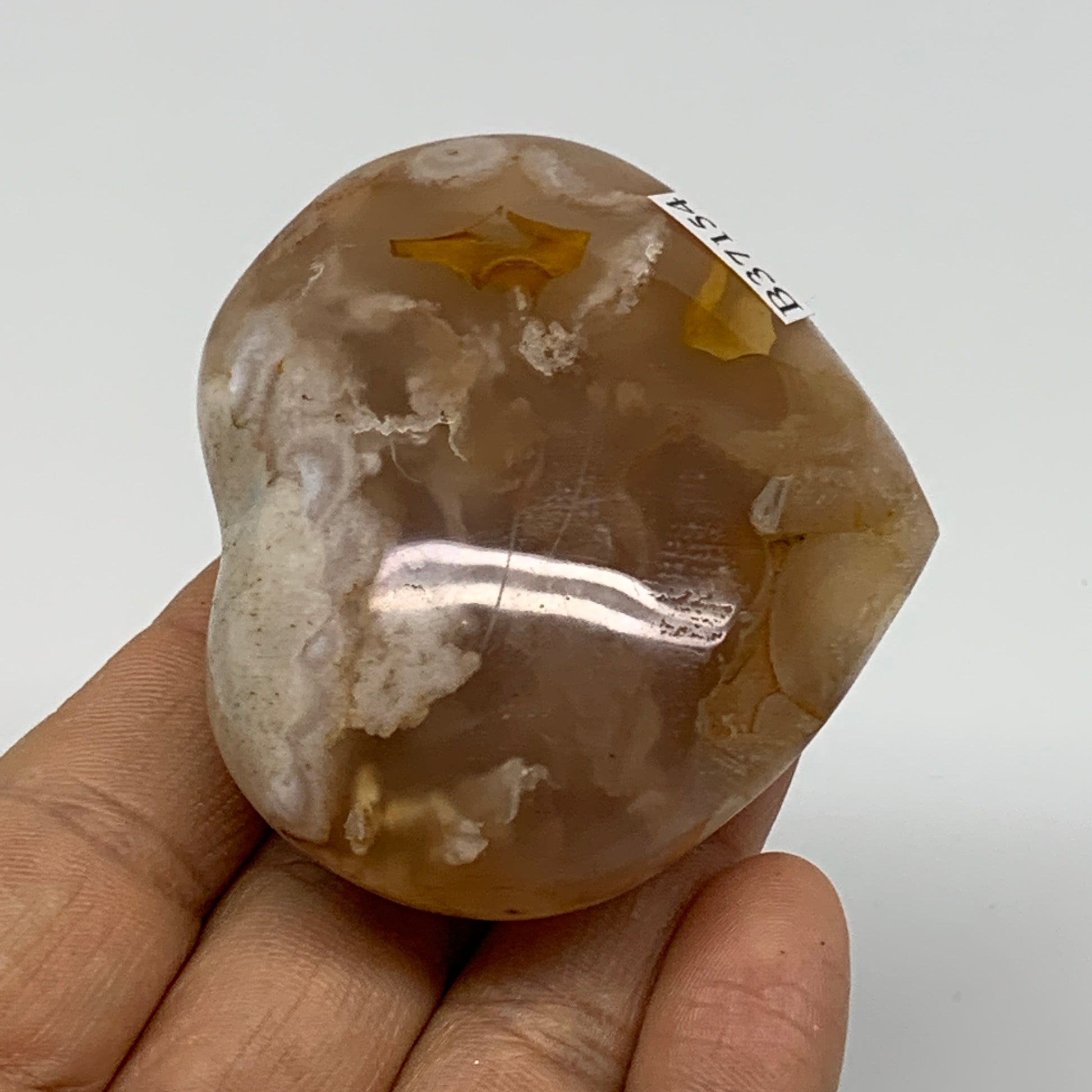 0.26 lbs, 2.1"x2.4"x1.1", Cherry Blossom Flower Agate Heart Crystal, B37154