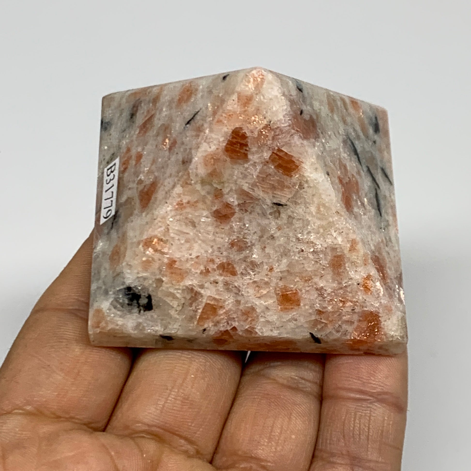 0.31 lbs, 1.6"x2.1"x2.1", Sunstone Pyramid Gemstone, Polished Gemstone, B31779