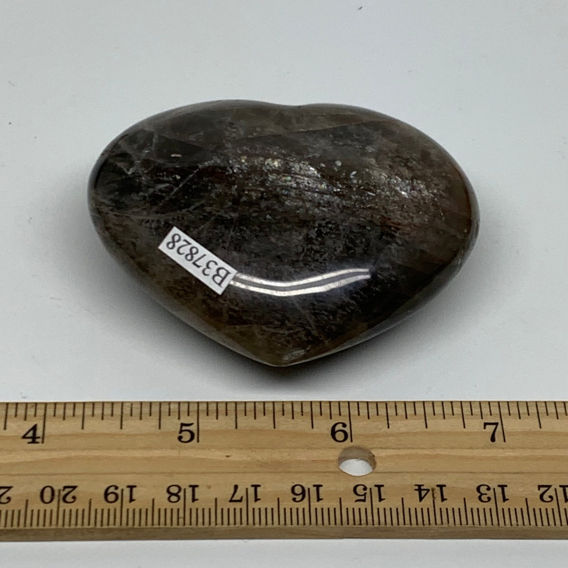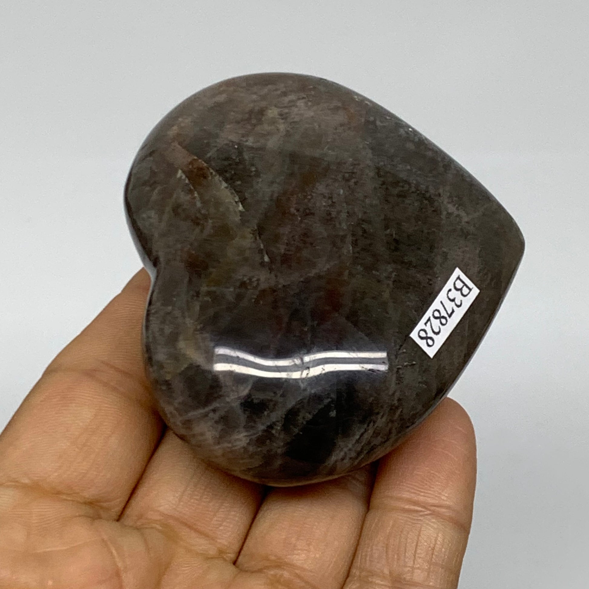 0.31 lbs, 2.3"x2.8"x1.1", Black Moonstone Heart Polished Crystal Decor, B37828