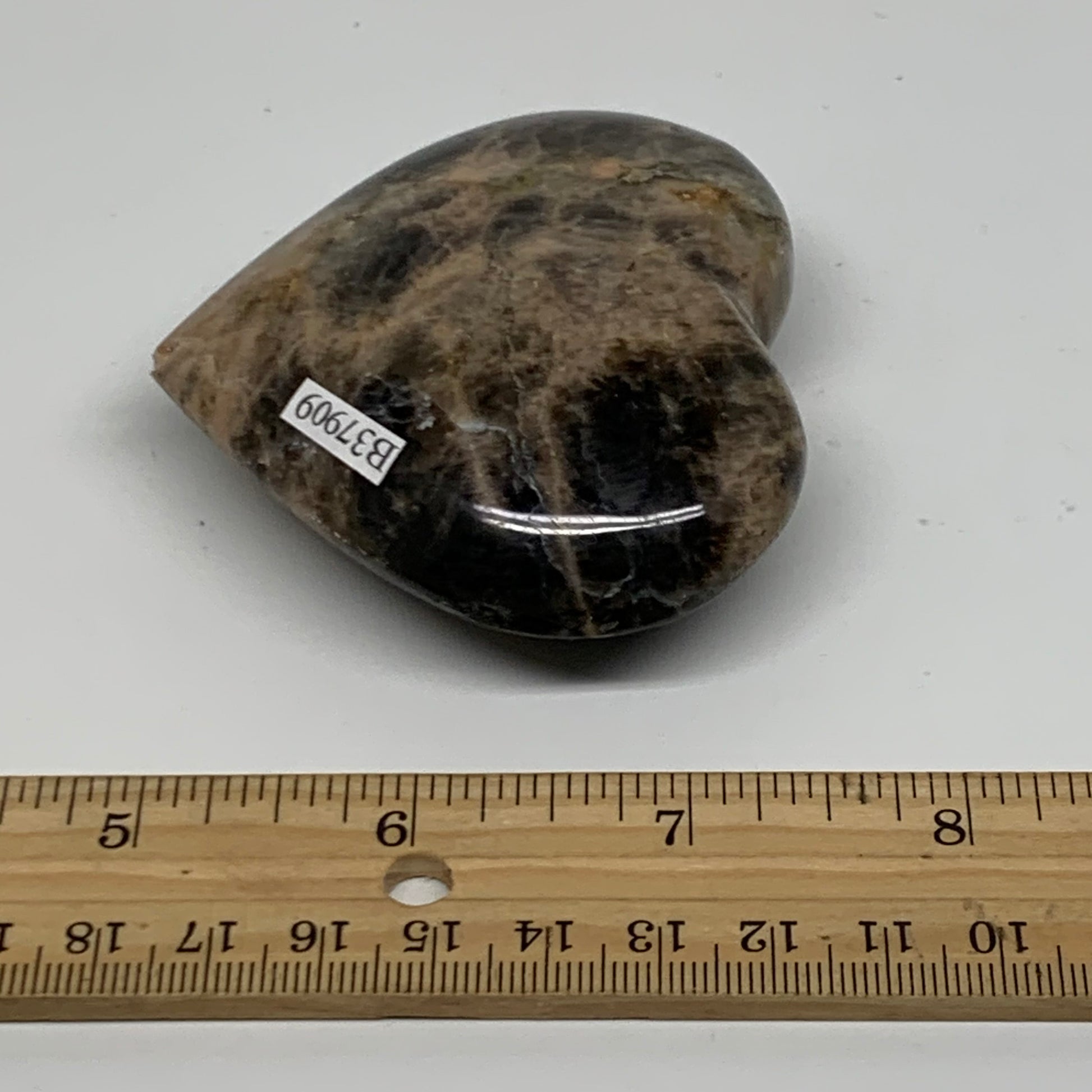 0.31 lbs, 2.6"x2.8"x1", Black Moonstone Heart Polished Crystal Decor, B37909