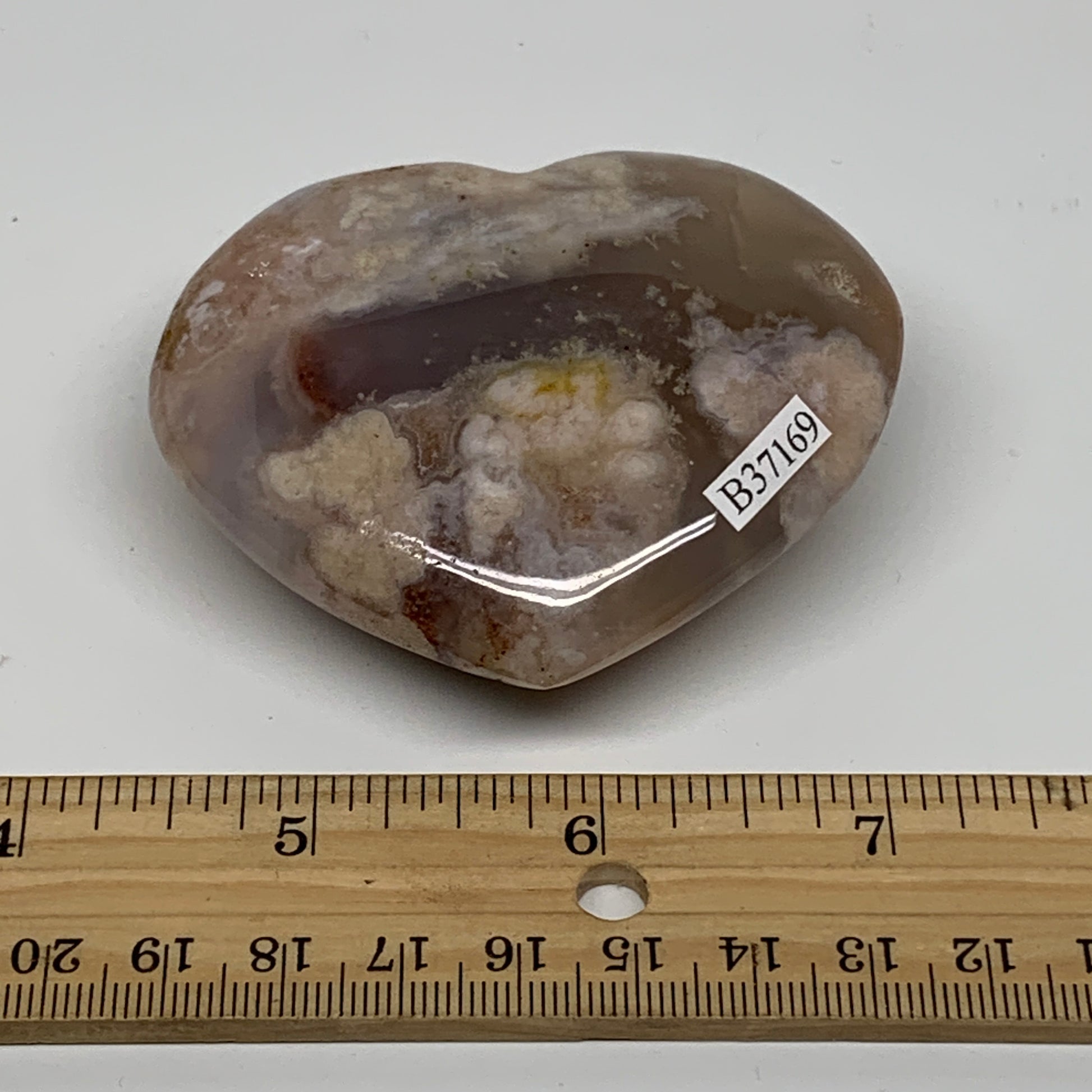 0.32 lbs, 2.4"x2.8"x1.1", Cherry Blossom Flower Agate Heart Crystal, B37169