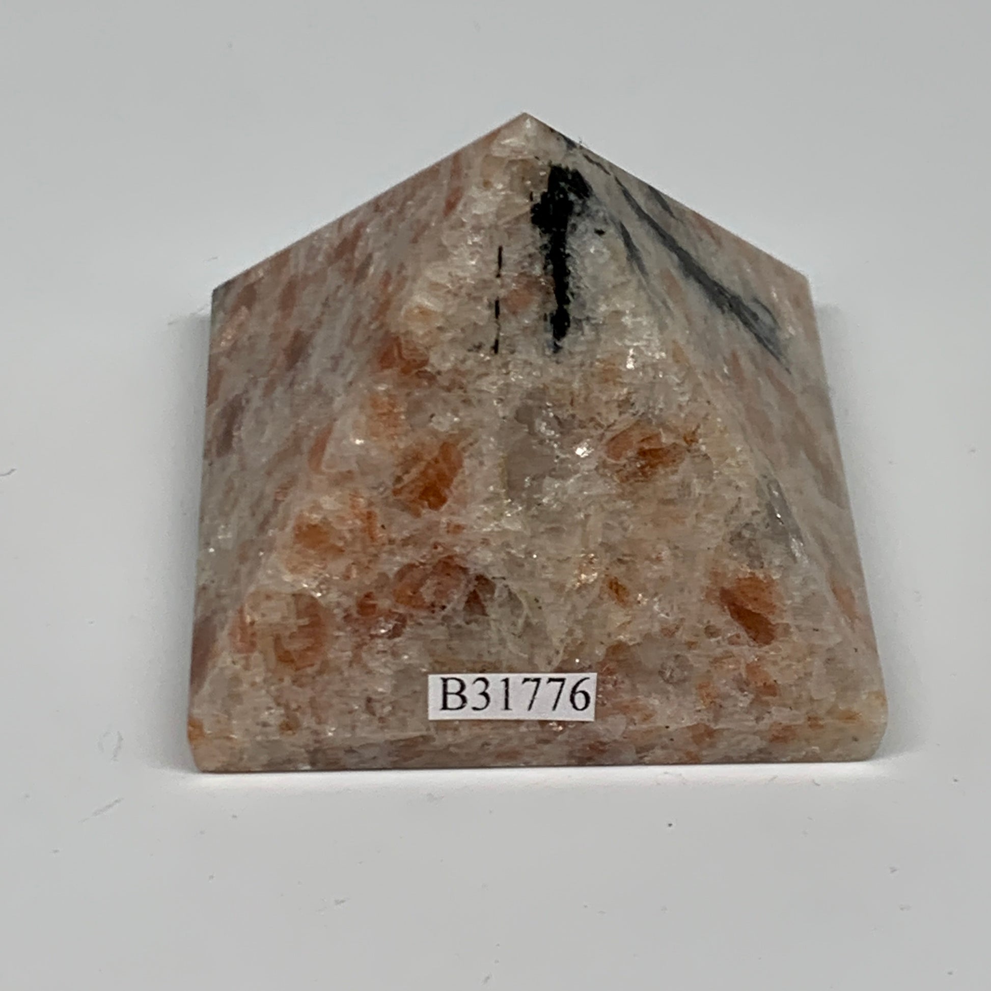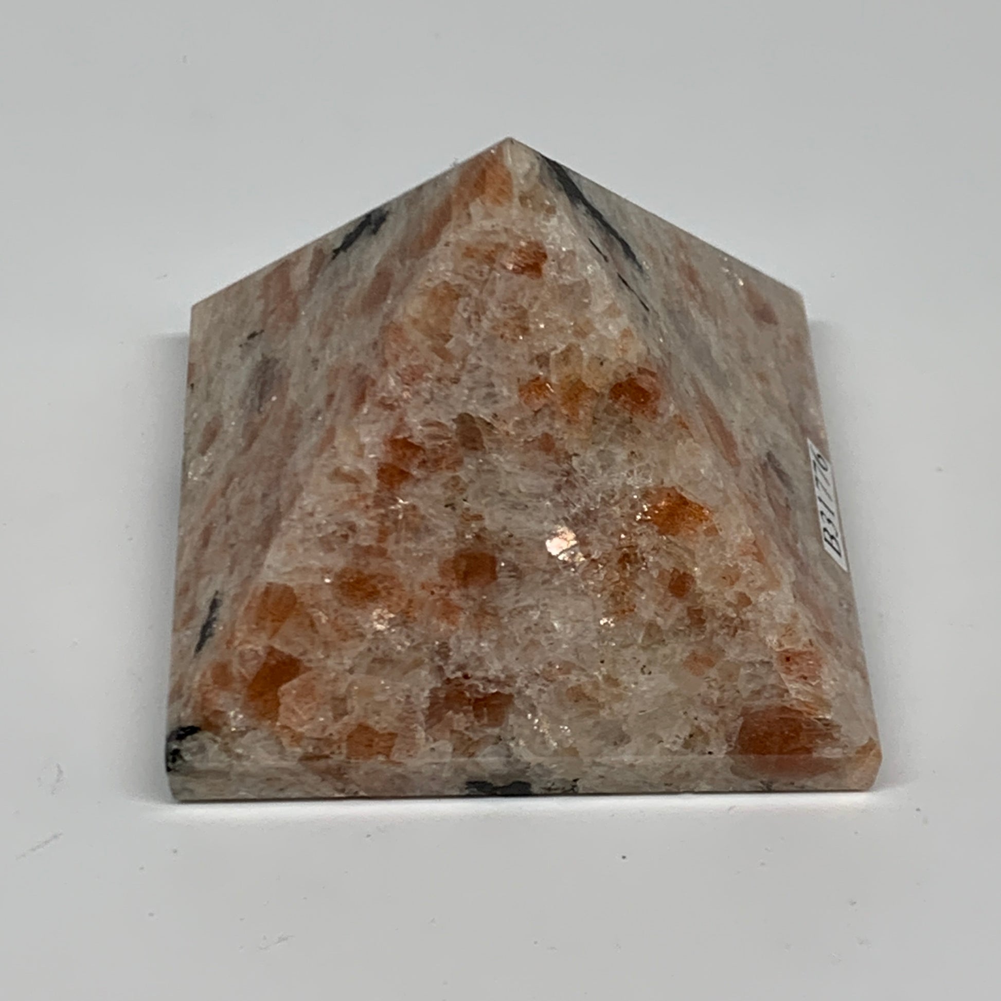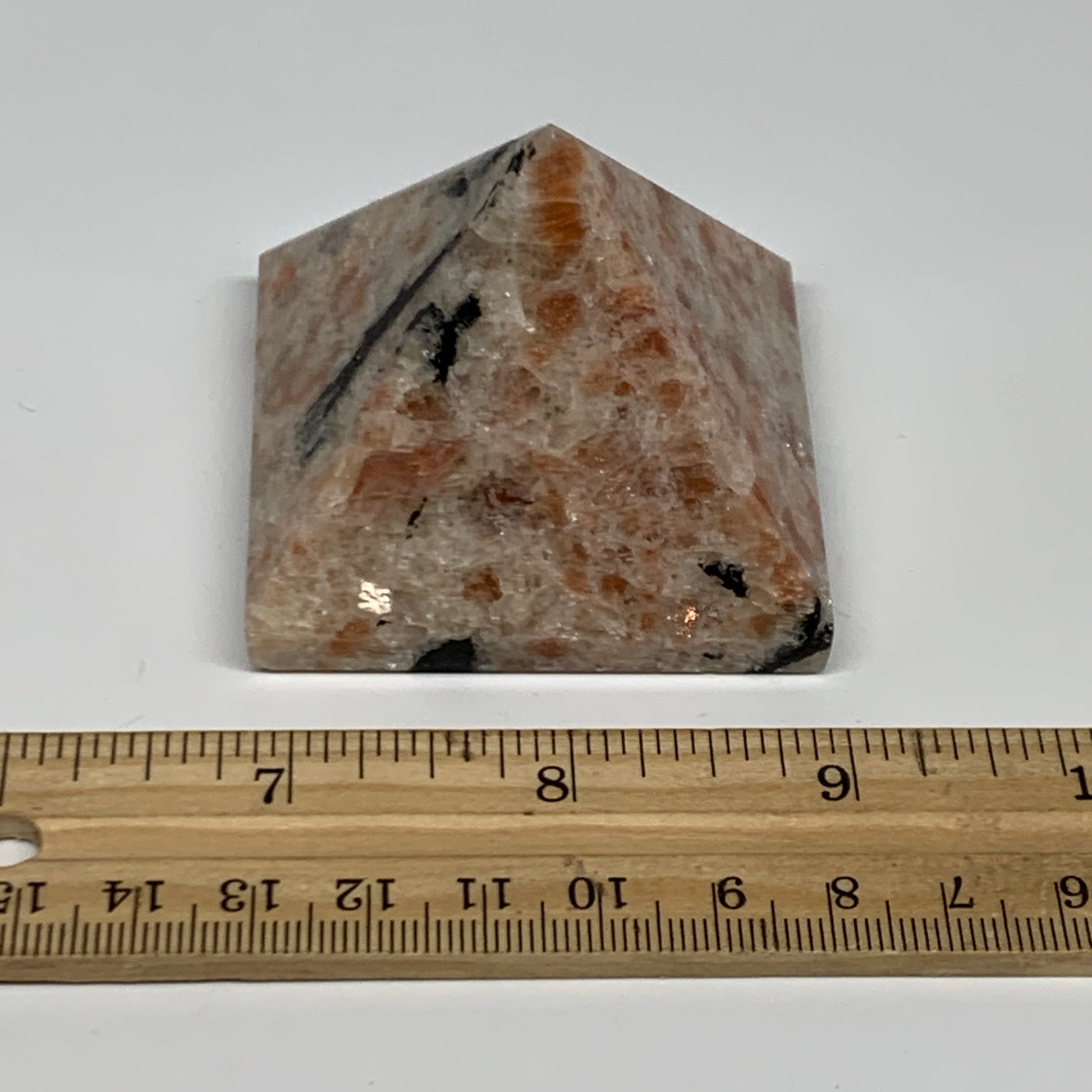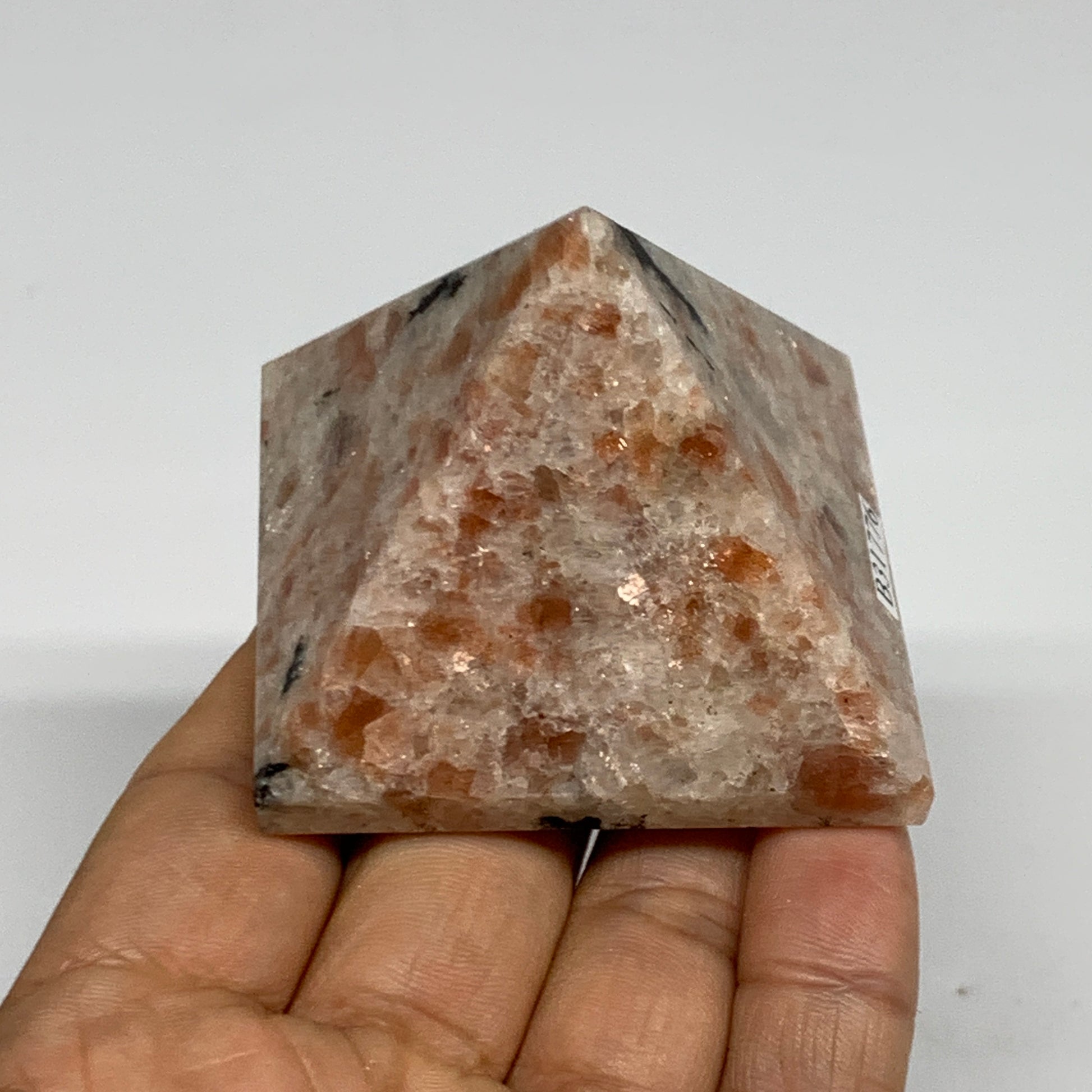 0.33 lbs, 1.7"x2.2"x2.2", Sunstone Pyramid Gemstone, Polished Gemstone, B31776