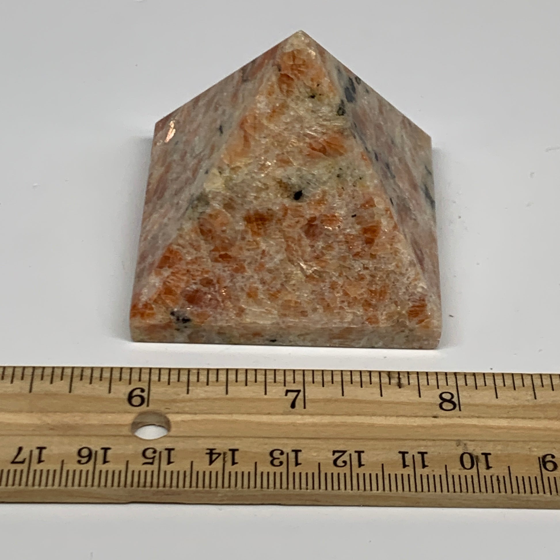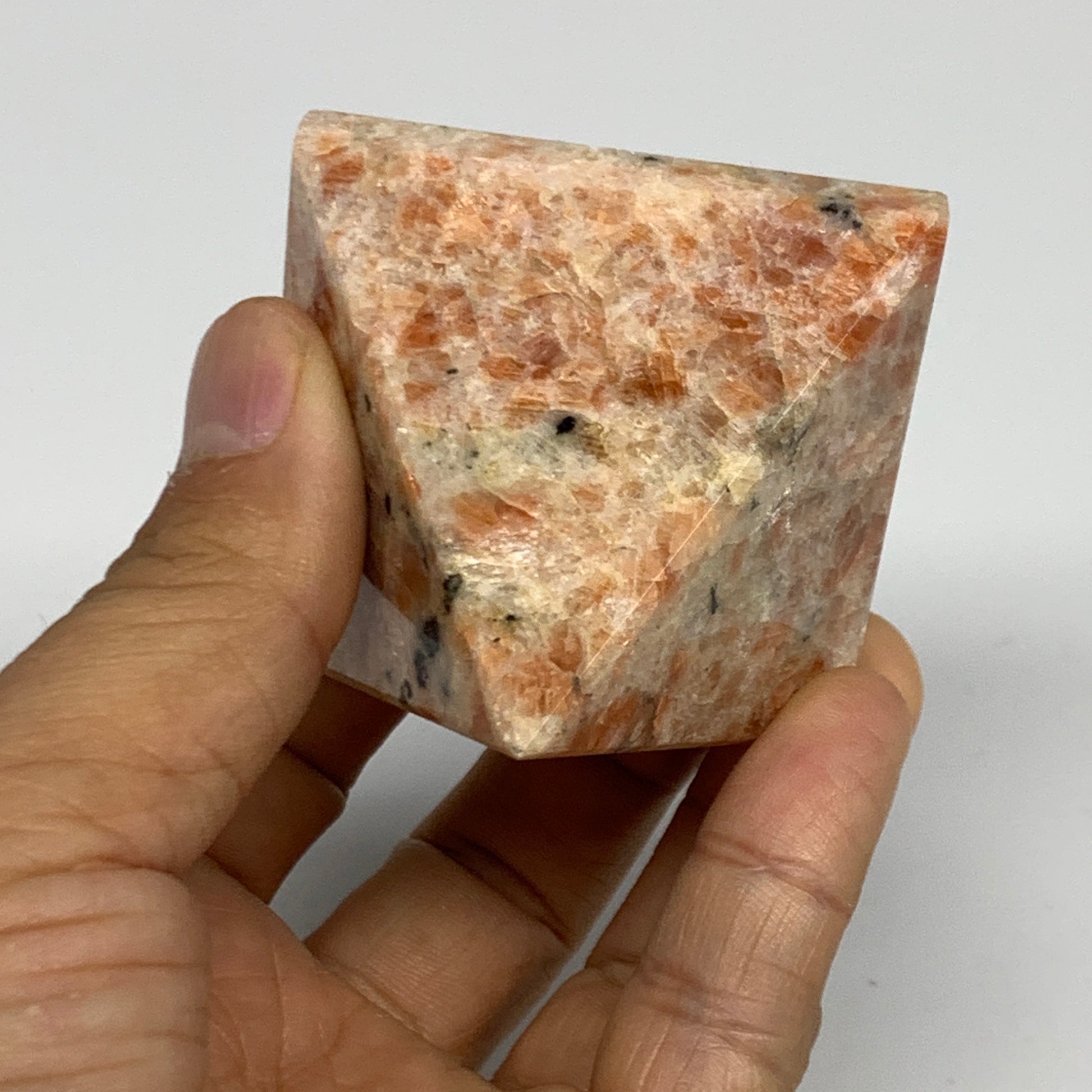 0.33 lbs, 1.8"x2.1"x2.1", Sunstone Pyramid Gemstone, Polished Gemstone, B31778