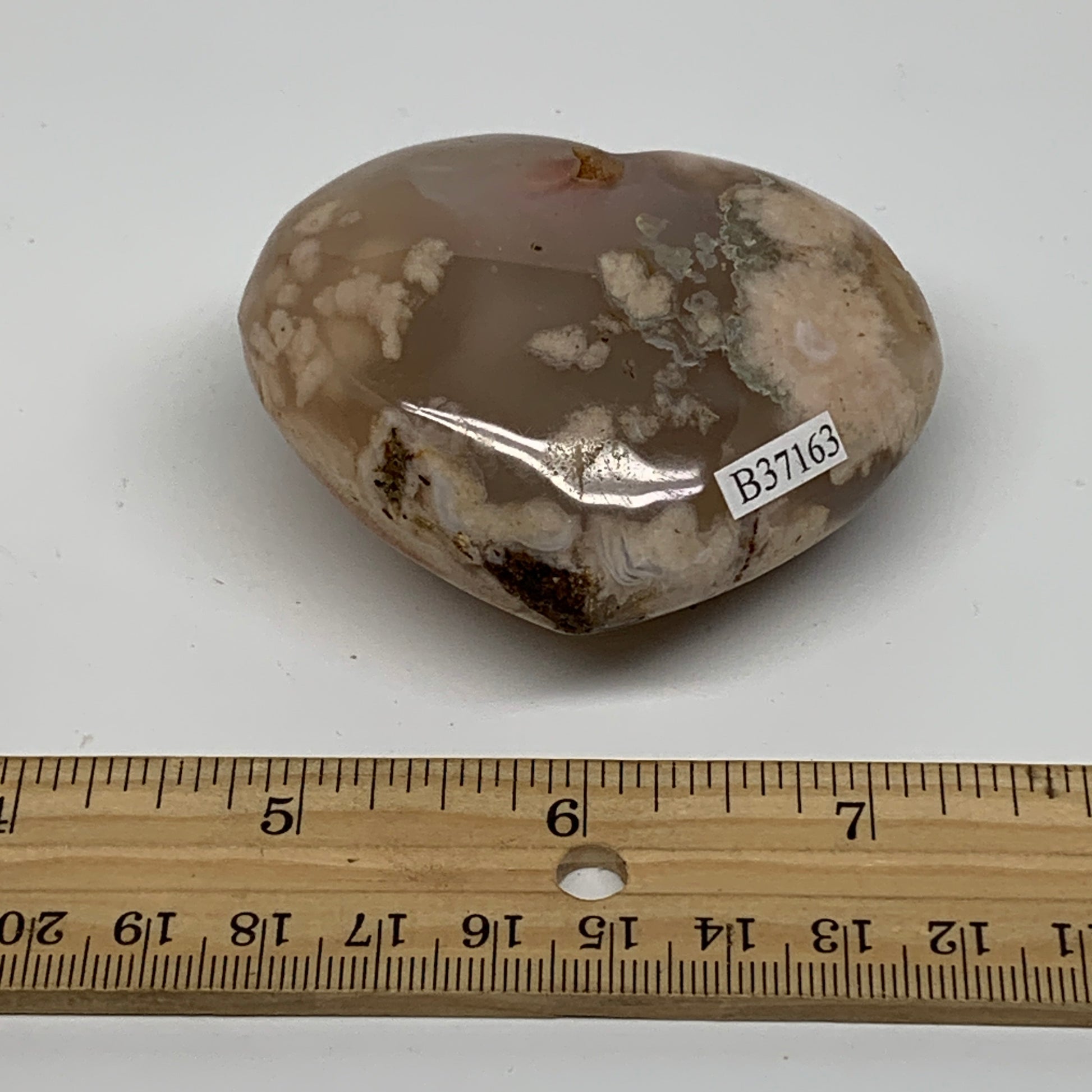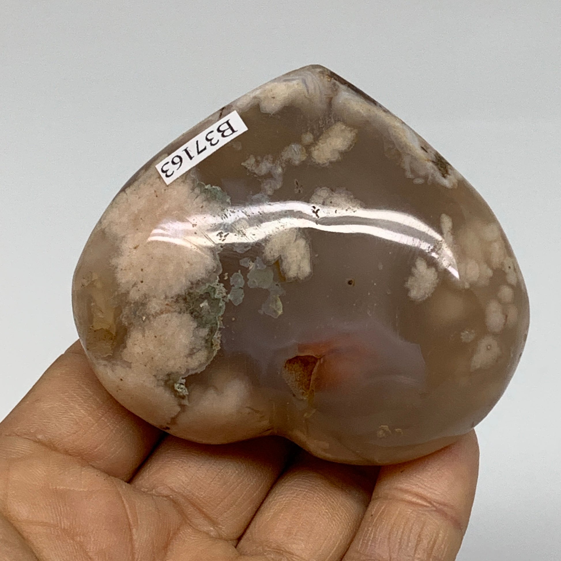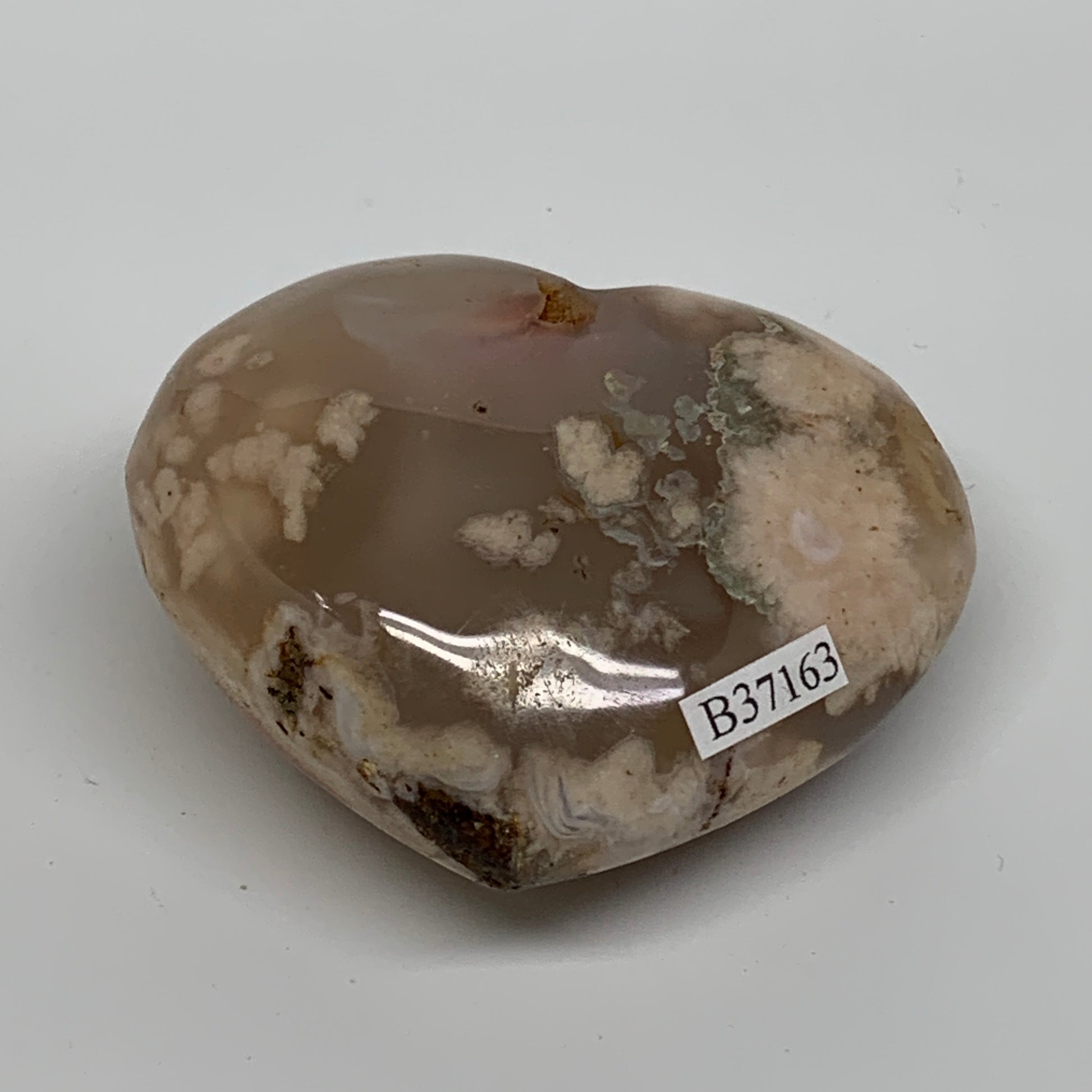 0.34 lbs, 2.3"x2.7"x1.2", Cherry Blossom Flower Agate Heart Crystal, B37163