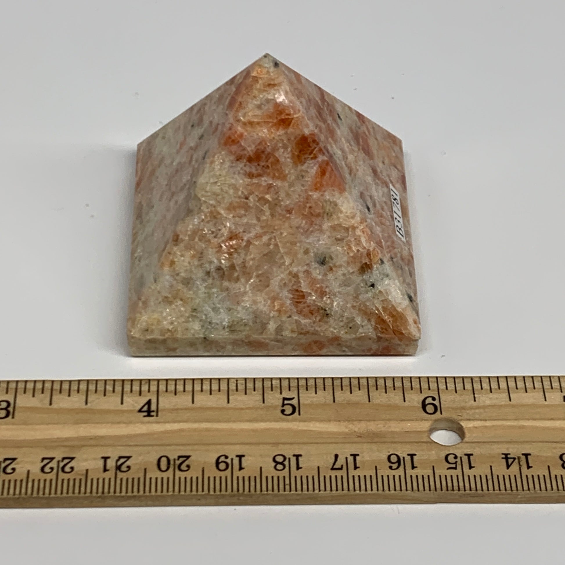 0.36 lbs, 1.9"x2.1"x2.1", Sunstone Pyramid Gemstone, Polished Gemstone, B31781