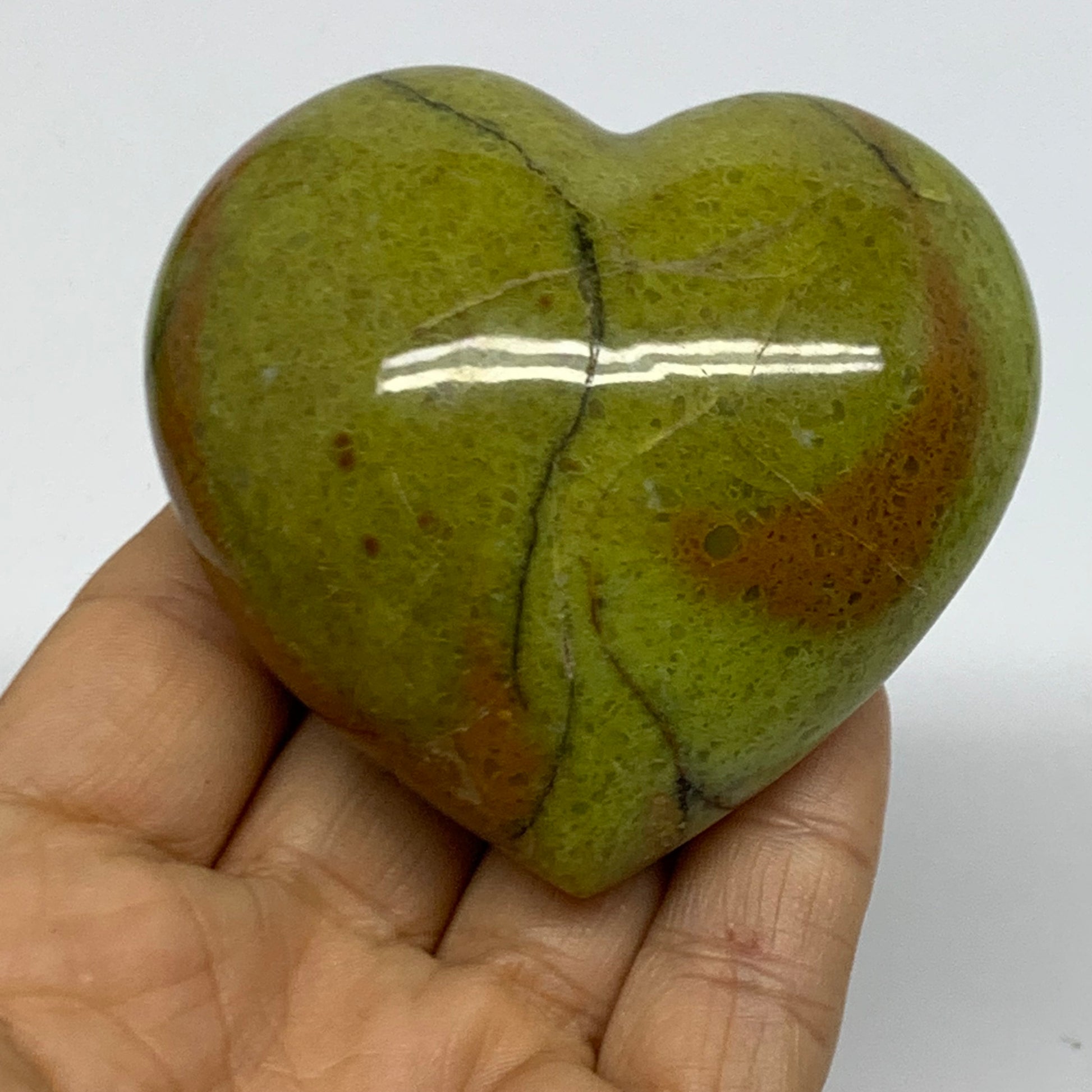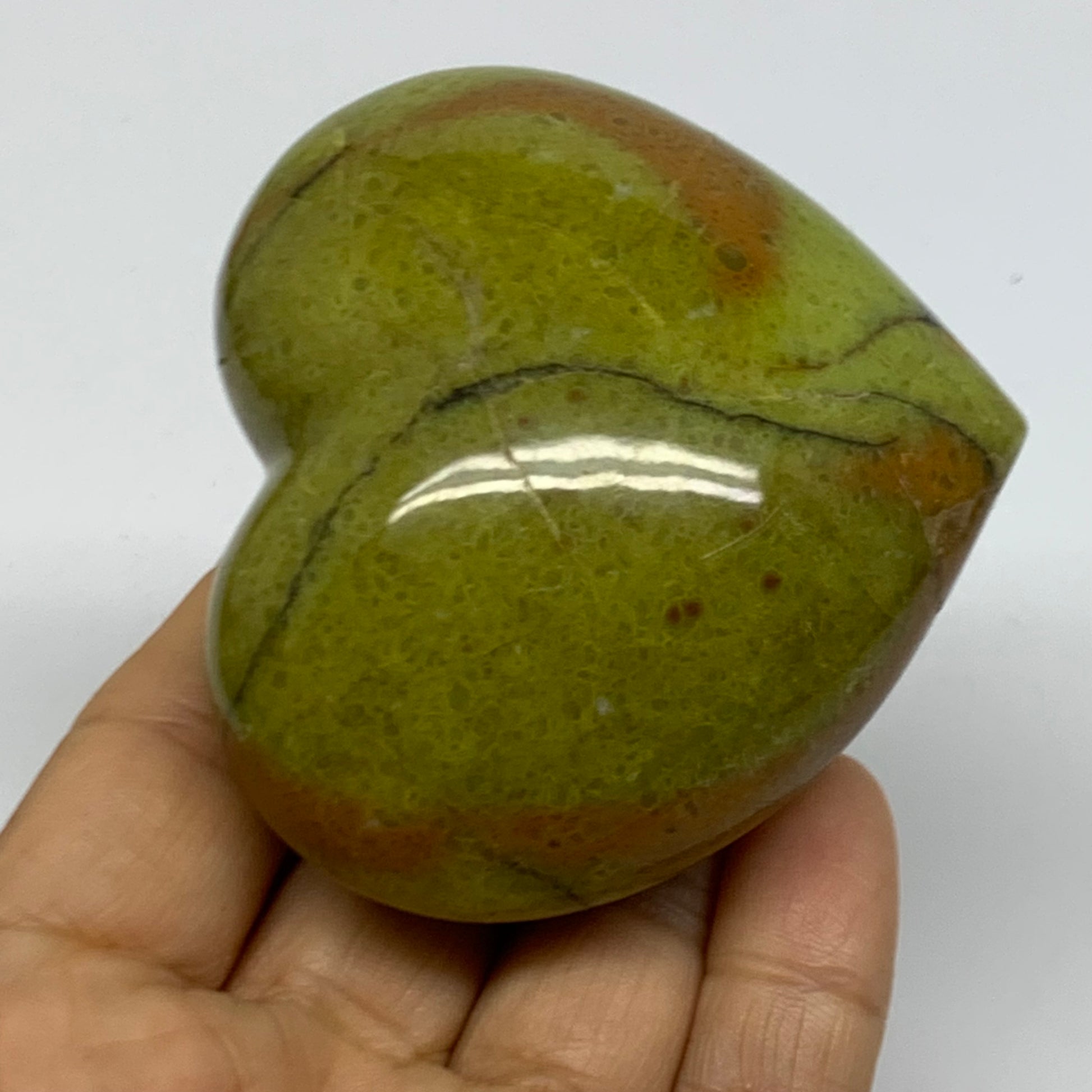 0.36 lbs, 2.5"x2.7"x1.6", Green Opal Heart Polished Gemstone Crystal, B37972