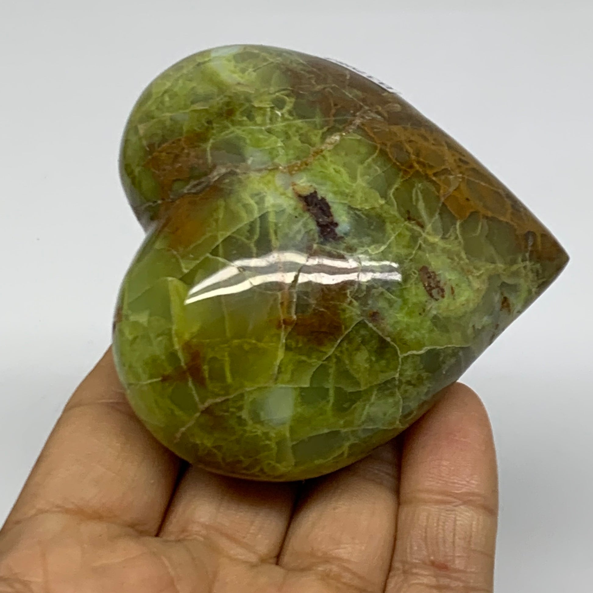 0.37 lbs, 2.7"x2.9"x1.5", Green Opal Heart Polished Gemstone Crystal, B37983