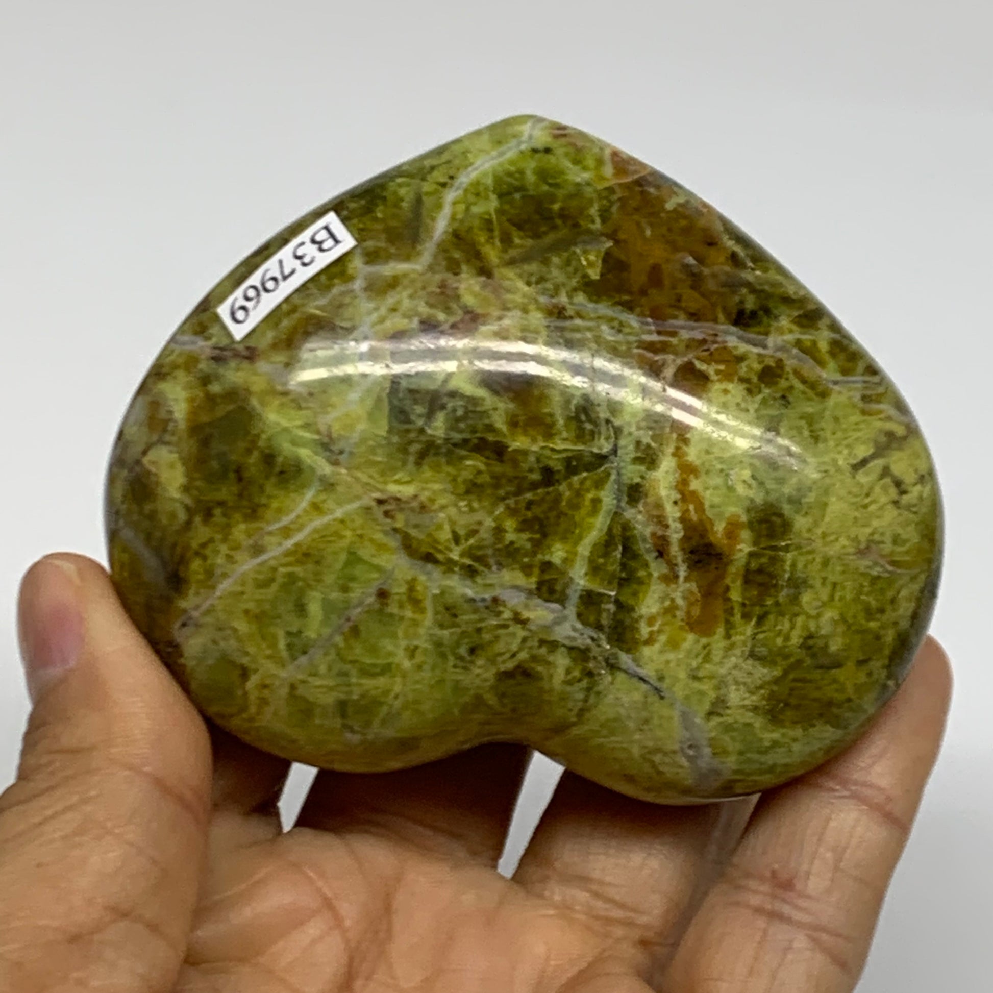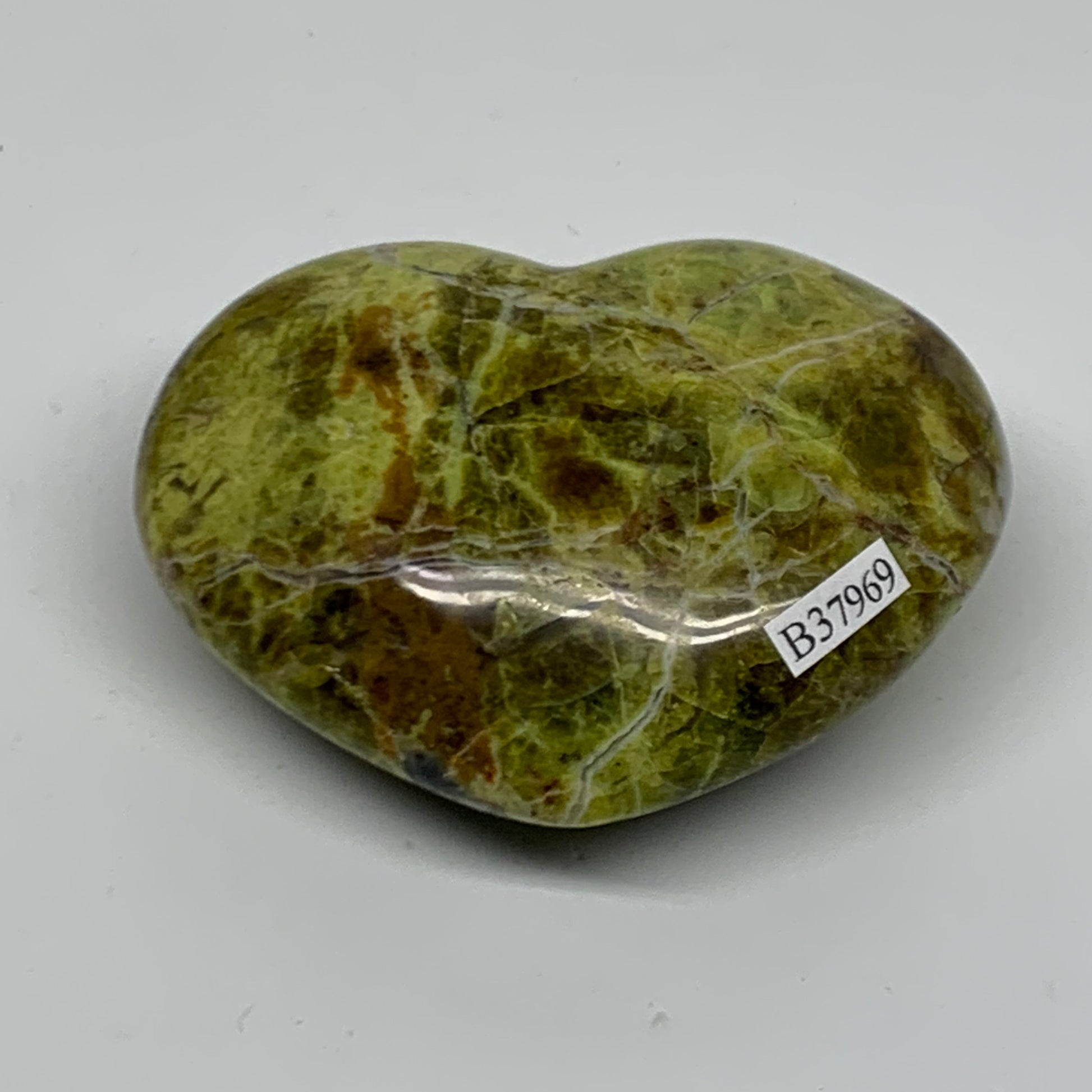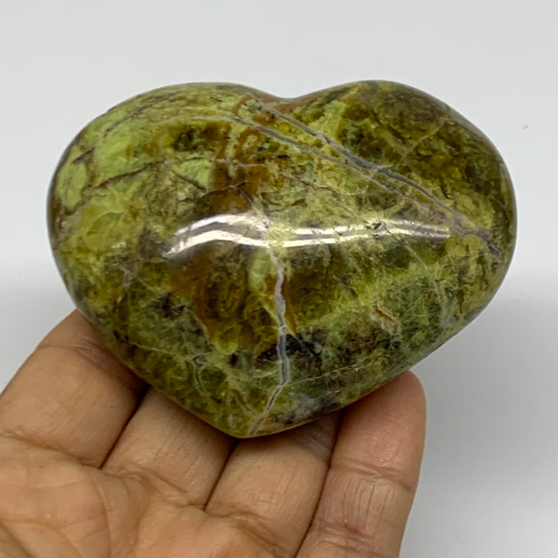 0.38 lbs, 2.5"x3.1"x1.3", Green Opal Heart Polished Gemstone Crystal, B37969