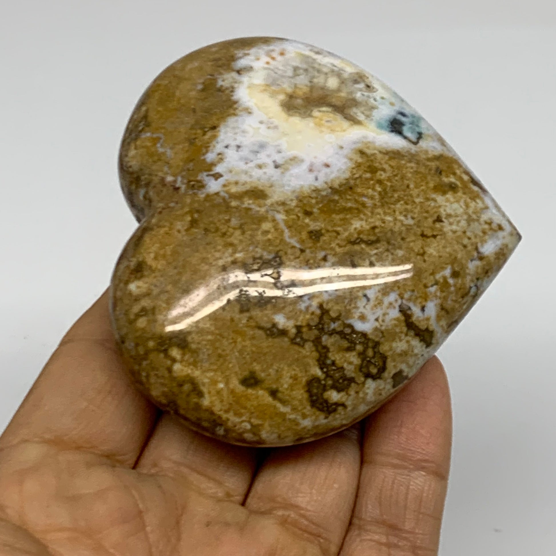 0.39 lbs, 2.6"x2.9"x1.2" Ocean Jasper Heart Polished Healing Crystal, B38348