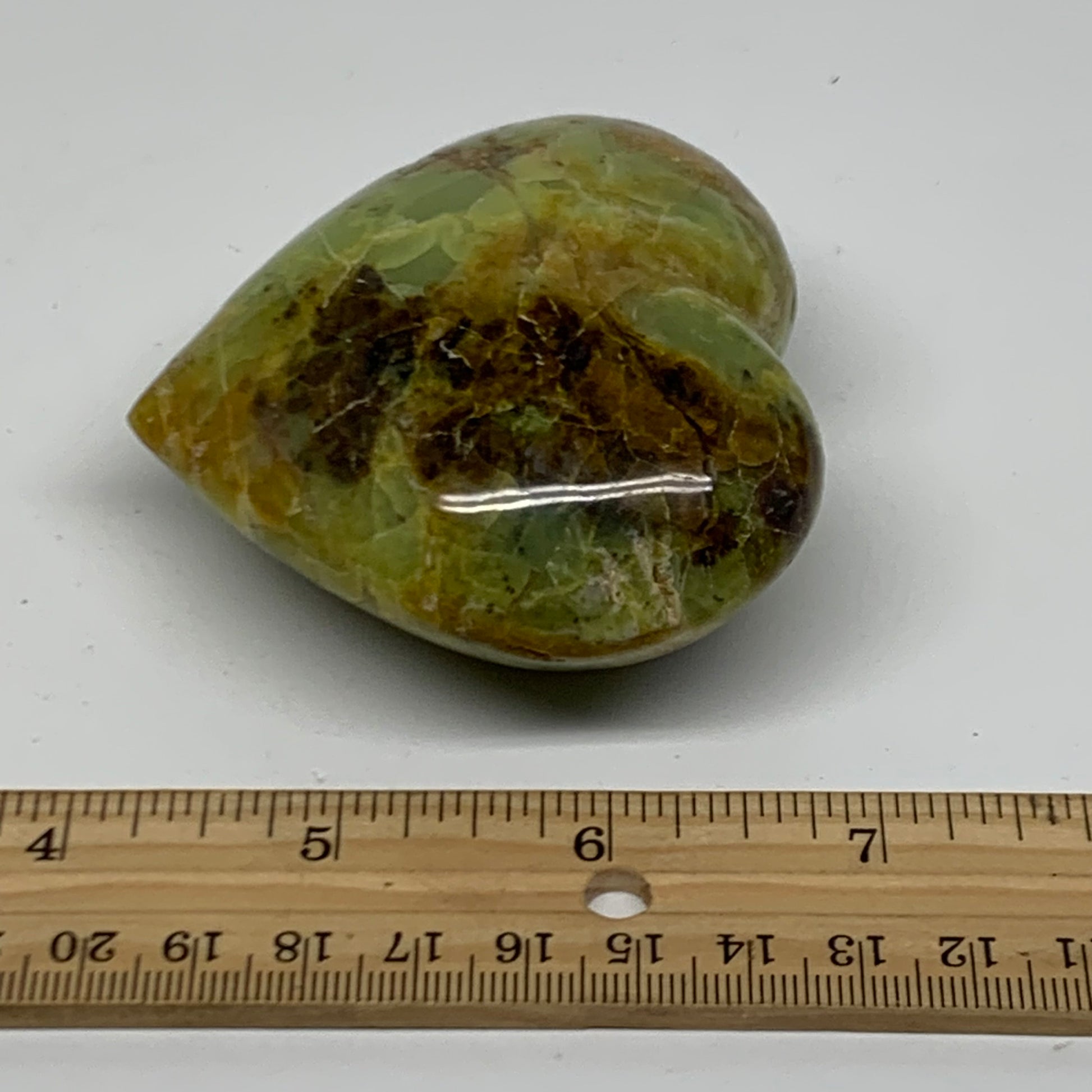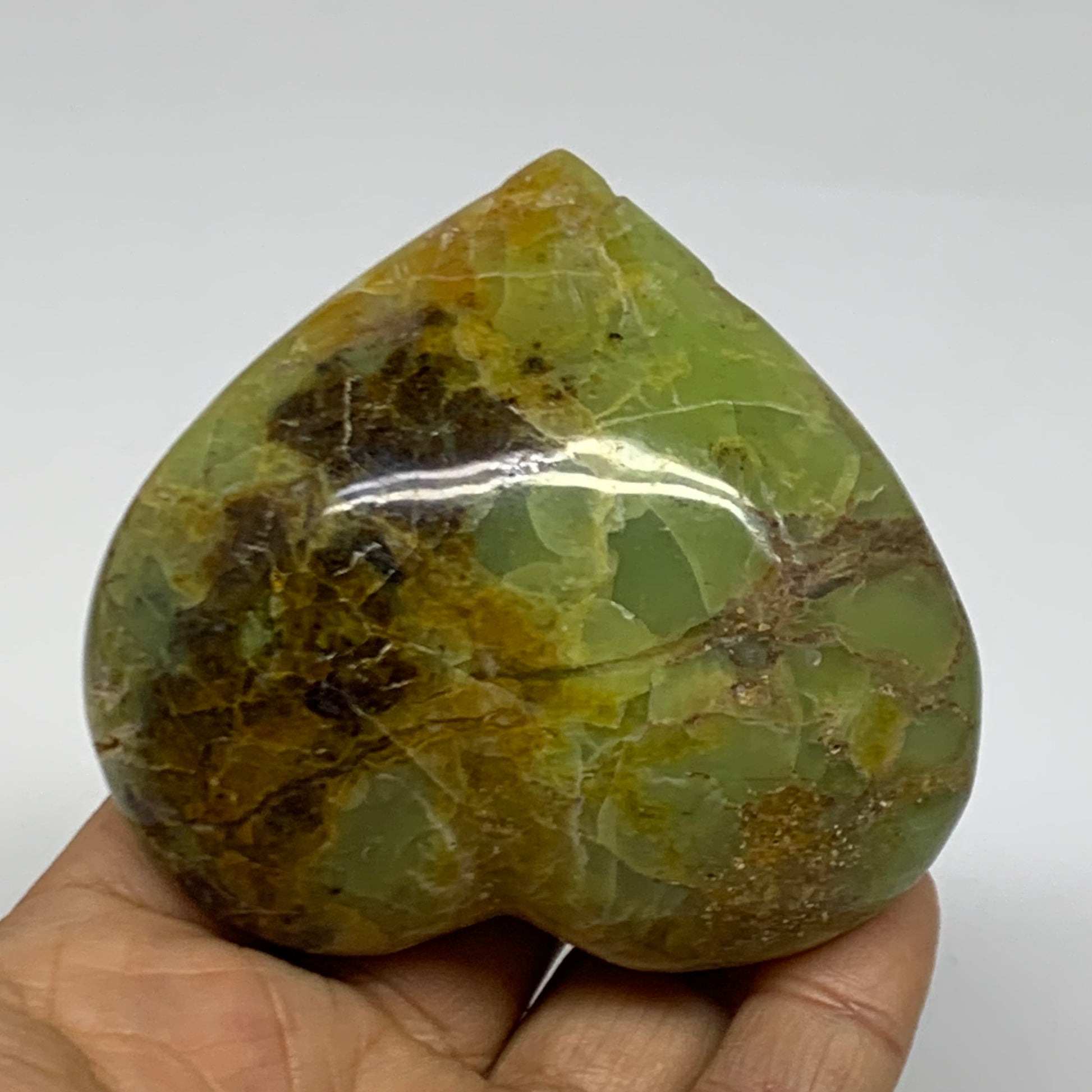 0.41 lbs, 2.7"x3"x1.5", Green Opal Heart Polished Gemstone Crystal, B37994