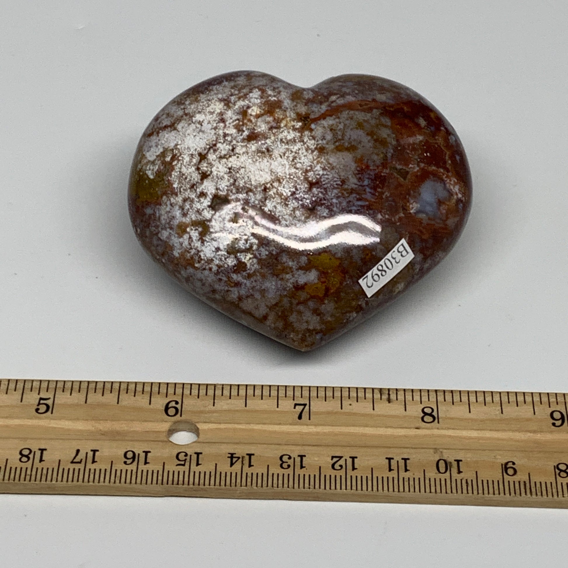 0.45 lbs, 2.6"x2.9"x1.4" Ocean Jasper Heart Polished Healing Crystal, B30892