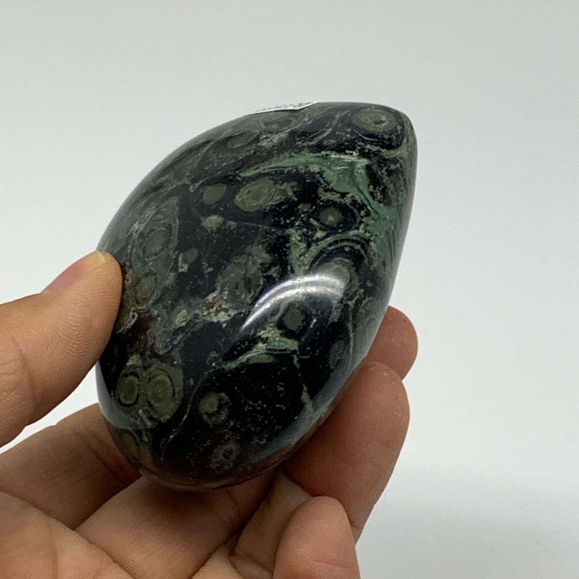 Kambaba jasper is also sometimes referred to as "Crocodile Rock" or "Crocodile Jasper" due to the resemblance of the black orbs to crocodile eyes