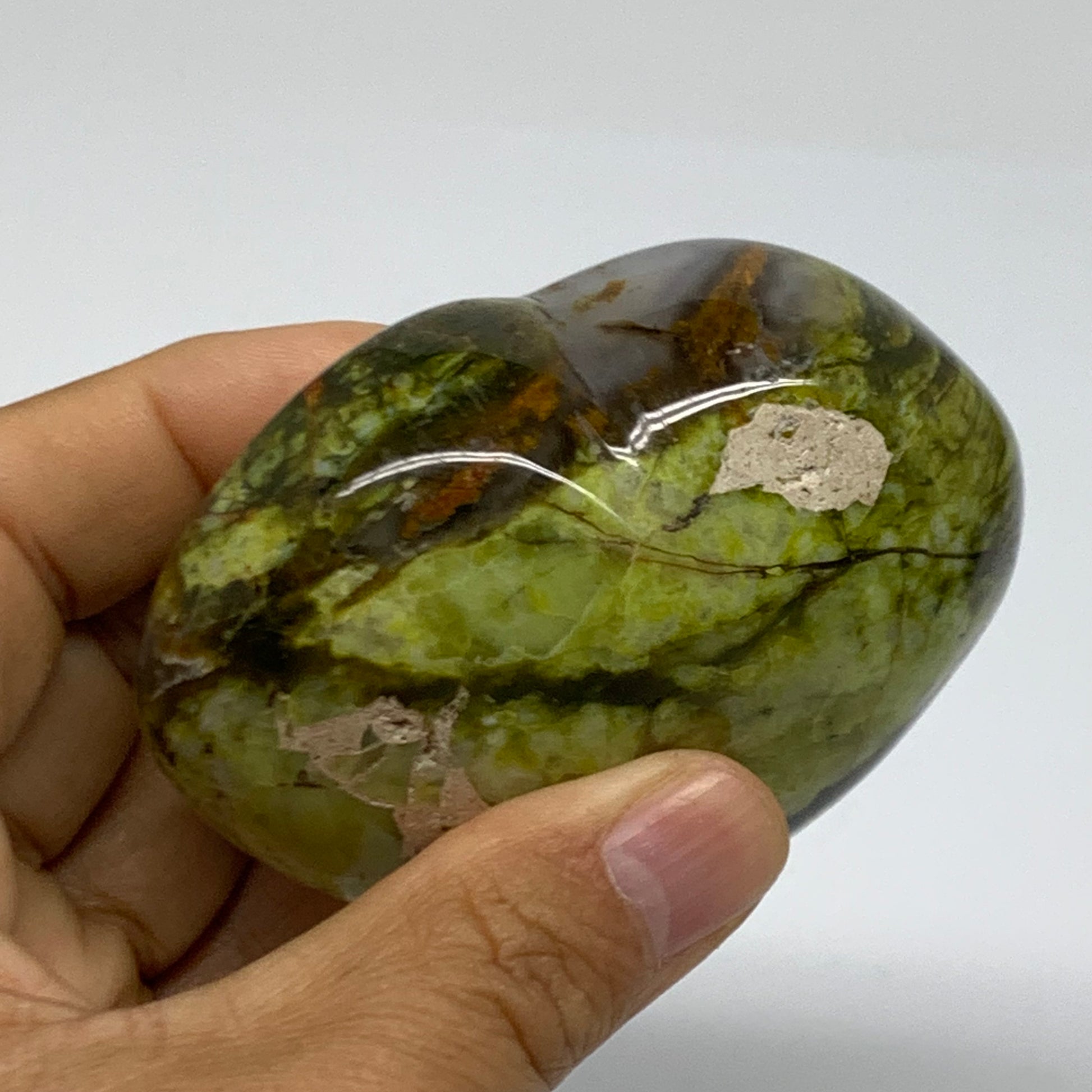 0.56 lbs, 2.5"x3.1"x1.6", Green Opal Heart Polished Gemstone Crystal, B37973