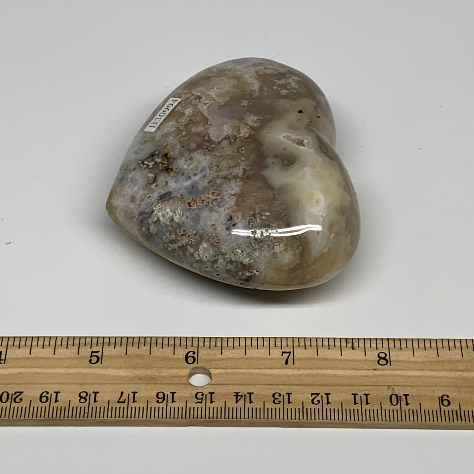 0.570 lbs, 3.1"x3.3"x1.2", Flower Agate Heart Crystal, Blossom Agate, B30993