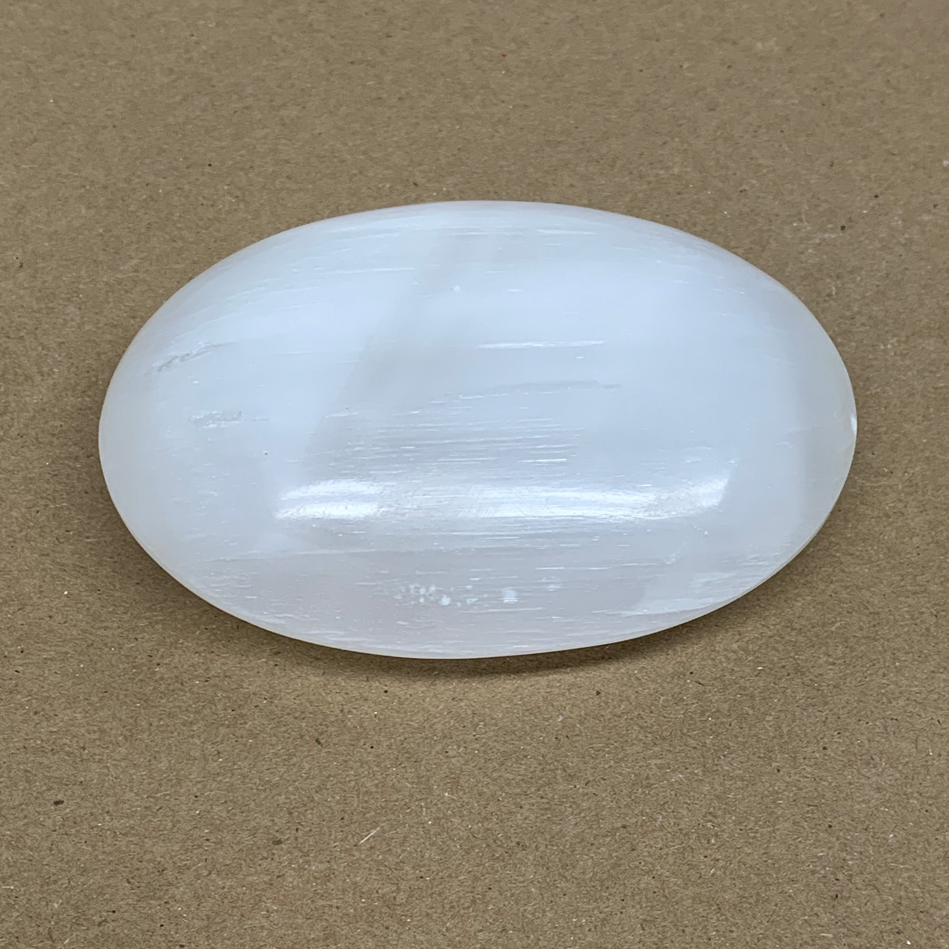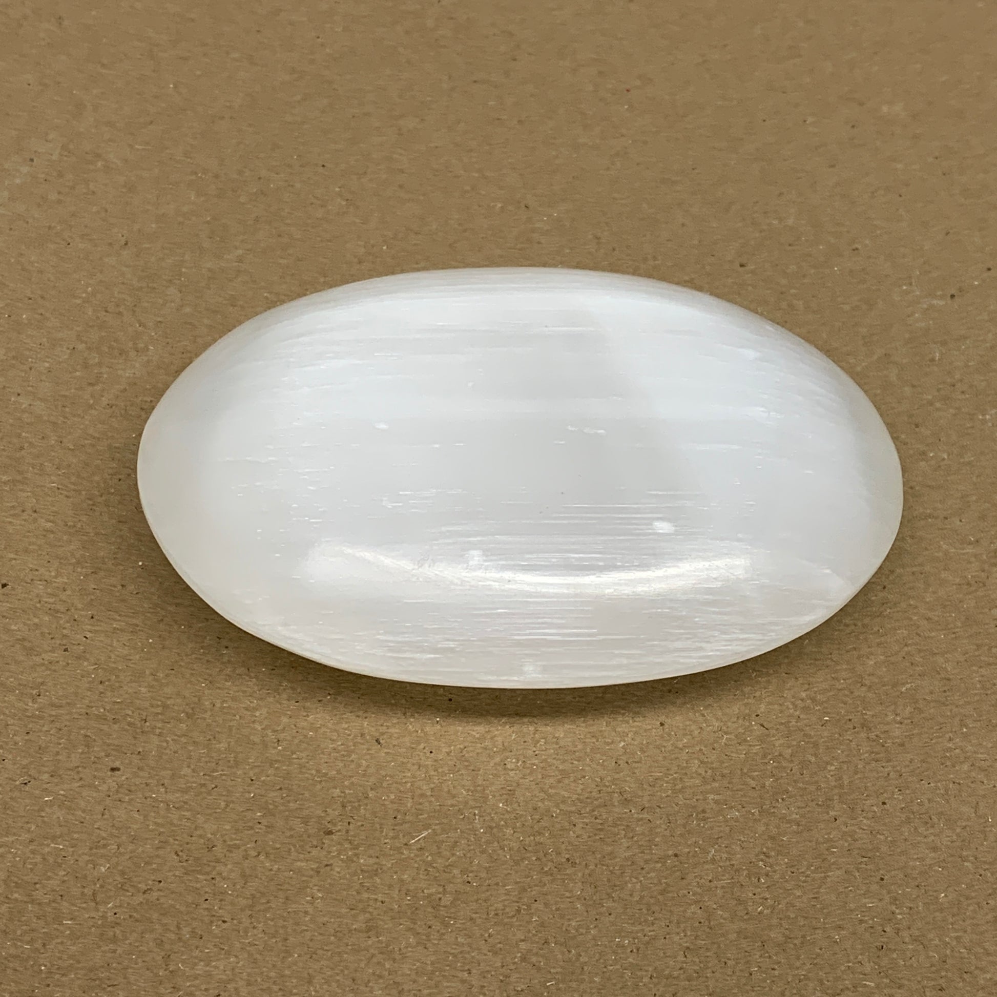 0.59 lbs, 3.9"x2.9"x1.2", White Selenite Palmstone Crystal Pillow Reiki, B36124