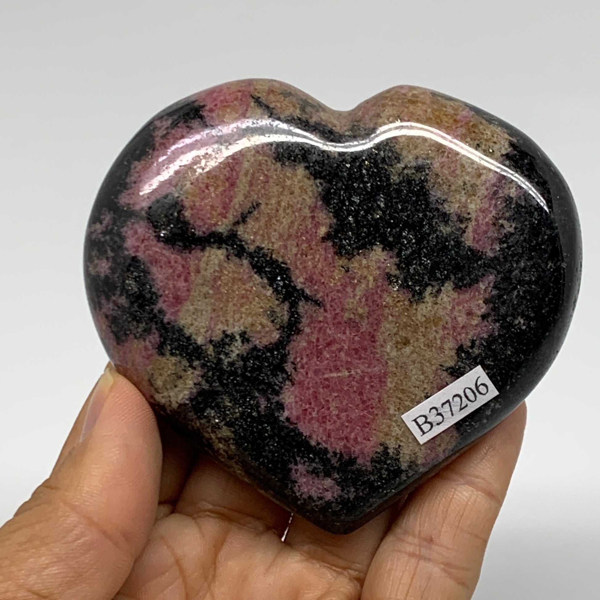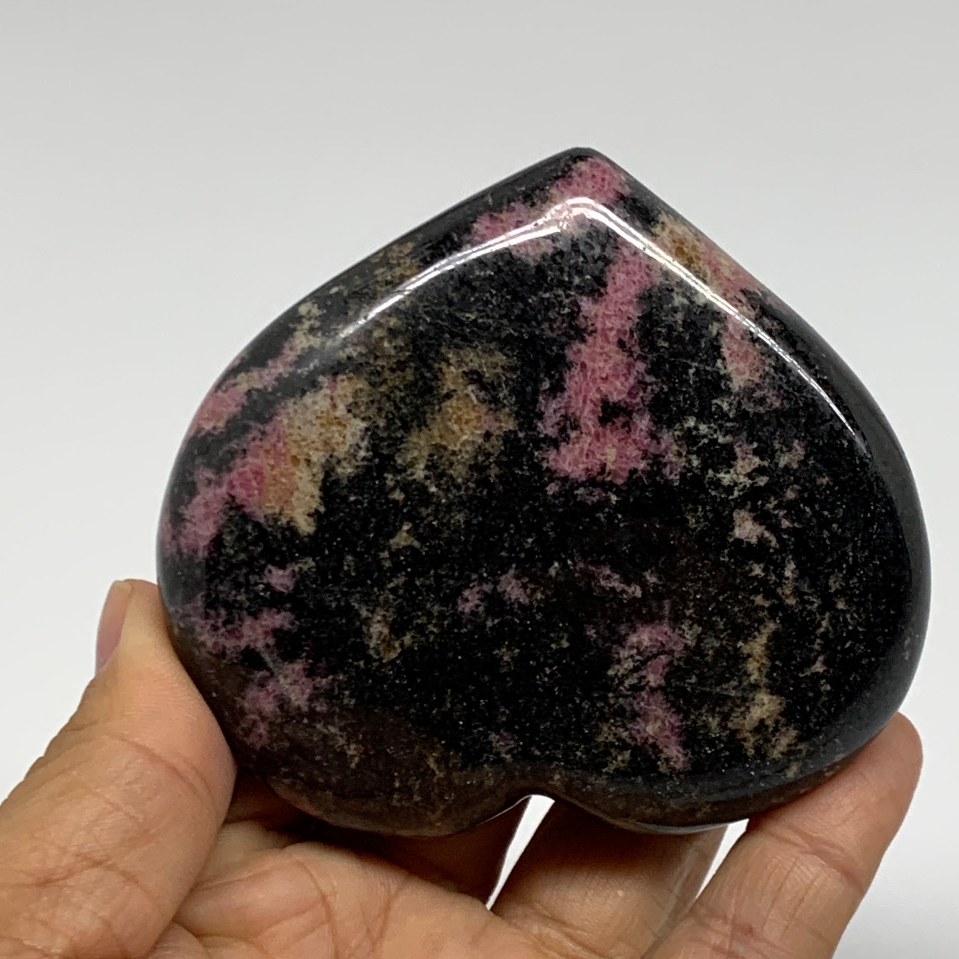 0.62 lbs, 2.8"x3.2"x0.9", Natural Rhodonite Heart Polished Crystal, B37206