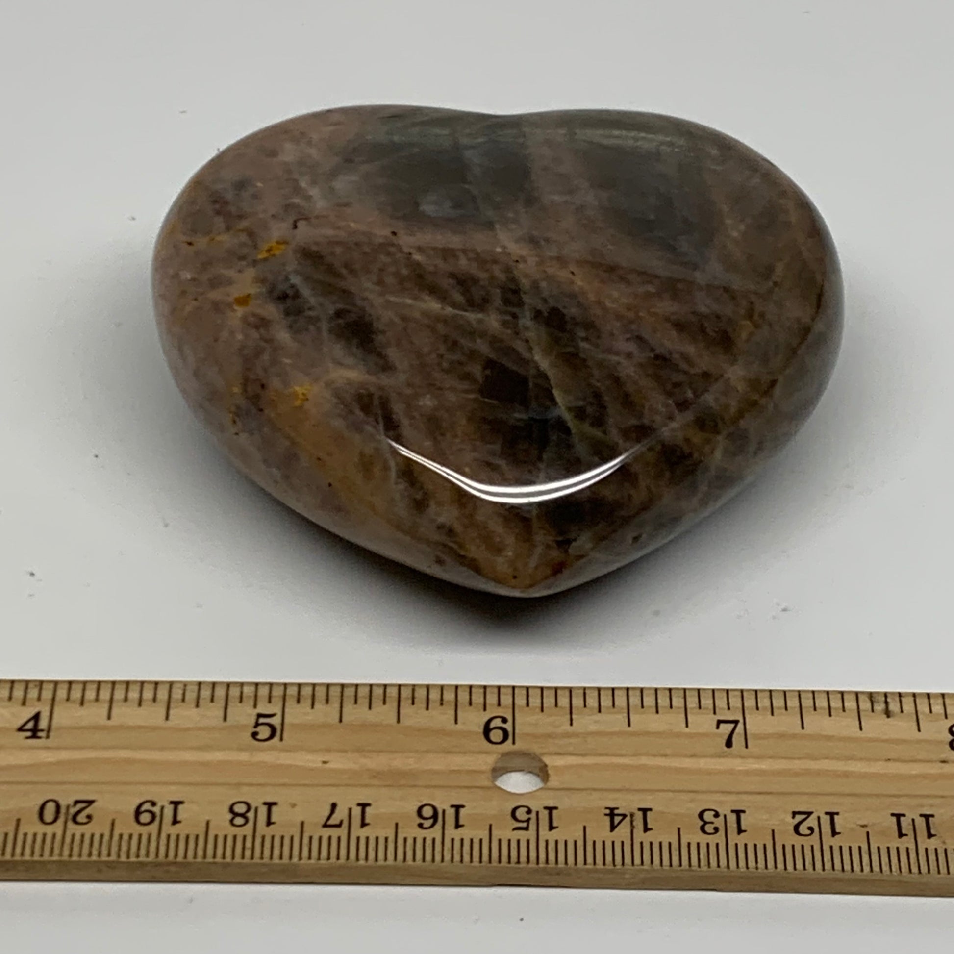 0.62 lbs, 2.9"x3.3"x1.3", Black Moonstone Heart Polished Crystal Decor, B37893
