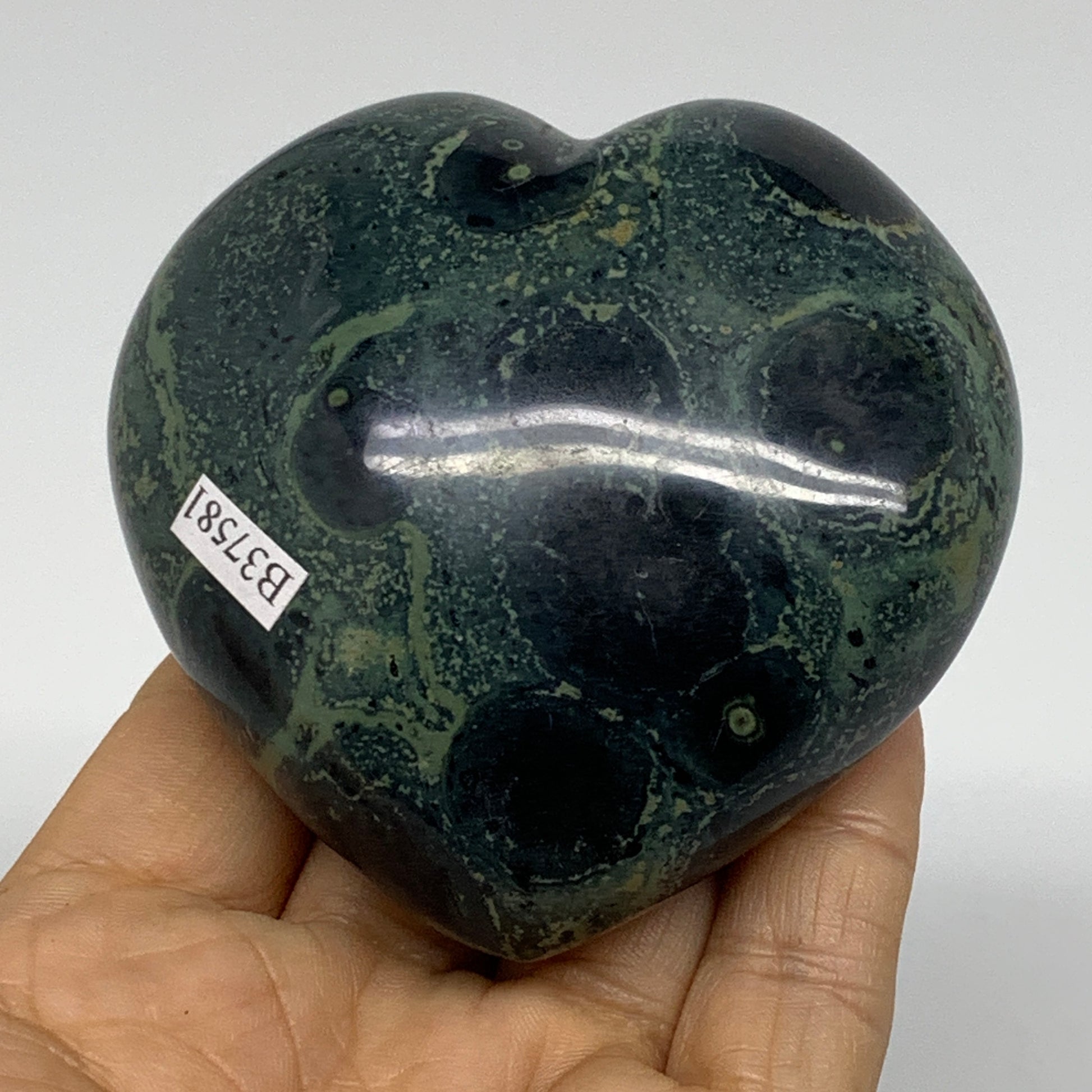 0.62 lbs, 3"x3"x1.5", Kambaba Jasper Heart Crocodile Polished Crystal, B37581