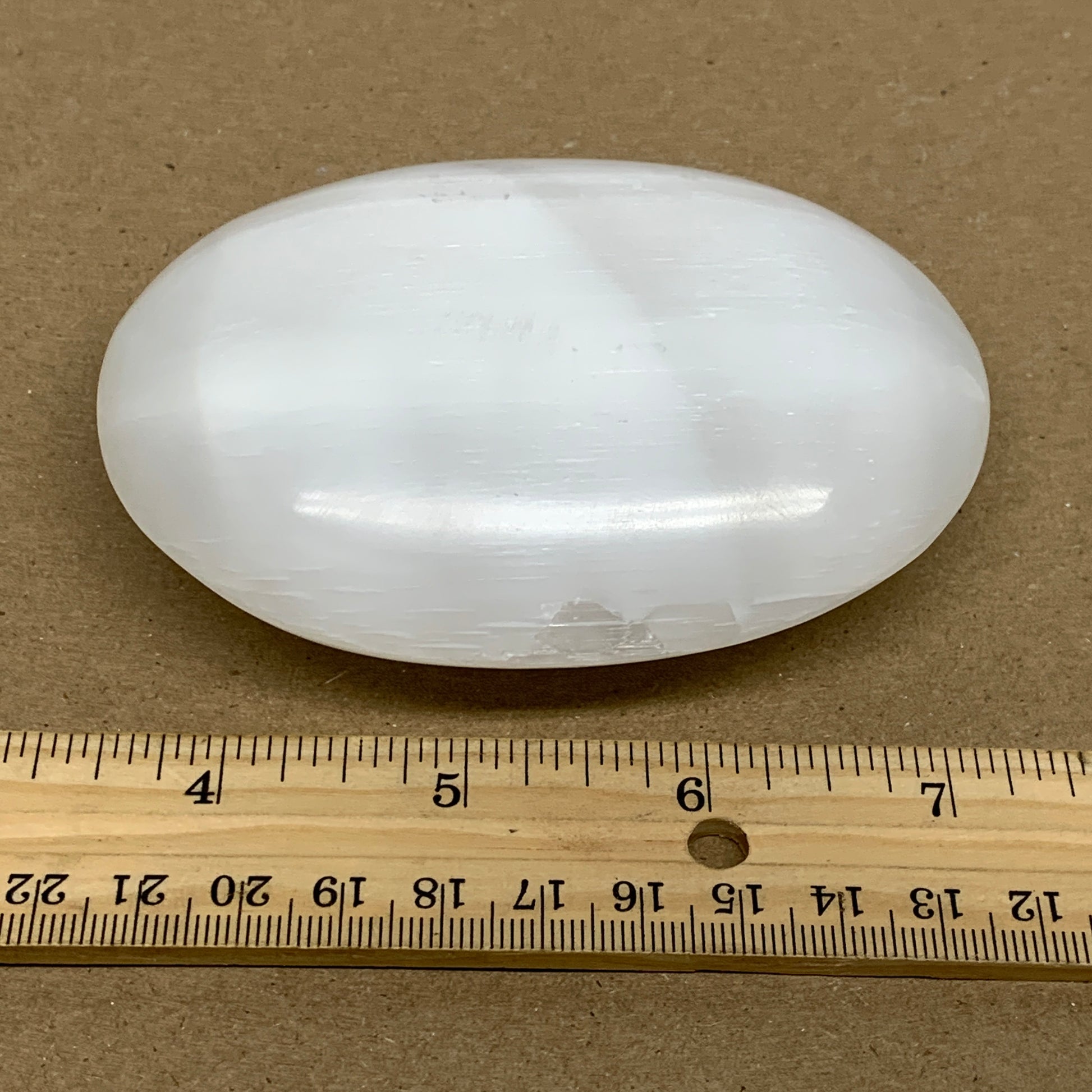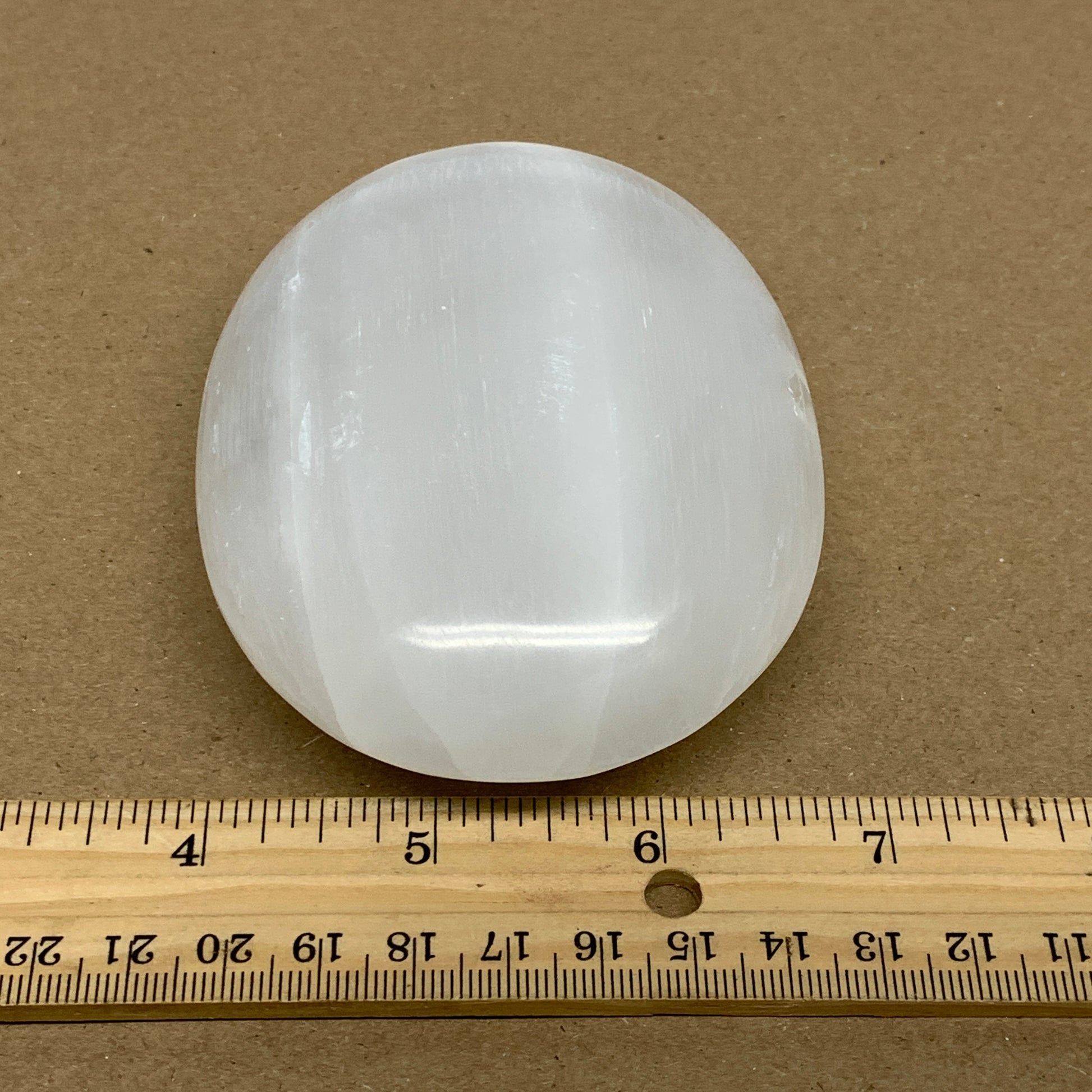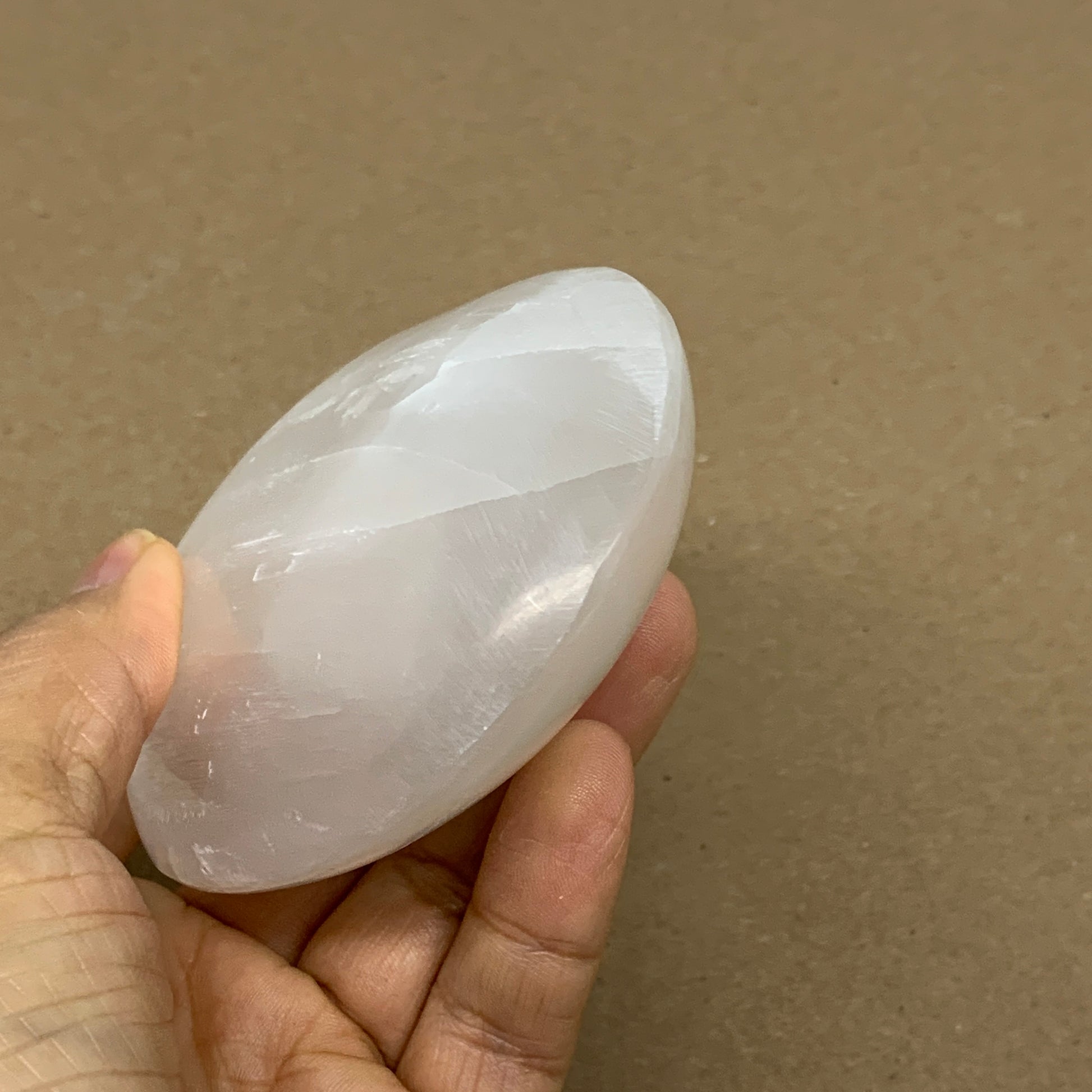 0.63 lbs, 3.9"x3"x1.2", White Selenite Palmstone Crystal Pillow Reiki, B36128
