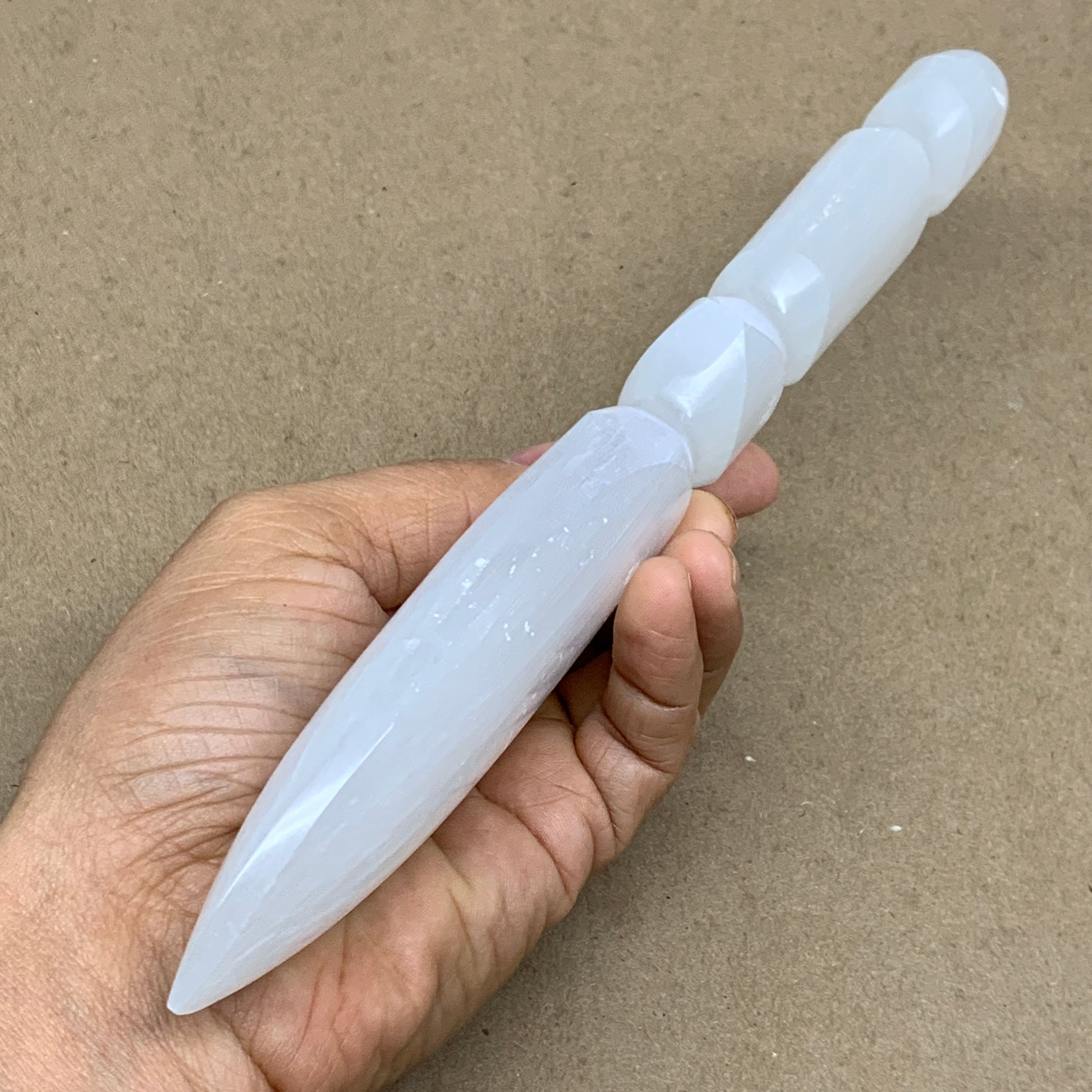 0.65lbs, 9.75"x1.9"x0.8", Natural Selenite Crystal Dagger (Satin Spar), B36560
