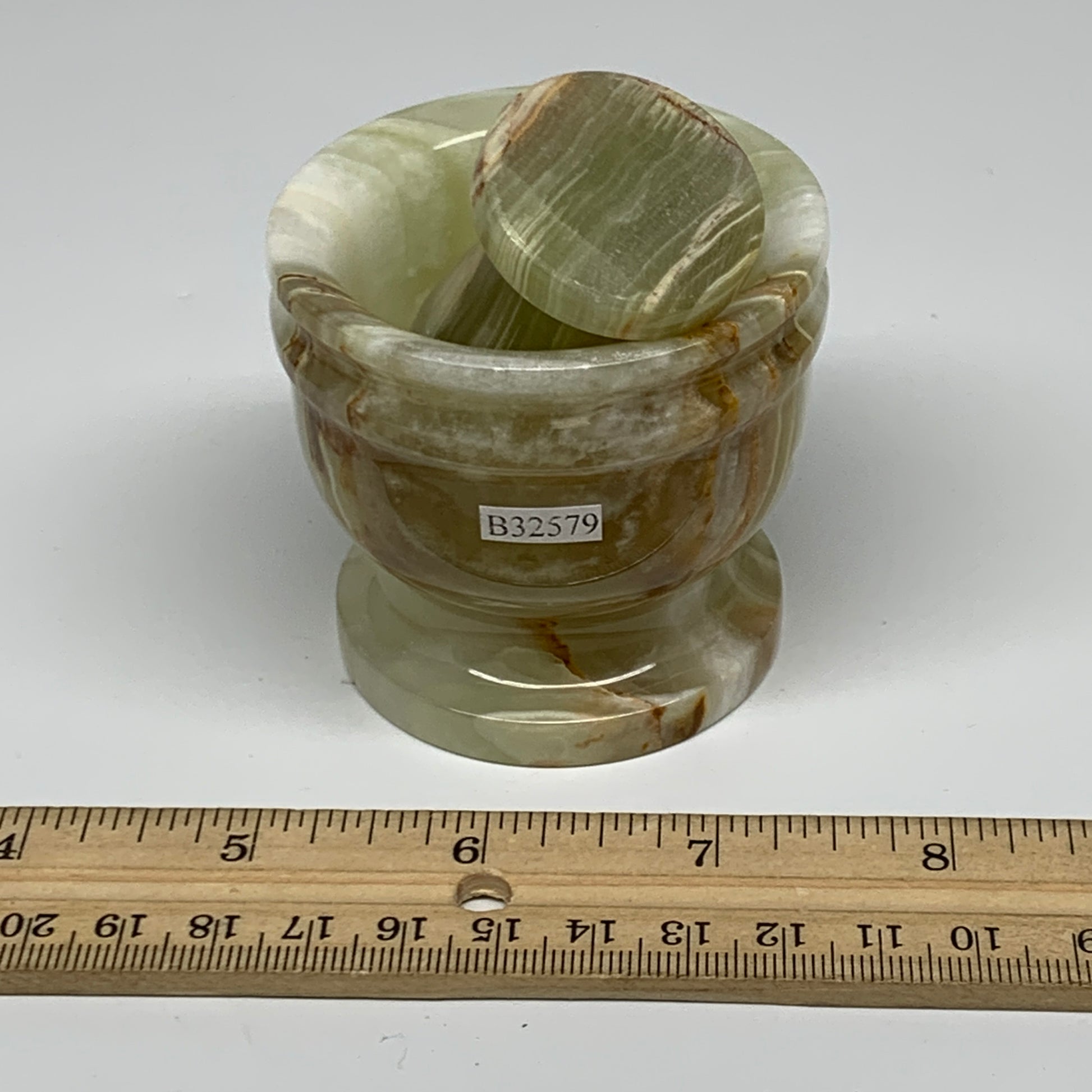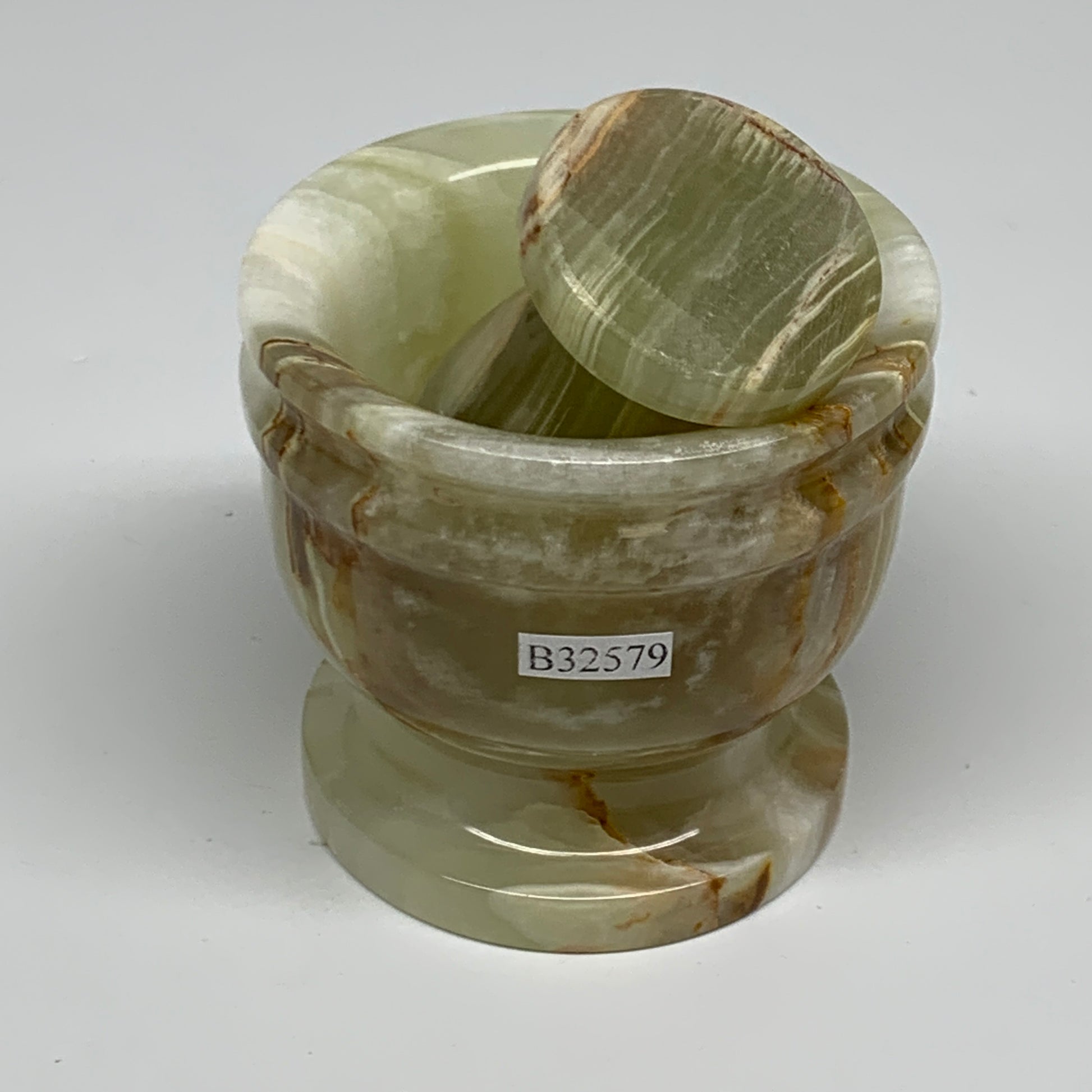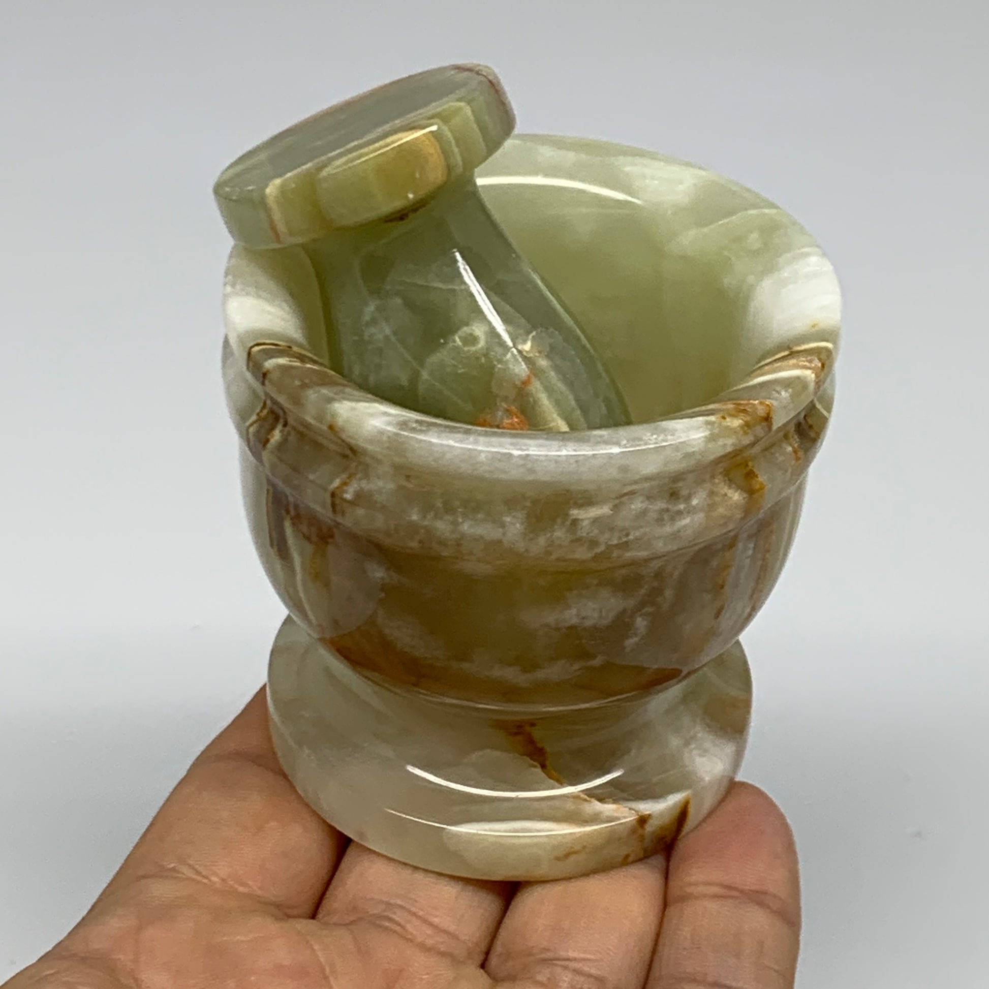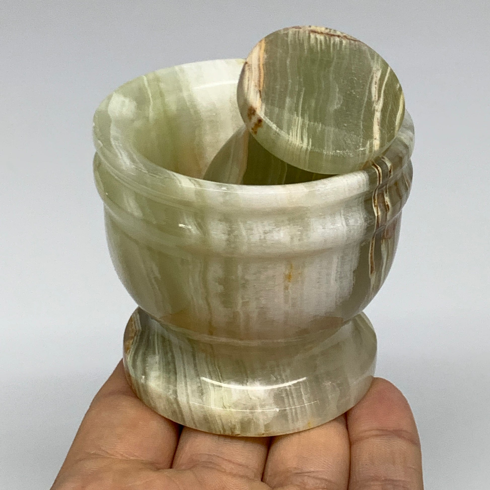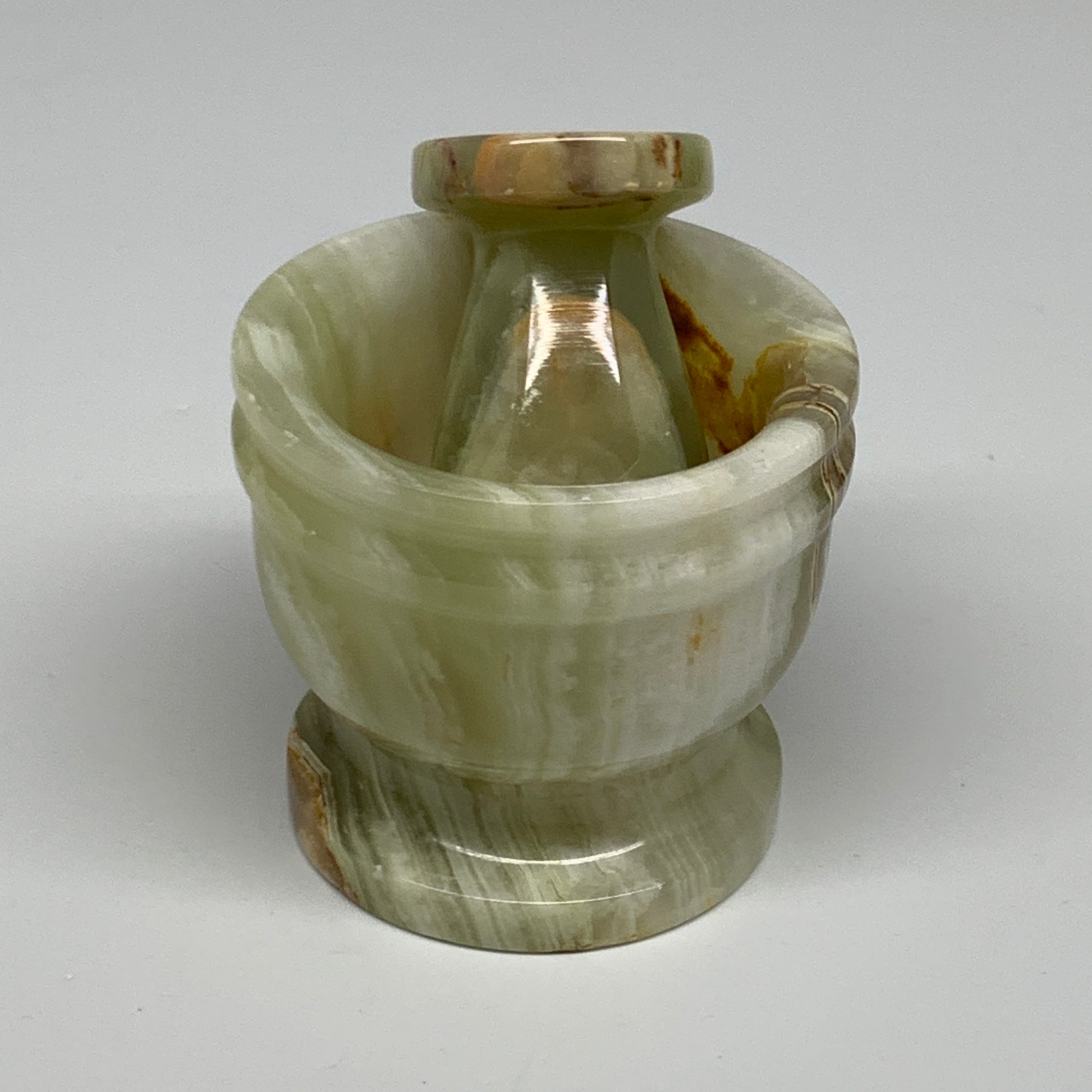 0.68 lbs, 2.2"x2.5", Natural Green Onyx Crystal Pestle and Mortar Handmade, B32579