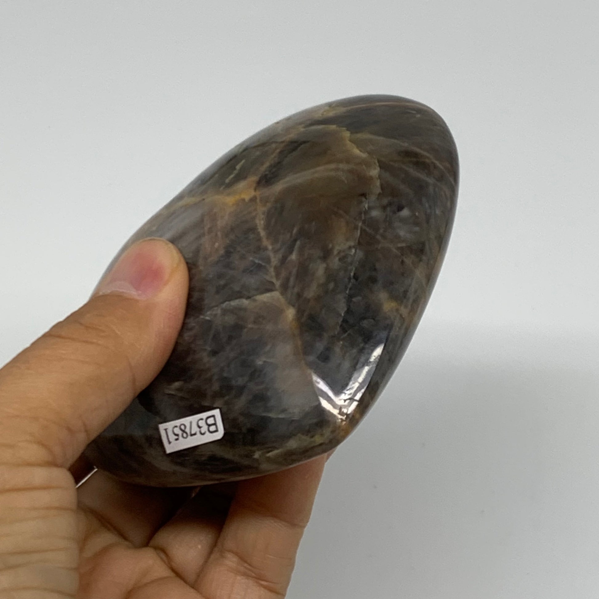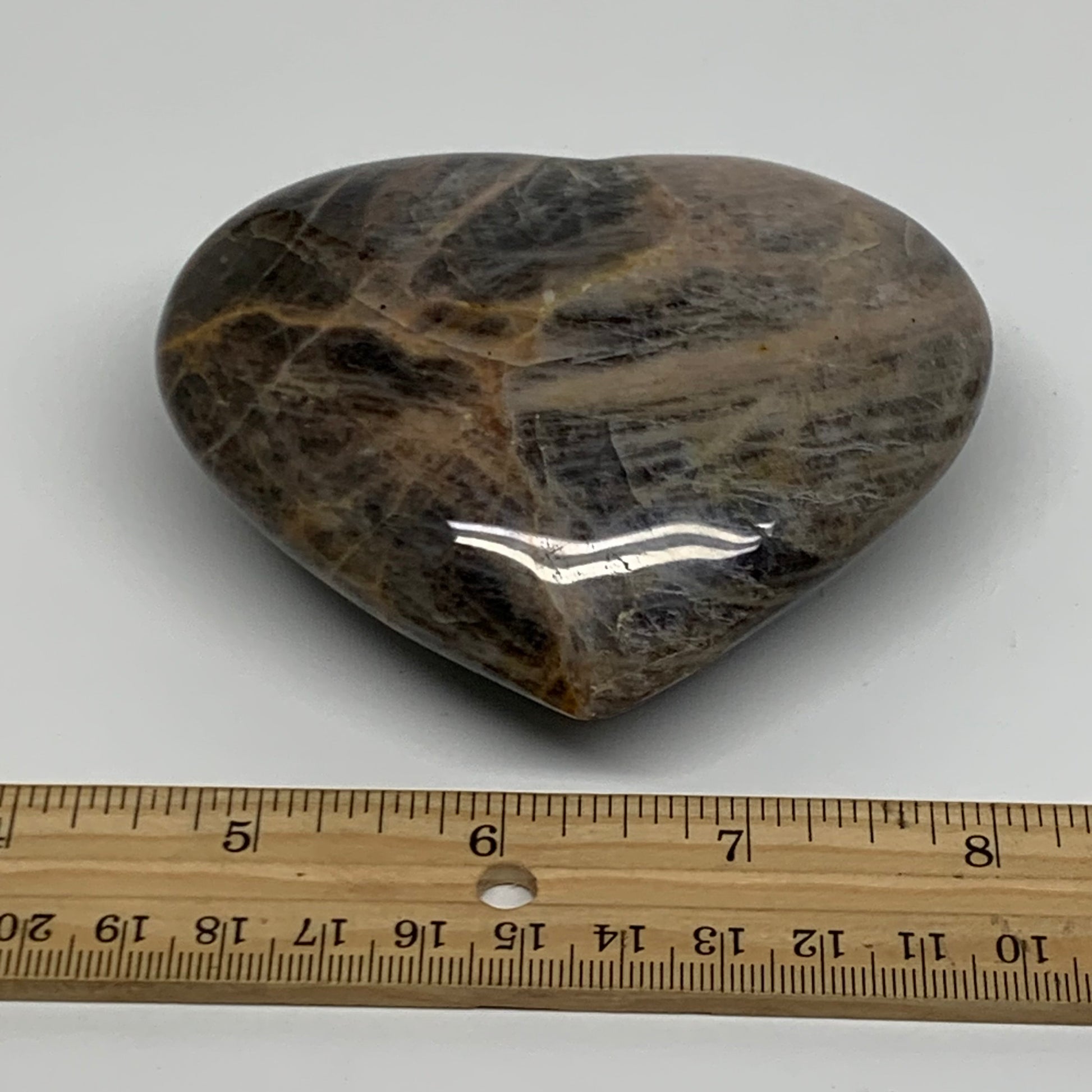 0.68 lbs, 3.3"x3.7"x1.3", Black Moonstone Heart Polished Crystal Decor, B37851