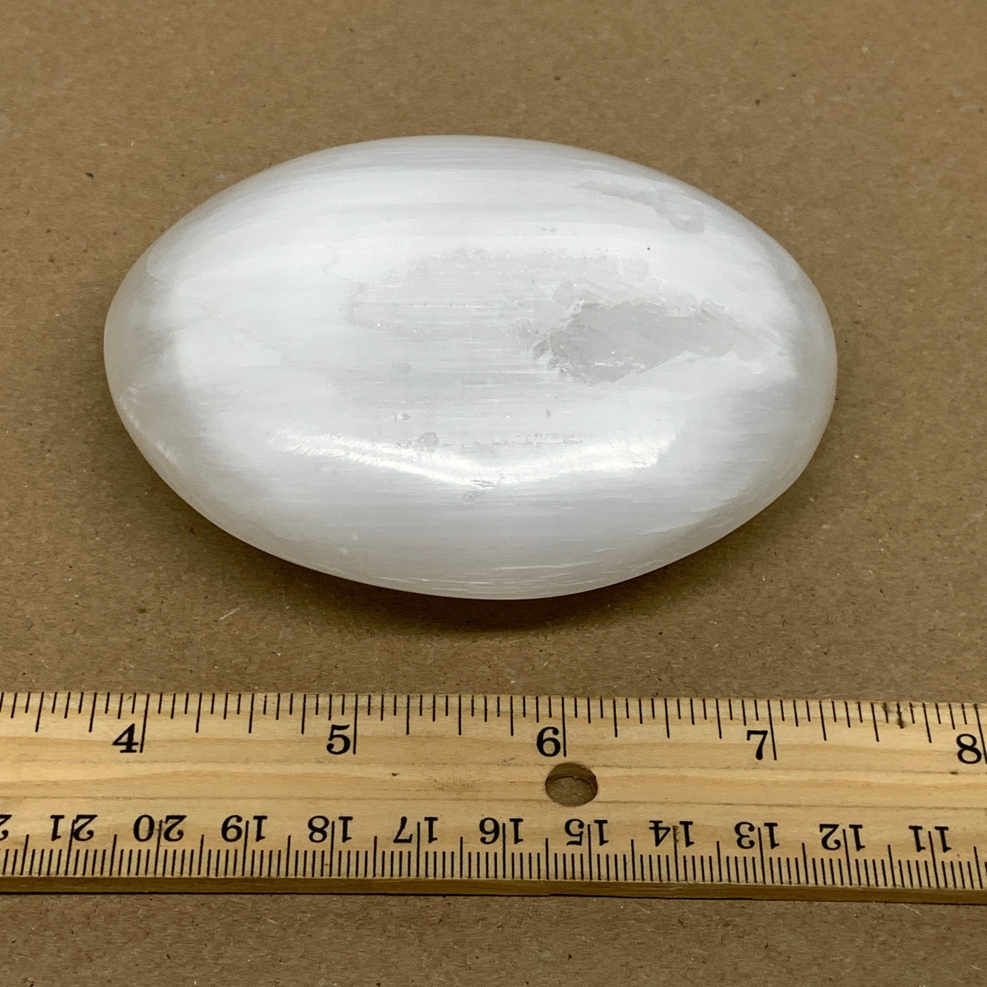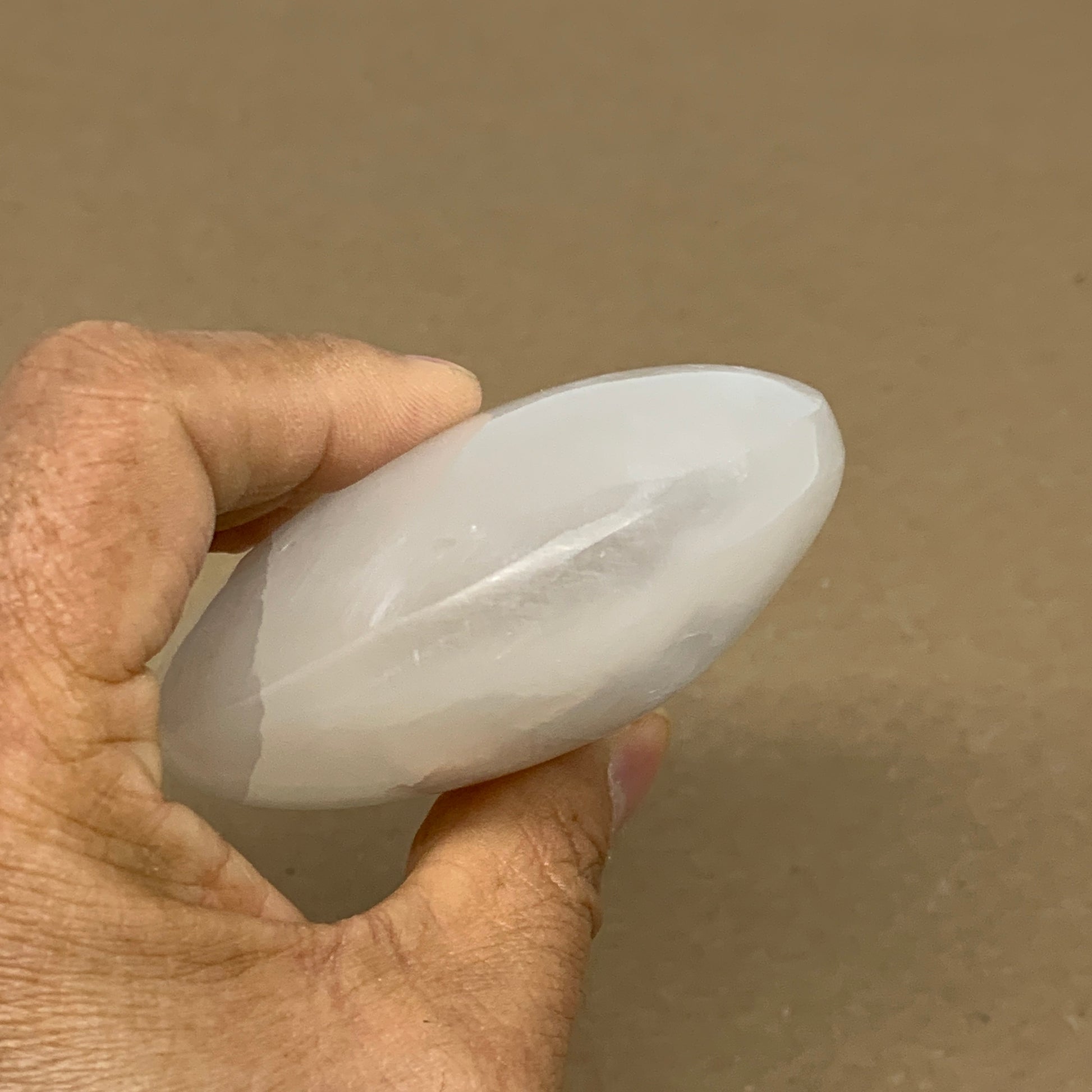 0.69 lbs, 3.8"x3"x1.3", White Selenite Palmstone Crystal Pillow Reiki, B36129