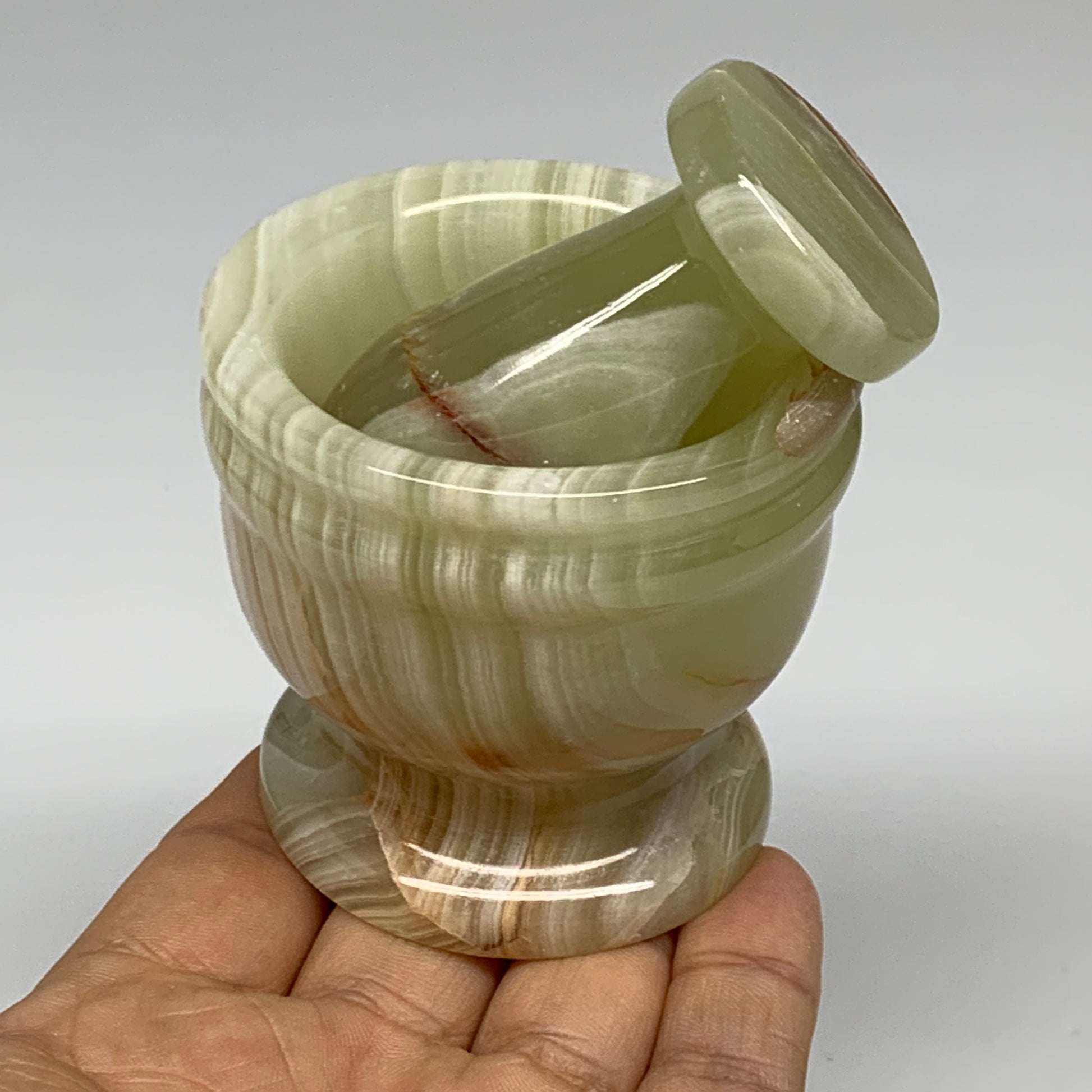 0.7 lbs, 2.2"x2.4", Natural Green Onyx Crystal Pestle and Mortar Handmade, B32582